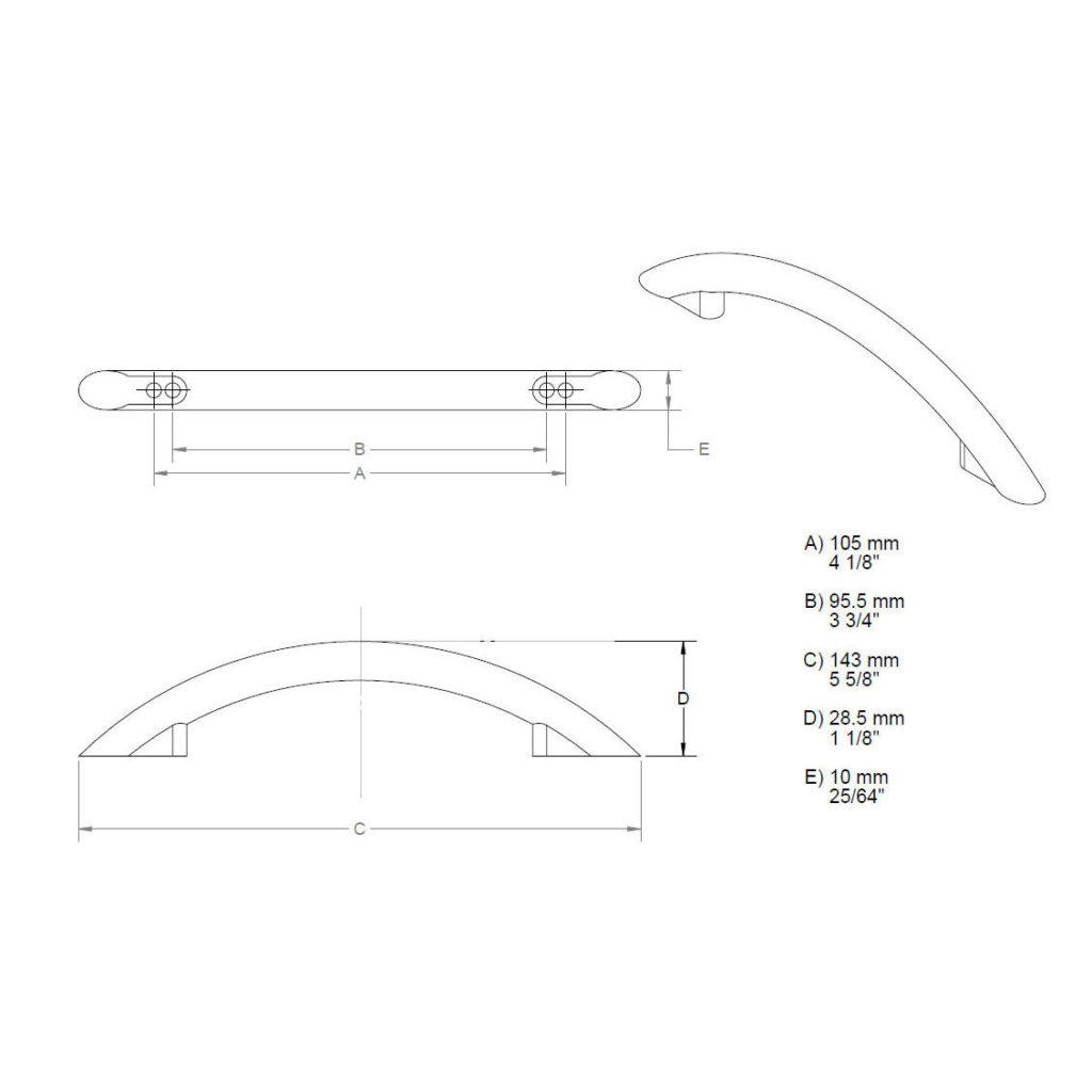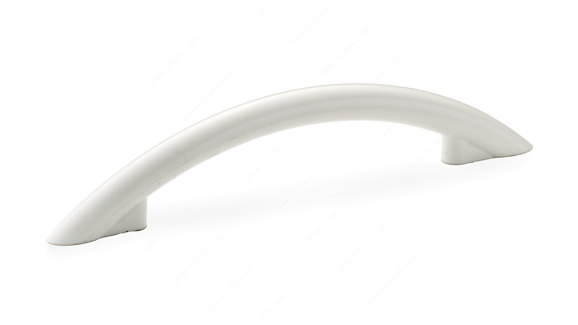 Richelieu 612030 Functional Plastic Pull - 6120 is the perfect choice for those seeking a clean and modern look for their drawer fronts. This bow pull is designed with simplicity in mind, offering an understated elegance that complements a variety of décor styles. Crafted from durable plastic, it ensures longevity while maintaining its sleek white finish, ideal for both contemporary and traditional settings. With an overall length of 5 5/8 inches and a projection of 1 5/32 inches, this pull provides a comfortable grip for easy access. Its center-to-center measurement ranges from 3 25/32 to 4 1/8 inches, making it versatile enough to fit various cabinet configurations. Weighing in at a compact size with a width of just 13/32 inches, it can seamlessly integrate into child-friendly or outdoor applications. The Richelieu 612030 pull is not only functional but also user-friendly, requiring #6 screws for installation (not included). Whether you are outfitting a new kitchen or updating existing cabinetry, this utility-style pull adds a touch of refined practicality. Easy to ship via UPS, this product is a smart choice for professionals and knowledgeable homeowners alike, combining style and functionality effortlessly.