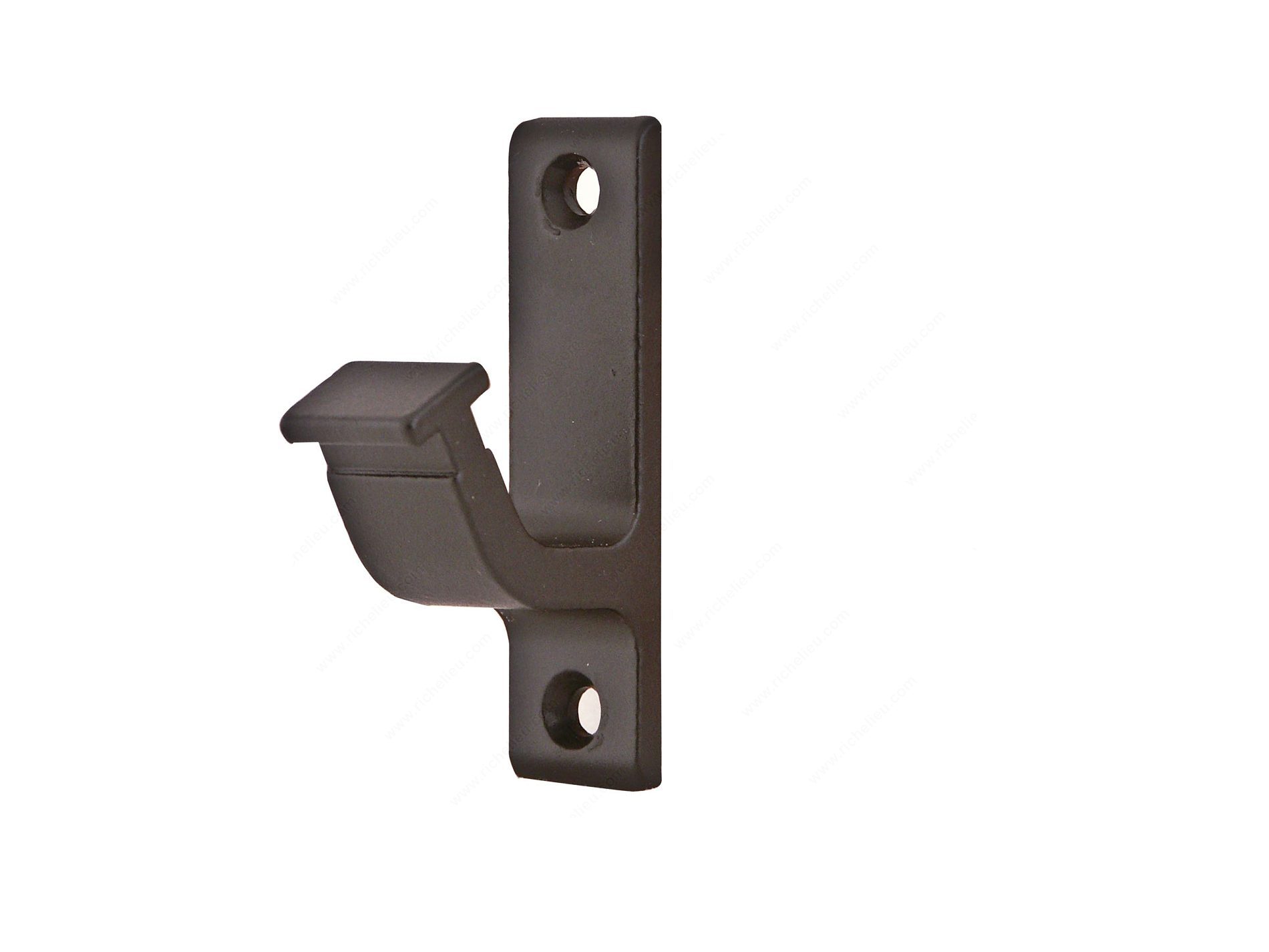 Richelieu 622106900 Vertical Track Hook Bracket for Hook Rollers is expertly designed to provide robust support for round tracks used with rolling ladders. This wall bracket is essential for ensuring stability and safety, accommodating hook upper rollers effectively. To maintain optimal performance, it is advised to mount every 32 inches (812 mm) along the track, requiring a minimum of four brackets for a standard 96-inch (2438 mm) track. Crafted from durable steel, this bracket boasts a sleek black finish (90) that complements a variety of interior styles, making it a versatile choice for libraries and other spaces that utilize rolling ladders. For proper installation, the bracket must be secured to a solid structure, such as millwork, studs, or blocking, ensuring a strong and lasting hold. To enhance your rolling ladder system, it’s important to refer to the maple or oak wood rolling ladder webkits, which provide a comprehensive list of components needed for complete assembly. The Richelieu 622106900 Vertical Track Hook Bracket combines functionality with aesthetic appeal, making it a valuable addition to your architectural hardware solutions.