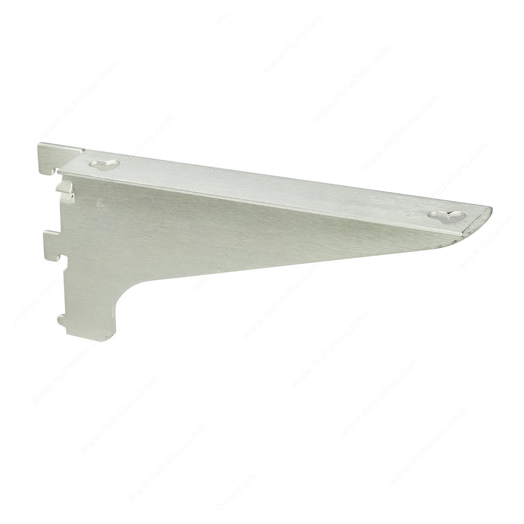 Richelieu 7232202G Wood Shelf Bracket - No. 723 offers a perfect blend of functionality and durability for your shelving needs. Designed with keyhole slots, this bracket allows for simple and secure mounting of wood shelves, making installation a breeze. The stabilizer feature effectively reduces sway, ensuring your shelves remain steady and reliable under weight. Constructed from .085" thick tempered steel, this medium-duty bracket is built to withstand the test of time. Its right bracket orientation and impressive dimensions-4 inches in height and 20 inches in length-provide ample support for your shelving projects. The sleek zinc finish not only adds a touch of modern elegance but also enhances the bracket's durability against wear and tear. Supporting various applications, this bracket serves as both pilaster and mounting support, making it ideal for a range of settings, from residential to commercial. Its gauge of 13 ensures a robust support system, suitable for heavier loads. Whether you're outfitting a kitchen, home office, or retail space, the Richelieu 7232202G Wood Shelf Bracket is a dependable choice that combines strength and aesthetic appeal.