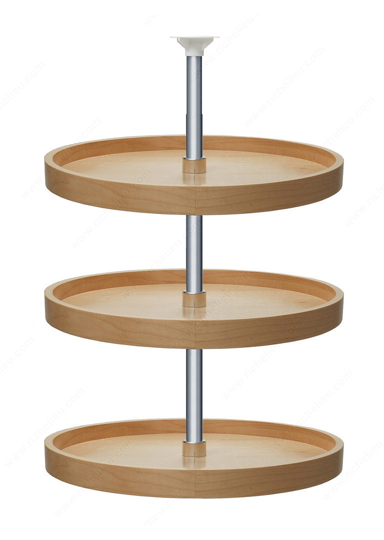 Richelieu 74183151 Round Wood Tray Sets offer a practical and stylish solution for food storage and preparation, perfect for modern kitchens. Crafted from natural wood with a beautiful maple finish, these trays not only enhance your kitchen's aesthetics but also provide exceptional functionality. Each tray has a generous capacity of 75 lbs, making them ideal for storing a variety of items. Designed specifically for corner cabinets, these trays feature a rim type made from laminated hardwood, ensuring durability and a refined look. The set includes three trays, each with a diameter of 18 inches, providing ample space for organizing your kitchen essentials. With required interior dimensions ranging from 33 5/8 to 40 inches in height, these trays fit seamlessly into your cabinetry. Whether you're preparing meals or storing food, the Richelieu Round Wood Tray Sets simplify your kitchen tasks while keeping everything accessible and orderly. Additionally, they are convenient to ship via UPS, making them an easy addition to your home. Elevate your kitchen organization with this versatile and elegant solution from Richelieu, where quality meets design.