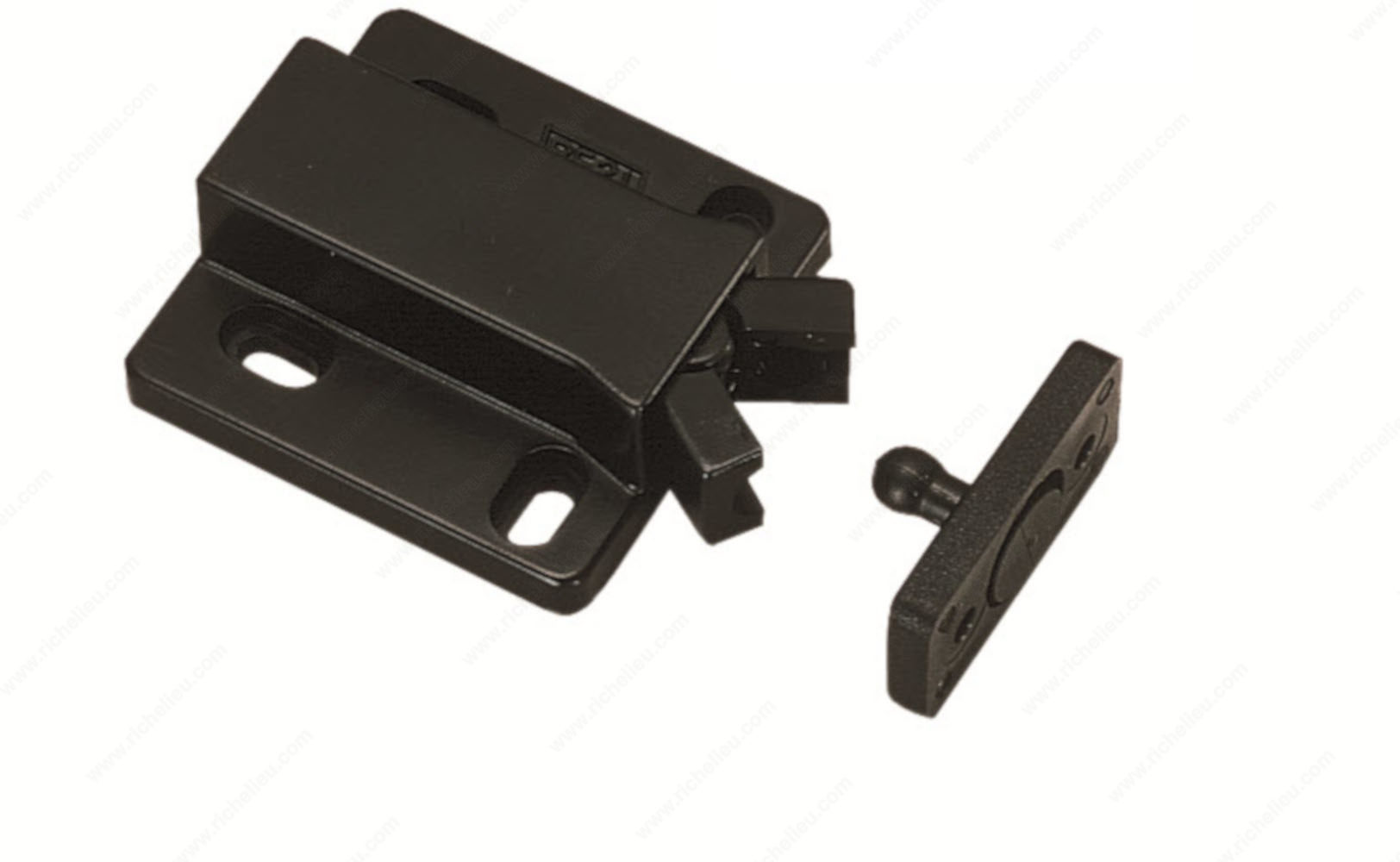 Richelieu 7502890 Touch Latch is designed to provide a seamless and user-friendly solution for overlay doors. This innovative touch latch features a floating strike that allows for easy alignment, ensuring a perfect fit every time. With a retaining force of 3 kg (6.6 lb), it securely holds your doors closed while allowing for convenient access with a simple push. It's important to note that for optimal performance, a 3 mm (1/8") gap between the door and cabinet frame is recommended to allow for adequate push space. Users should avoid applying excessive force when pulling on the door, as this could potentially damage the mechanism. Furthermore, constant loading exceeding 3 kgf or excessive pushing and pulling is not advised, ensuring the longevity of the latch. Crafted from durable ABS material and finished in classic black, the Richelieu 7502890 Touch Latch not only enhances functionality but also complements a variety of cabinetry styles. Easy to install and shipable via UPS, this touch latch is a practical choice for both building professionals and discerning homeowners looking for reliable hardware solutions. Elevate your cabinetry with this essential accessory that combines style and practicality.