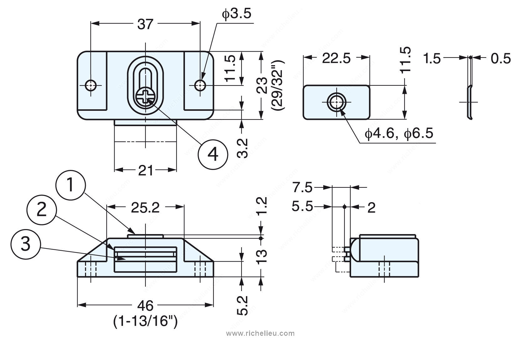 Richelieu 7508440 Adjustable Magnetic Catch is an essential component for ensuring seamless functionality in your cabinetry and furniture. With a robust holding power of 6.61 lbs, this magnetic catch securely holds doors and panels in place, preventing unwanted openings while maintaining an elegant aesthetic. Crafted from durable steel and ABS, the catch offers longevity and resilience, making it suitable for various applications. The almond color finish adds a subtle touch that blends effortlessly with different design styles, enhancing the overall look of your space. Measuring 1 13/16 inches in width and 29/32 inches in depth, the compact dimensions of this catch make it easy to install without taking up unnecessary space. The center-to-center distance of 1 15/32 inches ensures proper alignment for optimal performance and functionality. Easy to ship via UPS, the Richelieu 7508440 is a practical choice for both building professionals and knowledgeable homeowners looking to enhance their cabinetry with reliable hardware. Whether you're refreshing an existing design or embarking on a new project, this adjustable magnetic catch promises to deliver dependable quality and style, making it a standout choice for any installation.