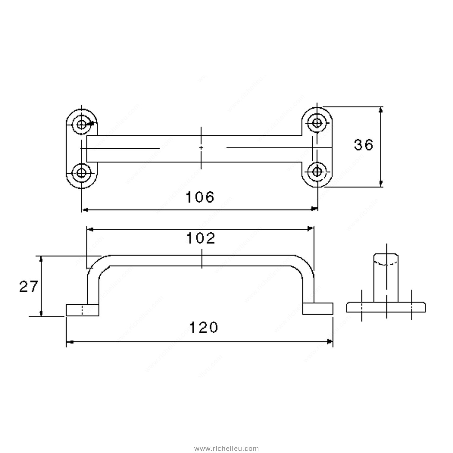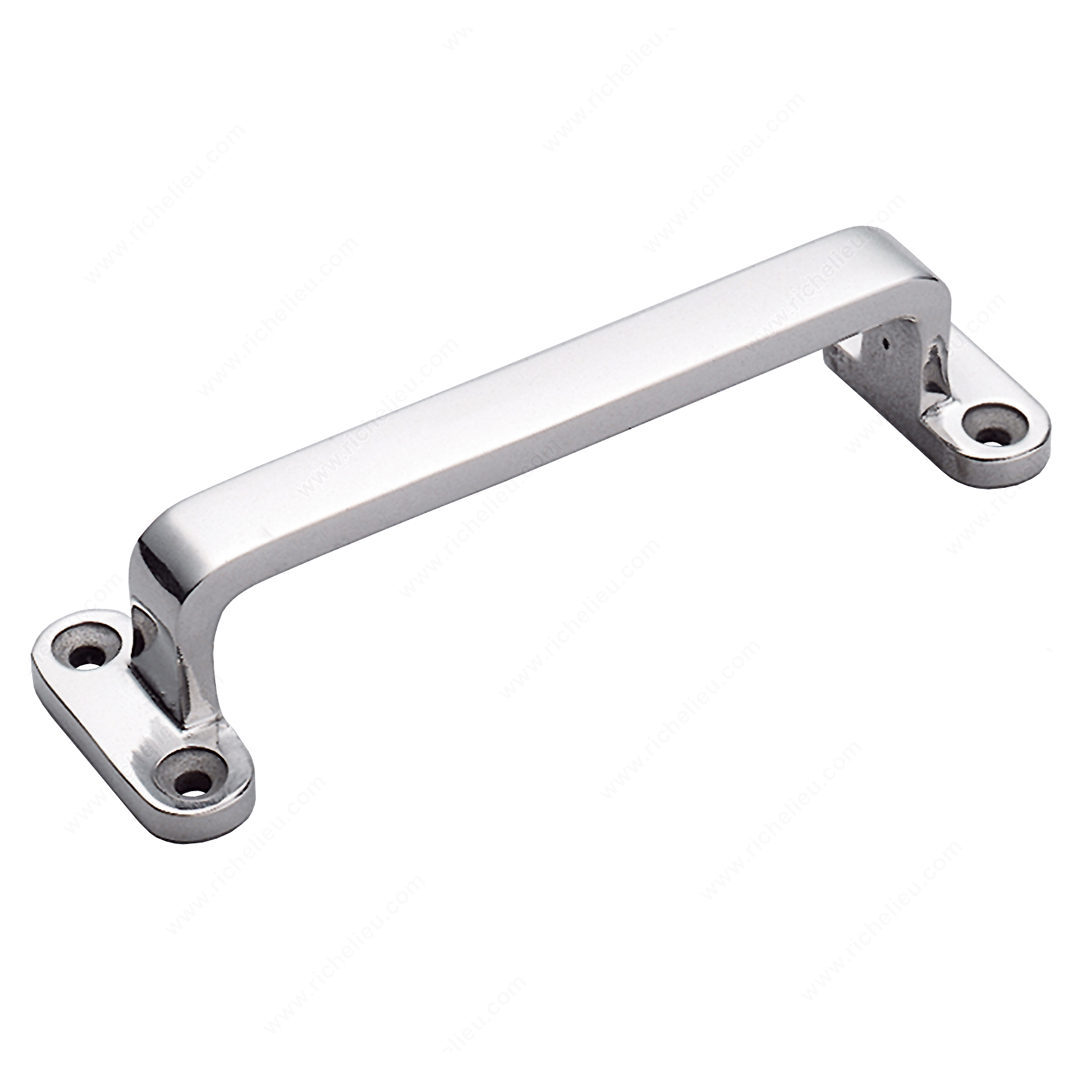 Richelieu 75126171 Modern Stainless Steel Pull - 75126 offers a perfect blend of style and functionality, making it an ideal choice for both residential and commercial applications. This sturdy pull features rounded ends and wide bases, ensuring a comfortable grip while enhancing the overall aesthetic of your cabinetry or furniture. Crafted from high-quality 304 stainless steel, this pull is not only durable but also resistant to corrosion, making it suitable for various environments. The polished stainless steel finish, in a sleek gray and chrome color, adds a contemporary touch that complements modern design schemes. With an overall length of 4 23/32 inches, a center-to-center measurement of 4 3/16 inches, and a projection of 1 1/16 inches, this pull is perfectly sized for easy access without overpowering your space. The Richelieu 75126171 is equipped with wood screws for easy installation, ensuring a hassle-free setup. Its stylish modern design is versatile enough to enhance kitchen cabinets, bathroom vanities, or office furniture. Upgrade your spaces with this striking pull that combines aesthetic appeal and practical use, making it a must-have for builders and design enthusiasts alike.