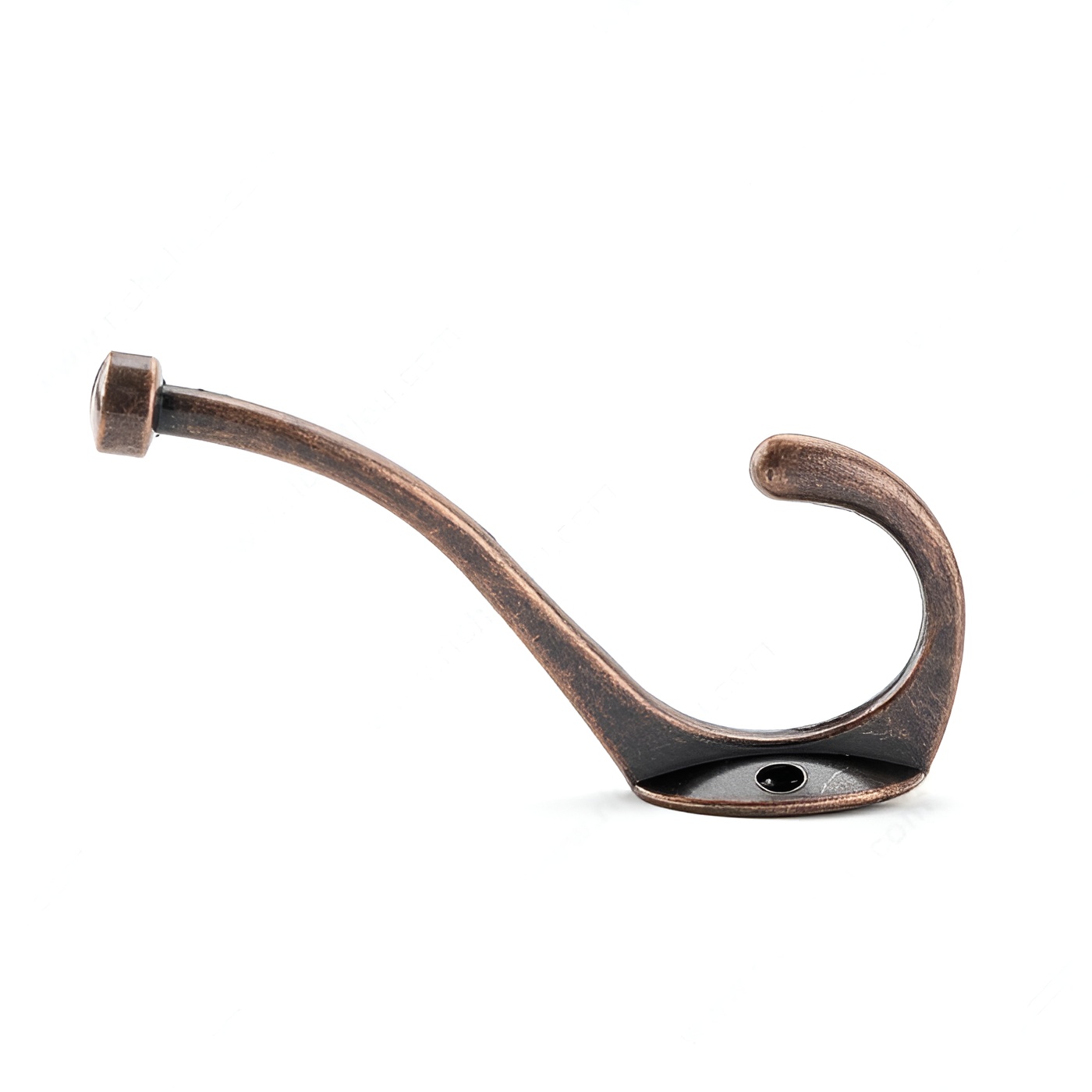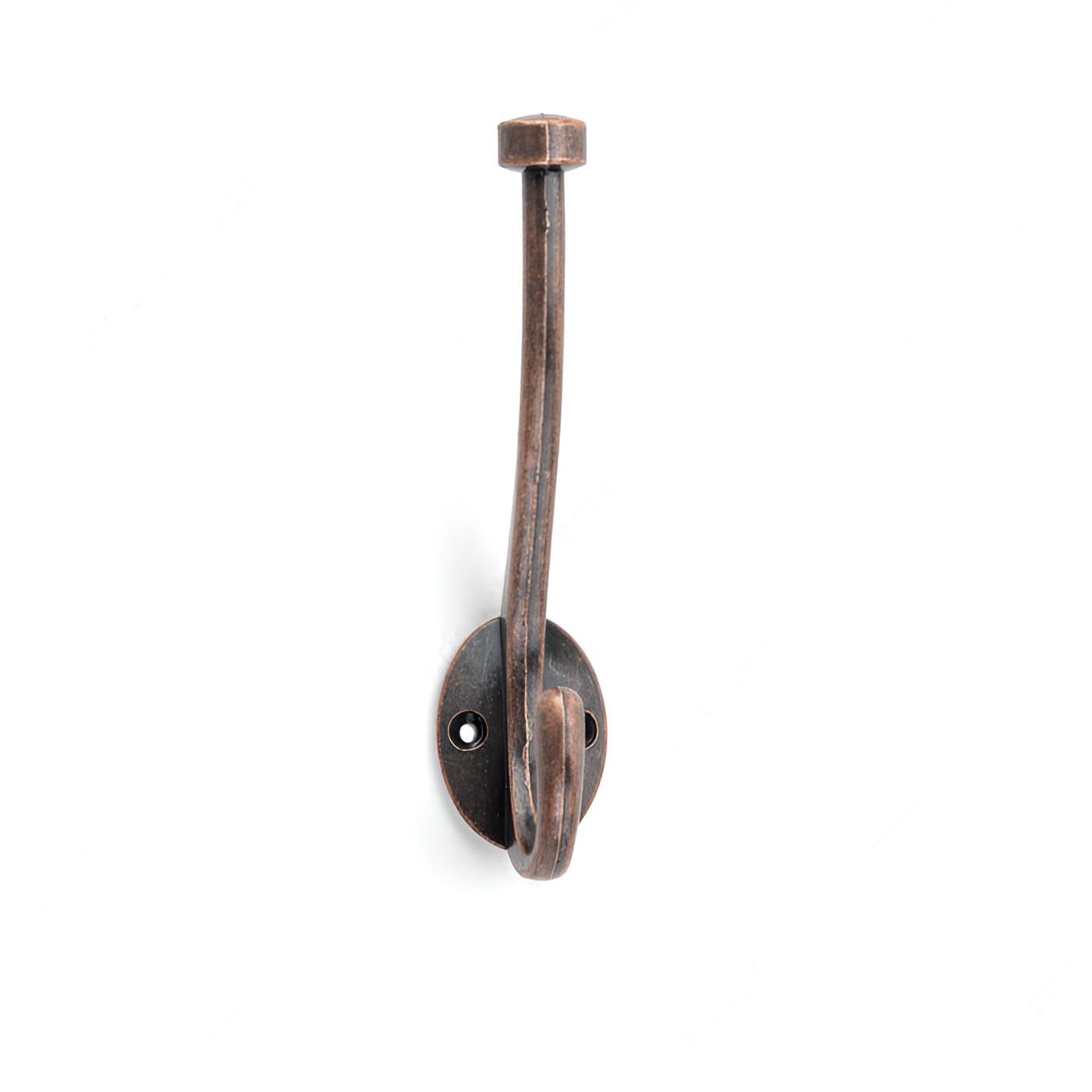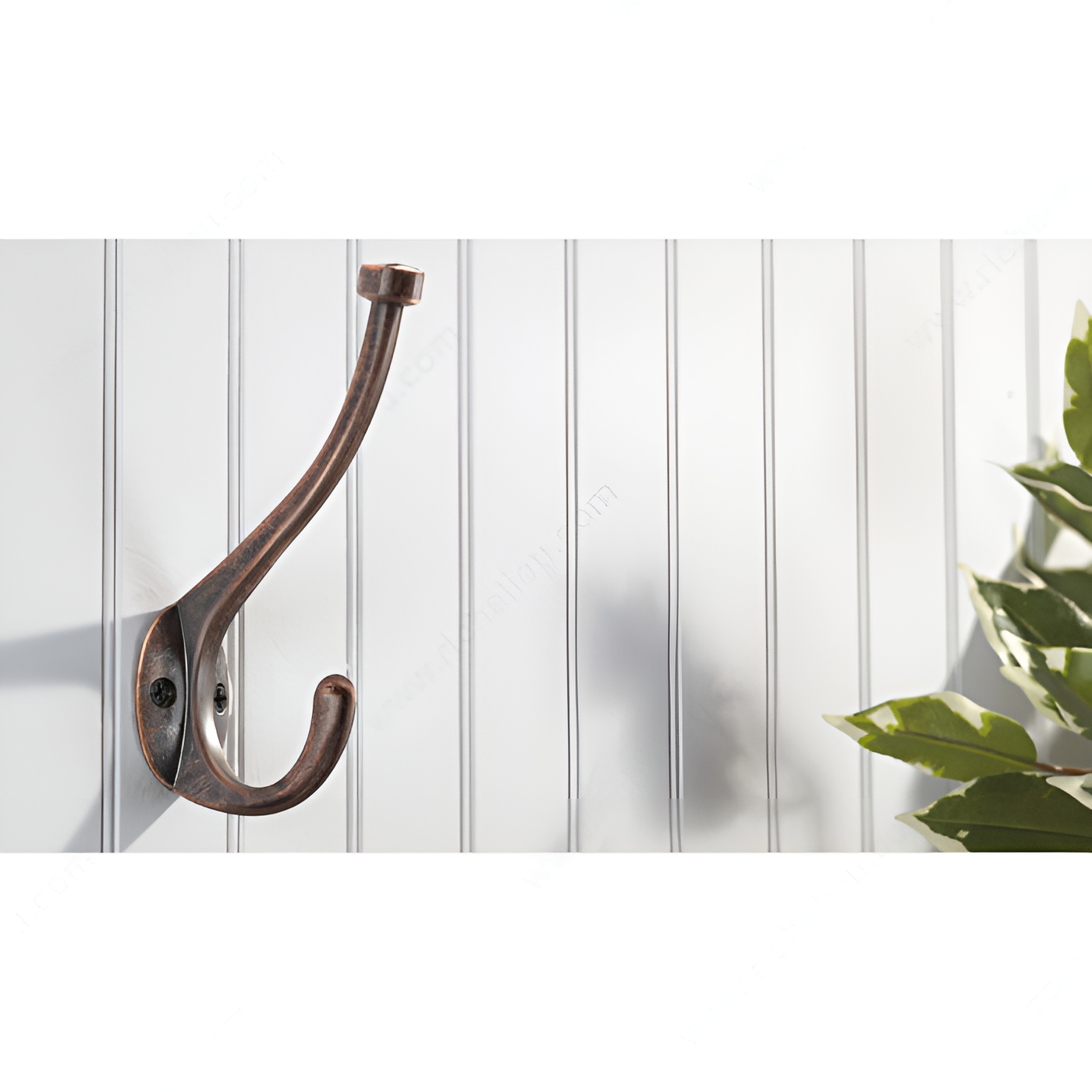 Richelieu 79046BAG Transitional Metal Hook is a stylish and functional solution designed to enhance any space while providing ample storage. Featuring a dual arm design, this coat hook maximizes your hanging potential, allowing for efficient organization of clothing and accessories. The ball end on the top hook ensures that your garments hang securely, preventing slipping and adding to the overall functionality. Finished in an elegant Florentine Bronze, this hook seamlessly integrates into various styles, making it ideal for bedrooms, bathrooms, entryways, mudrooms, closets, and more. With an overall height of 5 13/16 inches, a projection of 3 7/32 inches, and a width of 1 7/16 inches, it fits comfortably in tight spaces without sacrificing style. The hook is constructed from durable metal and has an impressive load capacity of 22 pounds, ensuring it can handle your everyday needs. Installation is straightforward, as the hook comes with wood screws included for easy mounting on walls or doors. The Richelieu 79046BAG not only improves organization but also adds a touch of sophistication to your home environment, making it a perfect choice for building professionals and discerning homeowners alike.