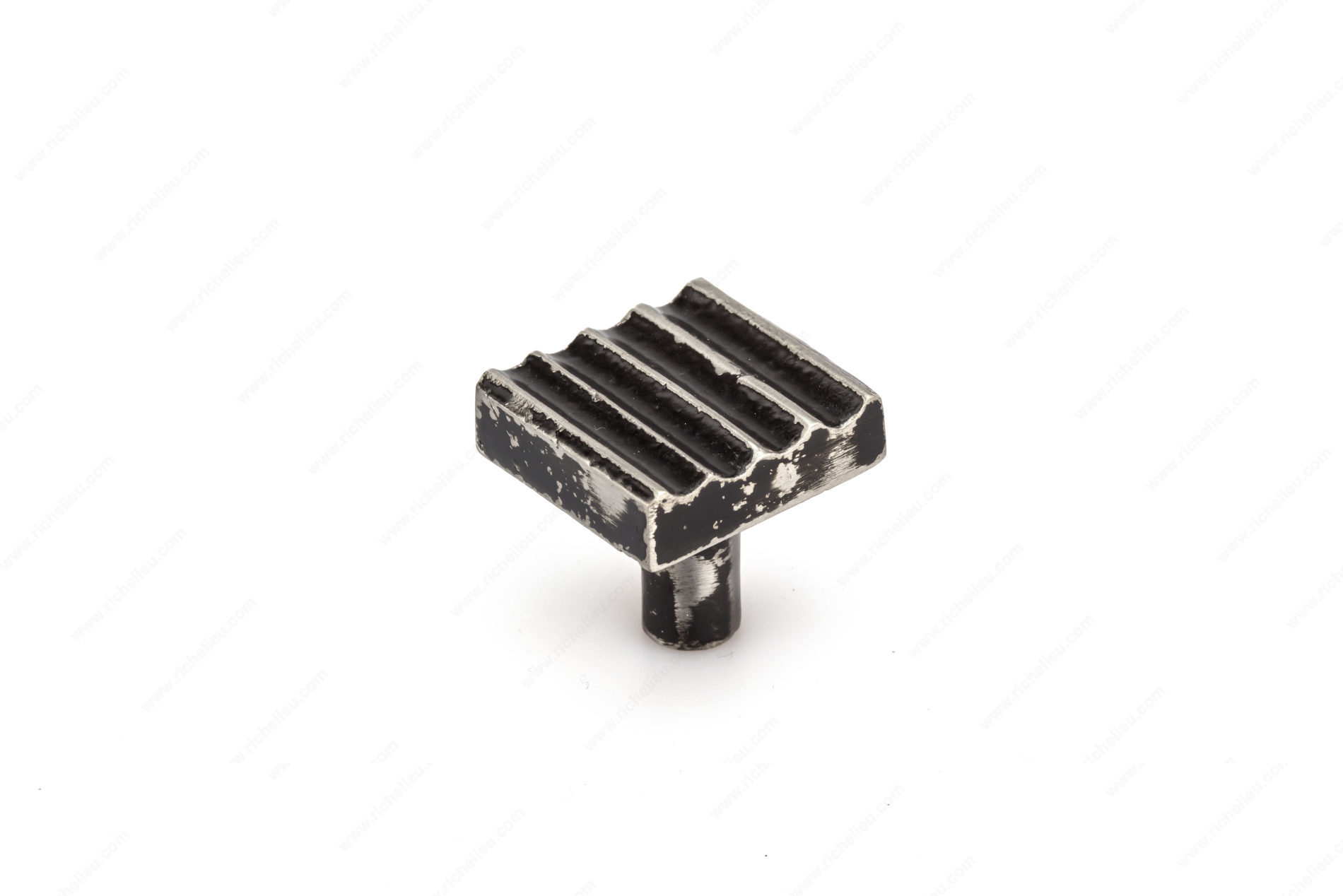 Richelieu 807030903 Traditional Forged Iron Knob - 8070 delivers a striking blend of durability and design that is perfect for enhancing furniture and cabinetry. This knob features a ridged surface with a weathered antique iron finish, offering a bold visual statement that complements both industrial and modern aesthetics. Crafted from quality forged iron, it ensures longevity while maintaining a stylish appearance. Measuring 1 7/32 inches in length and width, with a projection of 1 3/16 inches, this knob is designed to fit seamlessly in various applications. The gray and chrome colorway adds versatility, allowing it to easily coordinate with different color schemes and finishes. Each knob comes complete with an M4 screw, making installation straightforward and hassle-free. Part of the extensive Richelieu Industrial collection, this knob is an ideal choice for professionals and homeowners looking to elevate their interiors with functional yet artistic hardware. With the capability to ship via UPS, it is convenient for those planning renovations or new projects. Upgrade your space with the Richelieu 807030903 Traditional Forged Iron Knob and experience the perfect blend of form and function.