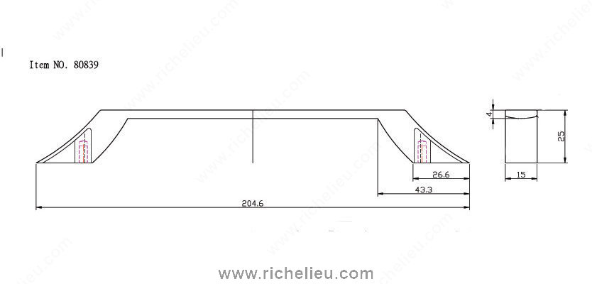 Richelieu 80839160195 Traditional Metal Pull - 8083 offers a blend of elegance and functionality that enhances any cabinetry or furniture project. This block pull features truncated ends, making it a versatile choice that complements a wide range of décors. Crafted from durable metal, it showcases a brushed nickel finish that adds a sophisticated touch while ensuring longevity. With an overall length of 8 1/16 inches and a center-to-center measurement of 6 5/16 inches, this pull is designed for comfortable grip and easy accessibility. The projection measures 31/32 inches, making it an ideal fit for various applications without overwhelming the surrounding space. Its width of 19/32 inches provides a sleek profile that harmonizes beautifully with traditional aesthetics. Available in a contemporary gray and chrome color palette, the Richelieu 80839160195 pull is perfect for kitchen cabinets, bathroom vanities, or any furniture needing a refined accent. Please note that screws are not included, and an 8/32 inch screw is recommended for installation. Shipped via UPS, this pull is sold individually, ensuring you get exactly what you need for your project. Elevate your space with this stunning traditional pull that marries style and practicality seamlessly.