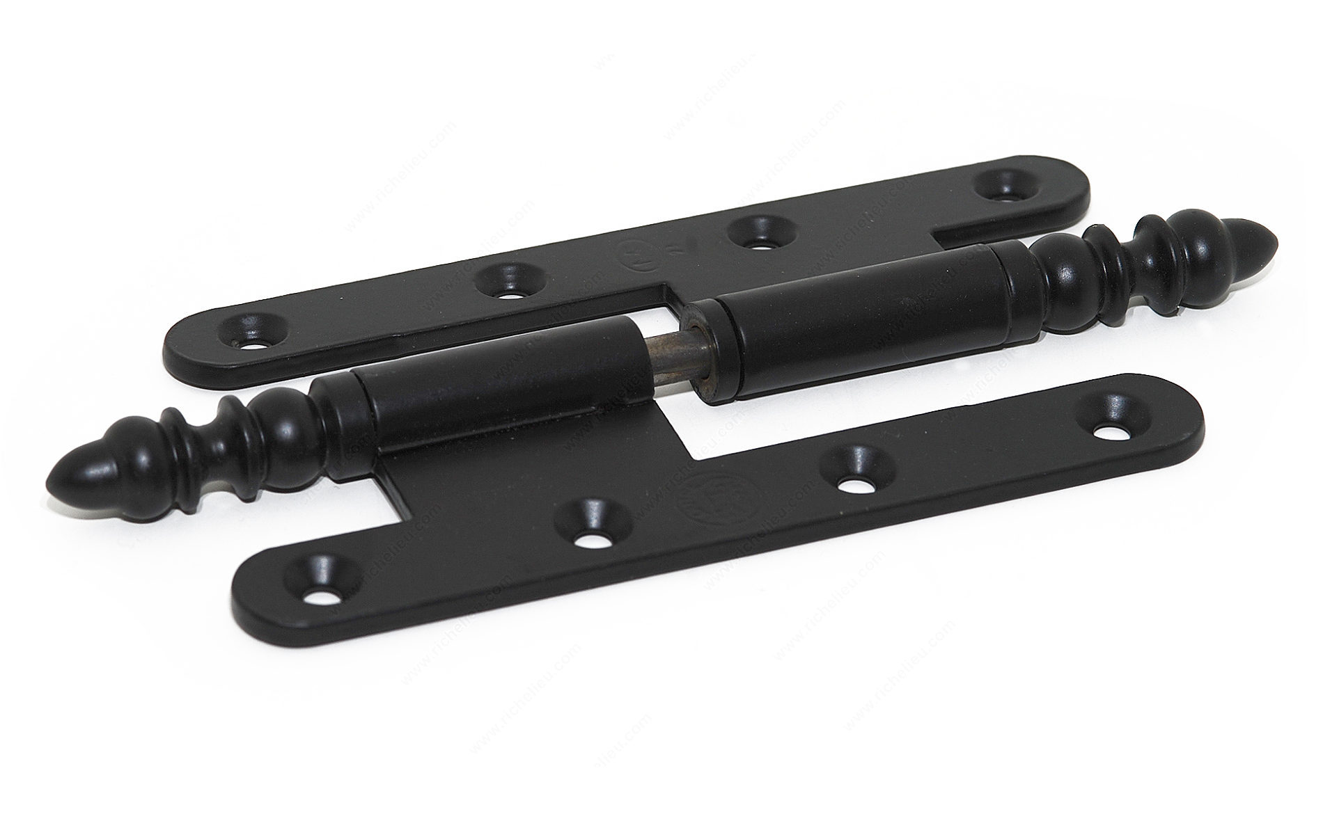Richelieu 81314080290 Decorative Paumelle-Type Split-Hinge - 813 offers a perfect blend of functionality and classic design, making it an ideal choice for both residential and commercial applications. This high-quality hinge features a steeple finial style and is crafted from durable steel and solid brass, ensuring longevity and strength. With a sleek black finish, it adds a touch of elegance while seamlessly blending with various decor styles. Measuring 5 1/2 inches in height and 3 5/32 inches in width, this right-positioned hinge is designed for easy installation with a screw-on fixing type, though wood screws are not included. The classic style of the hinge enhances the aesthetics of doors and cabinetry, making it a stylish yet practical hardware solution. This product is part of Richelieu's Inspiration catalogue, emphasizing the brand's commitment to quality and design innovation. The Decorative Paumelle-Type Split-Hinge is designed for ease of shipping and can be conveniently sent via UPS, ensuring quick delivery to your project site. Whether you are a building professional or a knowledgeable homeowner, the Richelieu 81314080290 hinge is a reliable choice that promises both beauty and performance in your architectural projects.