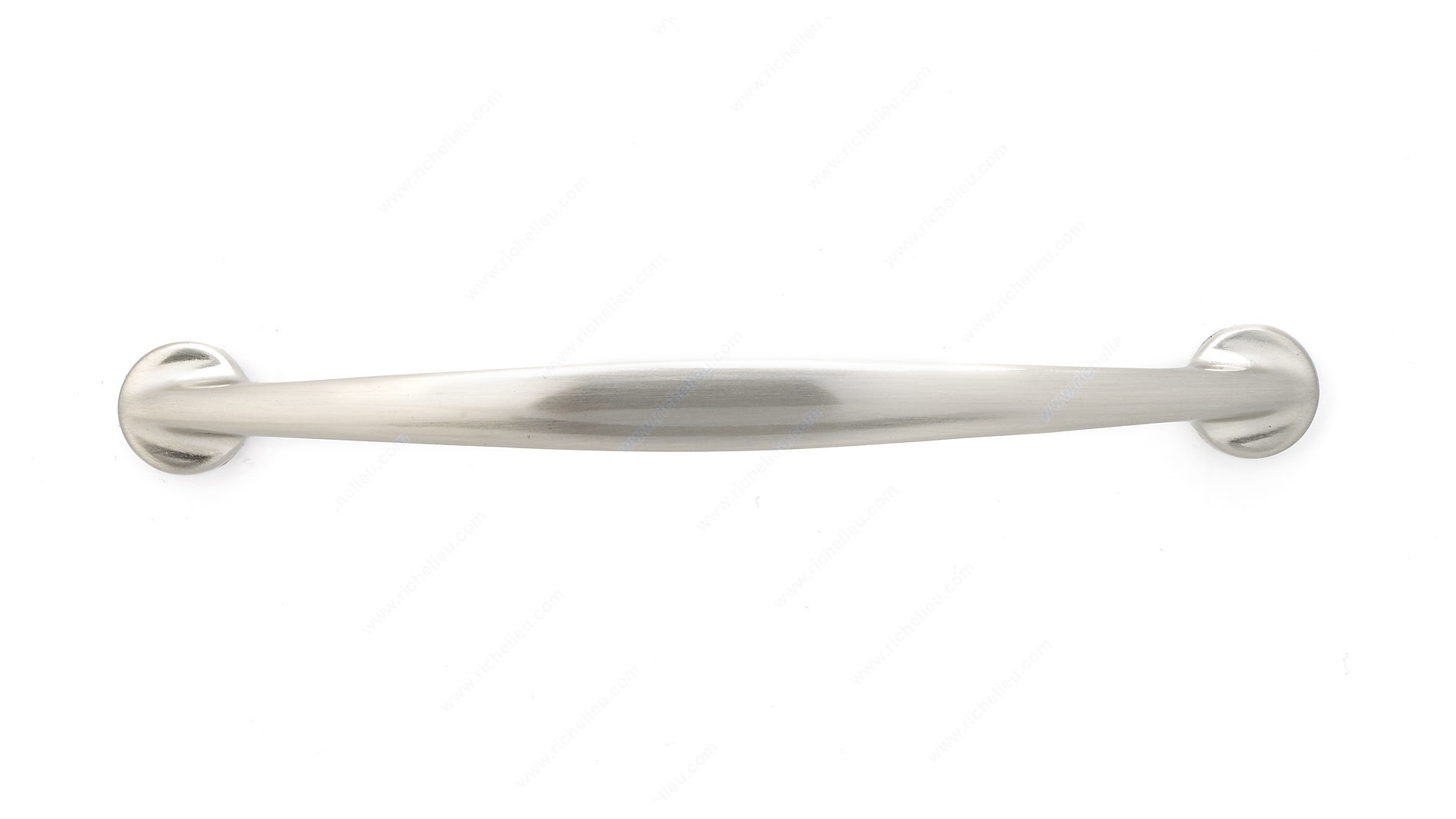 Richelieu 82905128195 Modern Metal Pull offers a sleek and sophisticated upgrade to your kitchen or cabinetry. This modern bow pull features sturdy flattened ends, designed to provide both functionality and style. Crafted from durable Zamak, it ensures long-lasting performance while enhancing the aesthetic appeal of your furniture. With an overall length of 6 1/16 inches and a center-to-center measurement of 5 1/32 inches, this pull is perfectly sized for a variety of applications. The brushed nickel finish adds a touch of elegance, complemented by a contemporary gray and chrome color scheme. Its overall projection is 1 3/32 inches, giving it a comfortable grip while maintaining a streamlined look. Installation is straightforward, requiring an 8/32 inch screw (not included), making it an ideal choice for both professional builders and DIY enthusiasts. The pull's width of 15/32 inches ensures it fits seamlessly with modern cabinetry styles. Richelieu’s Urban model is packaged per unit, making it easy to order exactly what you need. Elevate your space with the refined allure of the Richelieu 82905128195 Modern Metal Pull, where quality meets contemporary design.