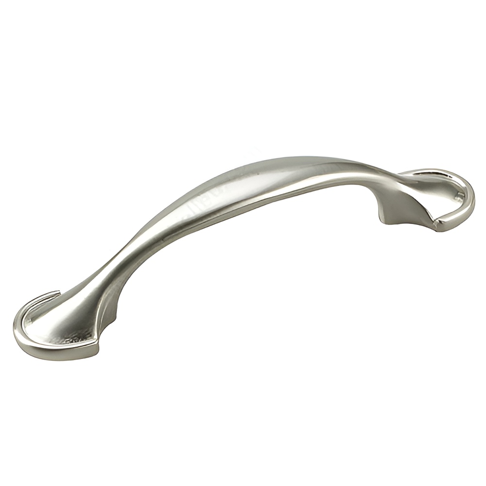 Richelieu 858NBV Traditional Metal Pull - 858S adds a refined touch to cabinets and classic-style furniture, making it an ideal choice for enhancing the elegance of any space. Crafted from durable metal, this pull features a brushed nickel finish that complements a variety of interior designs. The unique decorative ends, reminiscent of delicate sea shells, offer a subtle yet striking visual appeal, perfect for those looking to elevate their decor. With a center-to-center measurement of 3 inches, this pull is designed for easy installation and fits seamlessly into various cabinet styles. The overall dimensions of 4 11/16 inches in length and a projection of 1 1/32 inches provide a comfortable grip while maintaining a sleek profile. The rich gray and chrome color scheme ensures it stands out while harmonizing with your existing hardware. Each pull comes packaged in a bag and includes an 8/32 inch screw for straightforward installation. Whether you're updating your kitchen, bathroom, or furniture pieces, the Richelieu 858NBV is a versatile and stylish choice that brings a classic touch to modern living. Transform your space with this exquisite handle and enjoy the perfect blend of functionality and aesthetics.