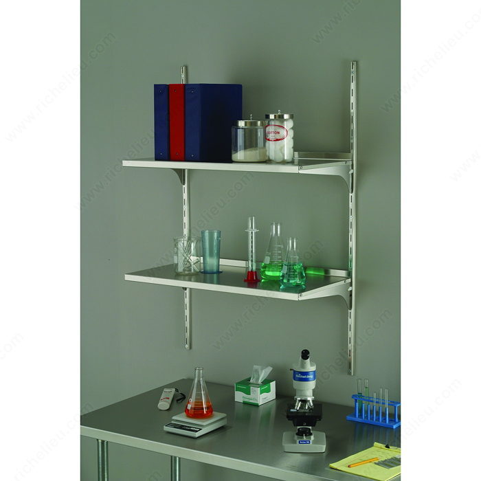 Richelieu 877230 Heavy-Duty Standard, Series 87 offers an exceptional solution for commercial shelving applications. Constructed from durable galvanized steel, this heavy-duty standard is designed to provide superior carrying strength, making it ideal for storing a variety of items, from paint to grocery and hardware supplies. With a length of 72 inches, it features 1-inch long slots spaced at 2-inch vertical intervals, allowing for versatile shelf positioning and easy adjustments. The standard's sleek white finish not only enhances its aesthetic appeal but also ensures it blends seamlessly into any workspace or storage area. With a robust gauge of 12, it is built to withstand the demands of professional environments. Simple mounting makes installation a breeze, allowing you to set up your shelving system quickly and efficiently. Compatible with bracket series #186 and #187, the Richelieu 877230 Heavy-Duty Standard is a reliable choice for those seeking strength and flexibility in their shelving solutions. With a projection of 11/16 inch and a width of 7/8 inch, it provides ample support without taking up excessive space. Choose this heavy-duty standard to elevate your shelving system and enhance your storage capabilities.
