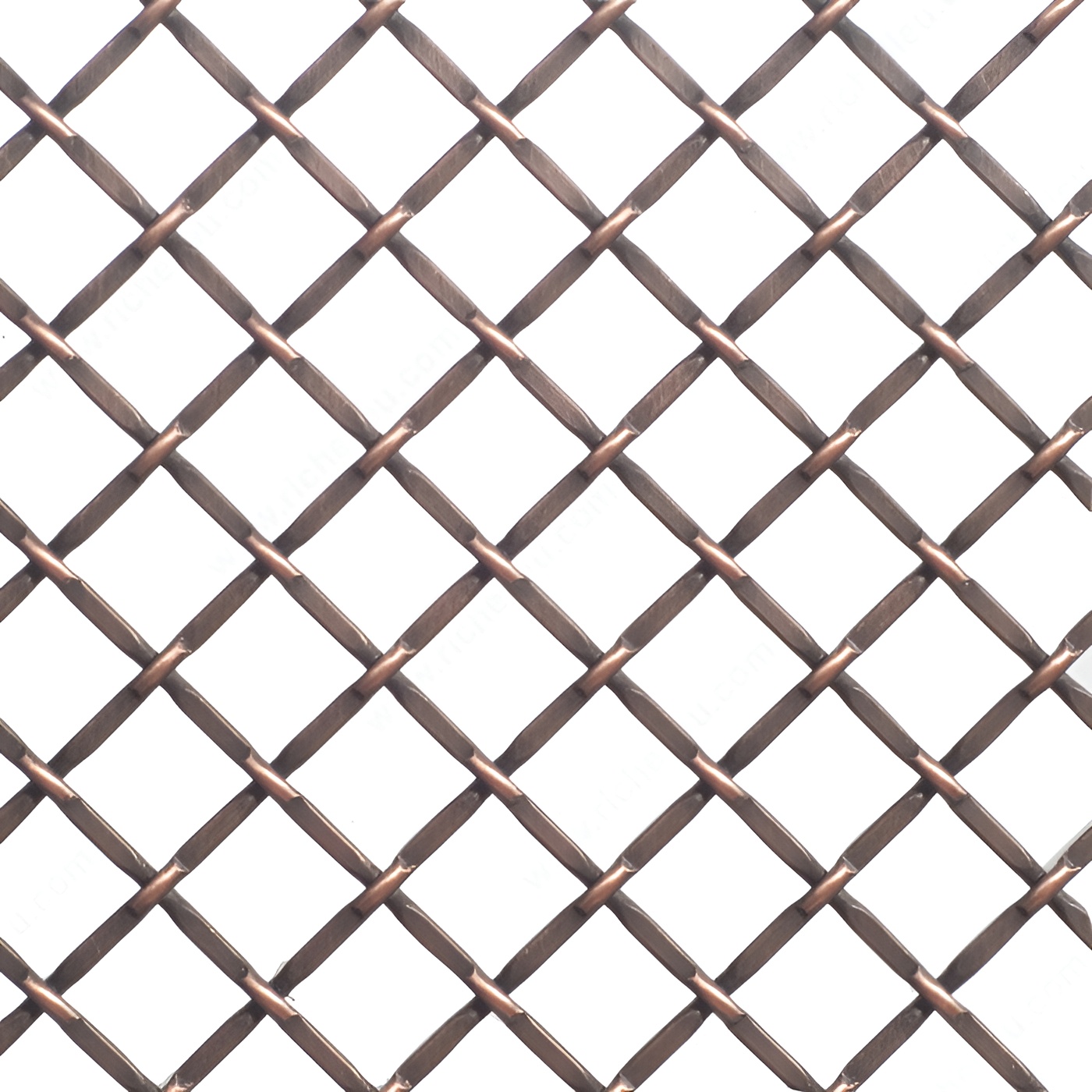 Richelieu 881214M41 Decorative Wire Mesh - Model B offers a striking way to enhance your space with its traditional style and antique copper finish. Made from durable steel, this decorative mesh combines functionality with aesthetics, making it an ideal choice for both professional and residential applications. The mesh features a distinctive diamond shape, with a round wire diameter of 1/4 inch (36.5 mm) that is flat crimped for added strength. With an opening size of 1/2 inch (12.7 mm) and a spacing model of 1/2 inch, it provides high transparency, allowing for visibility while maintaining a degree of privacy. Measuring 48 inches in length and 36 inches in width, the mesh is versatile enough for various design needs, whether for partitioning spaces or adding decorative elements. Available in hues of red, rose, and rust, the mesh complements a variety of design schemes. Additionally, it ships conveniently via UPS, ensuring a hassle-free delivery process. The Richelieu 881214M41 Decorative Wire Mesh is perfect for architects, designers, and homeowners seeking both style and functionality in their projects.