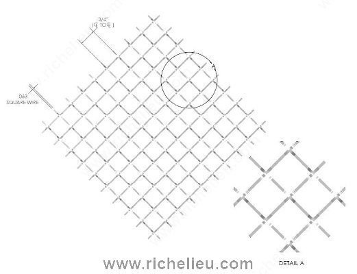 Richelieu 88316140 Decorative Wire Mesh - Model J offers a striking combination of functionality and aesthetic appeal, making it an ideal choice for various architectural and design applications. Crafted from durable steel, this wire mesh features a wire size of .063 square wire that is intercrimped for added strength and stability. With a diamond shape and an opening size of 3/4 inch, it allows for a remarkable 84% open area, ensuring high transparency and visibility while maintaining structural integrity. Available in a sleek gray and chrome finish, this decorative wire mesh not only enhances the visual aspect of spaces but also integrates seamlessly with modern design trends. The overall dimensions of 48 inches in length and 36 inches in width provide ample coverage for a range of projects, from partitions to decorative accents. With a transparency rating of 80% to 100%, it can be utilized in both functional and decorative capacities. Ship via UPS for convenience, making it easy to incorporate into your next project. Choose Richelieu's Decorative Wire Mesh - Model J for a reliable and stylish solution that meets the needs of building professionals and discerning homeowners alike.
