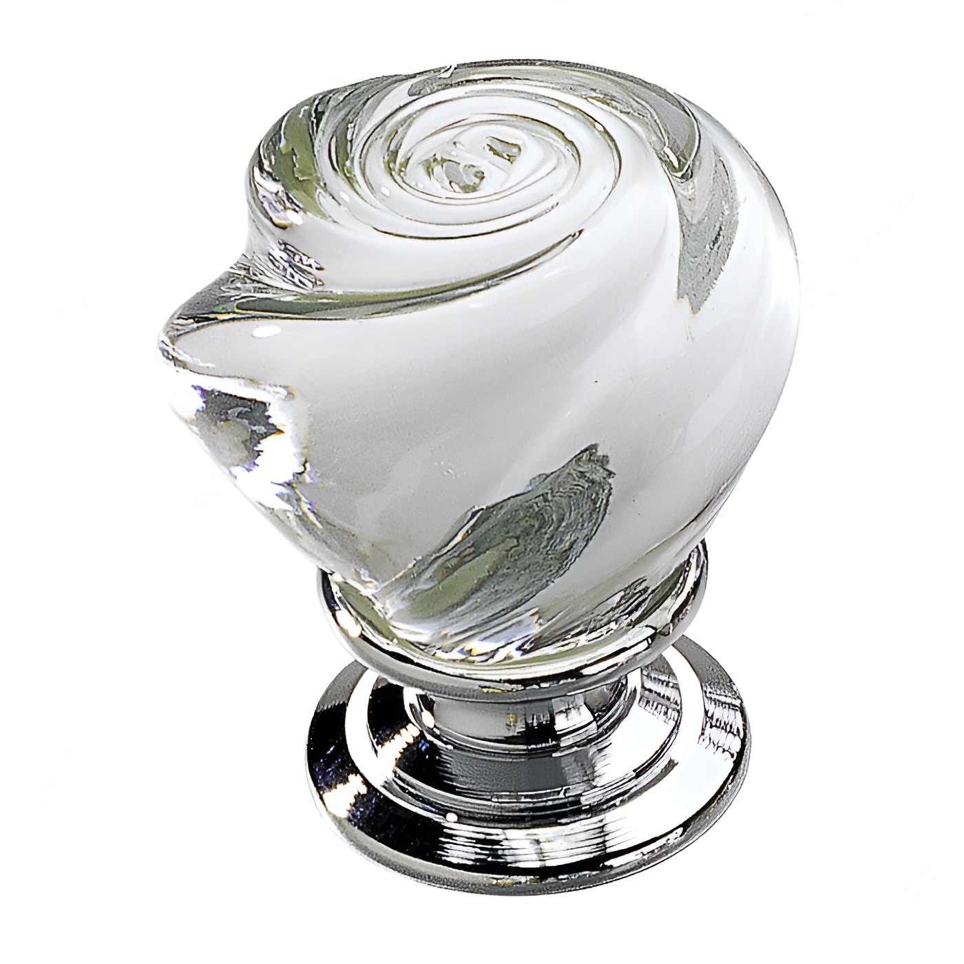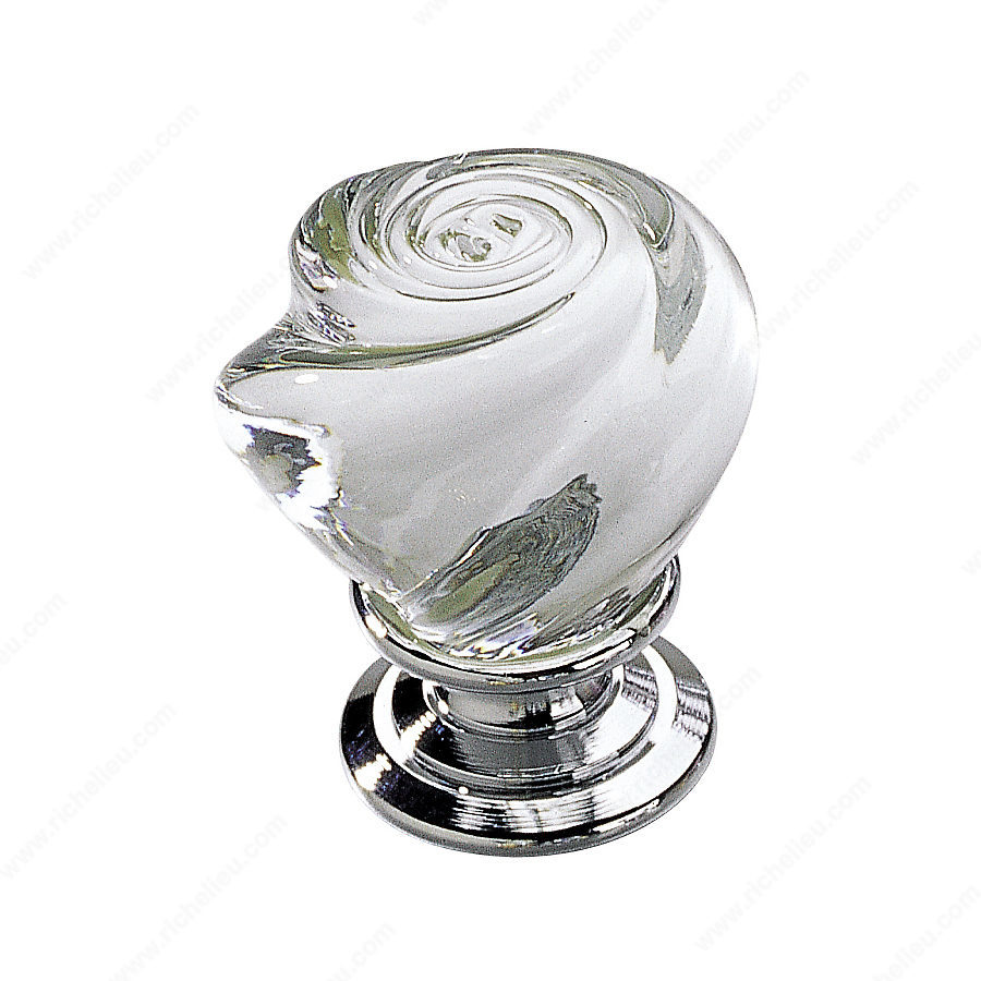Richelieu 903014011 Traditional Murano Glass and Metal Knob - 9030 effortlessly combines elegance and functionality. Inspired by the swirled shape of a rose, this knob adds a classic touch to your bedroom or bathroom decor, enhancing the overall aesthetic with its soft, delicate design. Measuring 1 3/16 inches in diameter and 1 3/8 inches in projection, this knob is crafted from high-quality Murano glass and crystal, ensuring durability and a luxurious feel. The clear and chrome finish not only provides a sophisticated appearance but also complements various design styles. With a load capacity of 2.2 pounds, it is suitable for a variety of applications, making it a versatile choice for any renovation project. Installation is straightforward, thanks to the included M4 screw, allowing you to easily upgrade your cabinetry without hassle. This traditional glass and crystal knob is perfect for those looking to infuse their spaces with a touch of timeless elegance and charm. Whether you are a building professional or a knowledgeable homeowner, the Richelieu 903014011 knob is a beautiful addition that enhances both functionality and style in your living spaces.