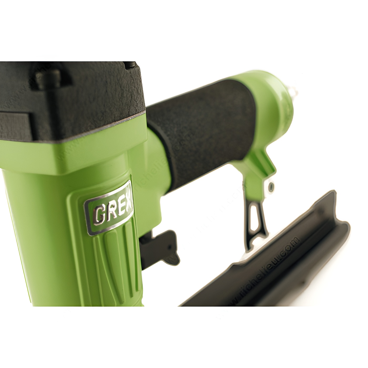 Only the GREX 9032 narrow crown stapler has the unique long-nose feature that permits difficult fastener placement in many cabinet assembly and drawer applications. The tool also has an internal safety and fastener jam-clearing door. Lightweight and comfortable to use, this device is also an industrial-strength tool that is quick and easy to load.