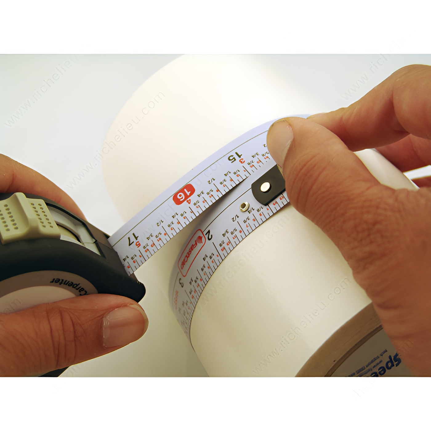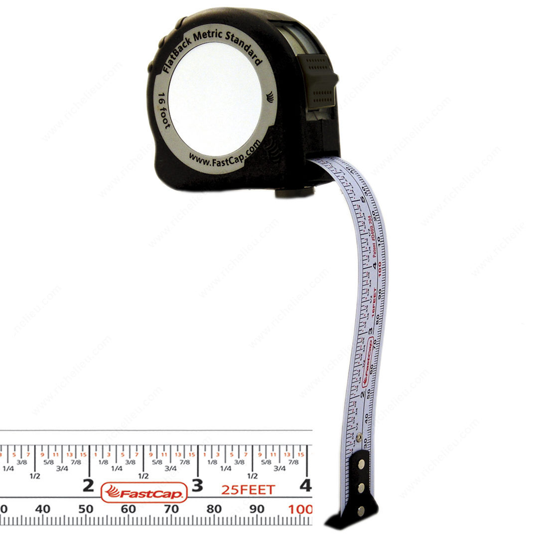 Richelieu 916420 Metric/Standard ProCarpenter Flatback Flexible Tape Measure is designed for professionals who demand precision in their measurements. Measuring both curves and flat surfaces seamlessly, this versatile tool enhances your ability to work with a variety of materials and projects. This ProCarpenter tape measure features seven innovative tools that make it an indispensable addition to your toolkit. The lever action belt clip ensures easy access while on the job, allowing you to keep your hands free. A built-in pencil sharpener keeps your writing instrument ready for quick notes, while the dual locking system provides added security during use. An erasable notepad enables you to jot down measurements without the worry of permanent marks. With a heavy-duty 1-inch blade and high-contrast markings, you'll experience clarity and durability in every measurement. The compact design is rugged enough to withstand the demands of any professional environment. Measuring 16 feet in length, it supports both metric and imperial measurements, making it ideal for a wide range of tasks. Elevate your measuring experience with the Richelieu 916420 ProCarpenter Flatback Flexible Tape Measure-precision and practicality all in one tool.
