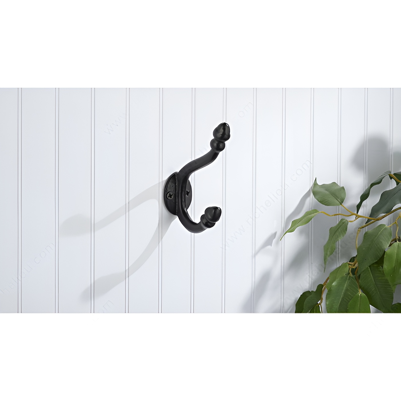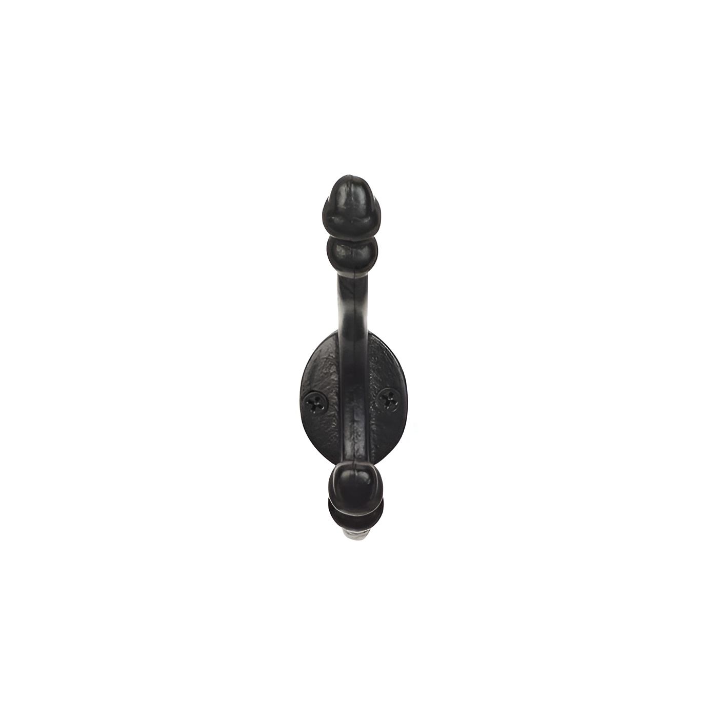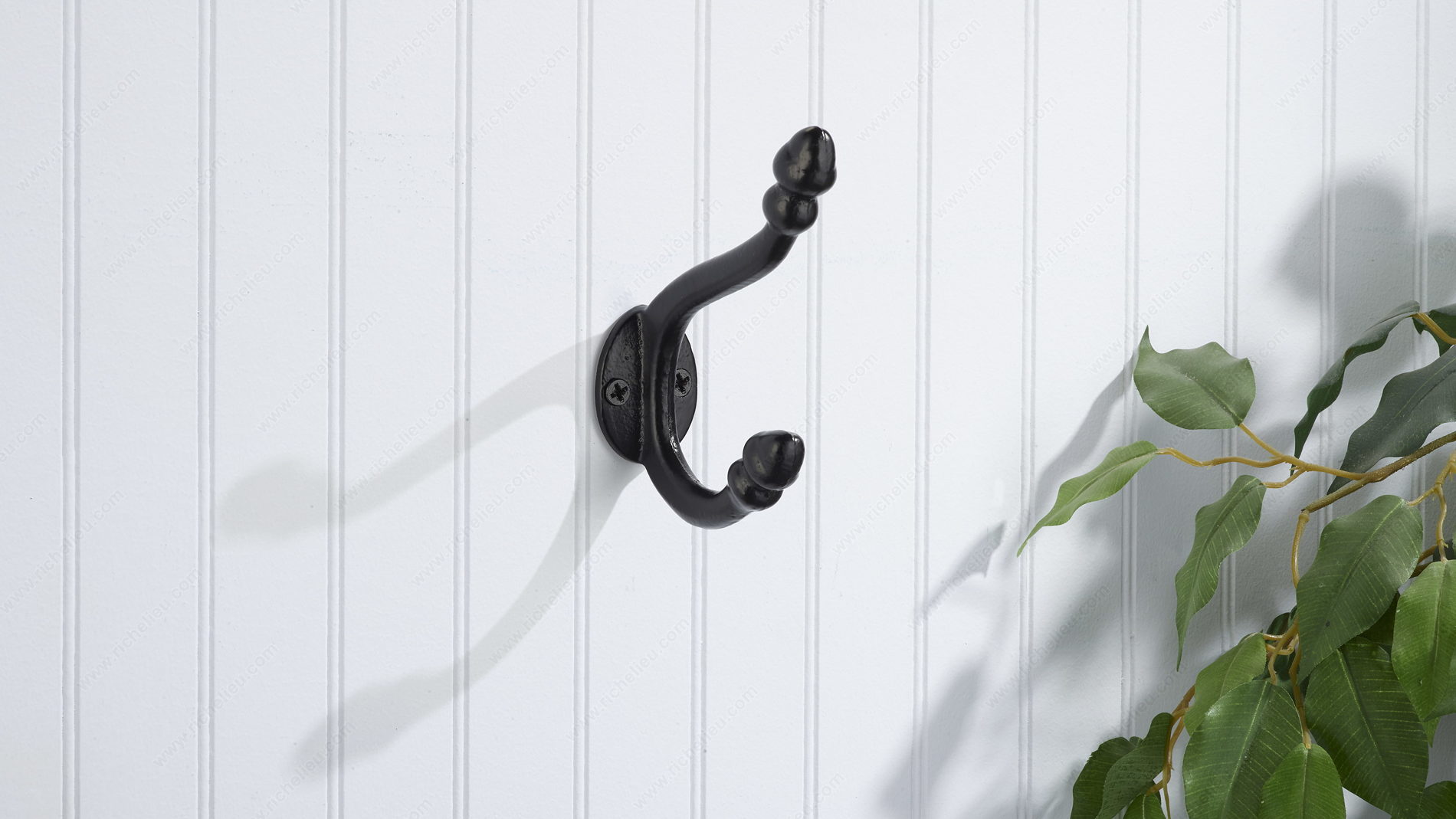 Richelieu 92347BAG Classic Wrought Iron Hook - 823/923 offers a blend of functionality and timeless design, perfect for enhancing any space with a rustic touch. This antique iron hook features a striking black finish that seamlessly integrates into traditional-themed rooms, providing a sophisticated accent. The innovative dual arm design significantly increases your storage potential, making it an ideal solution for various settings, including bedrooms, bathrooms, entryways, mudrooms, and closets. With a load capacity of up to 22 lbs, this robust metal hook ensures reliable support for coats, bags, and other essentials. Measuring 4 13/32 inches in height, 1 5/16 inches in width, and projecting 3 7/32 inches from the wall, it is compact enough to fit comfortably in tight spaces. The hook comes packaged in a convenient bag and includes necessary screws for easy installation on walls or doors. Enhance your interior decor while maximizing storage with the Richelieu Classic Wrought Iron Hook. This versatile piece is not just a practical addition but also a stylish detail that elevates the overall ambiance of your home.