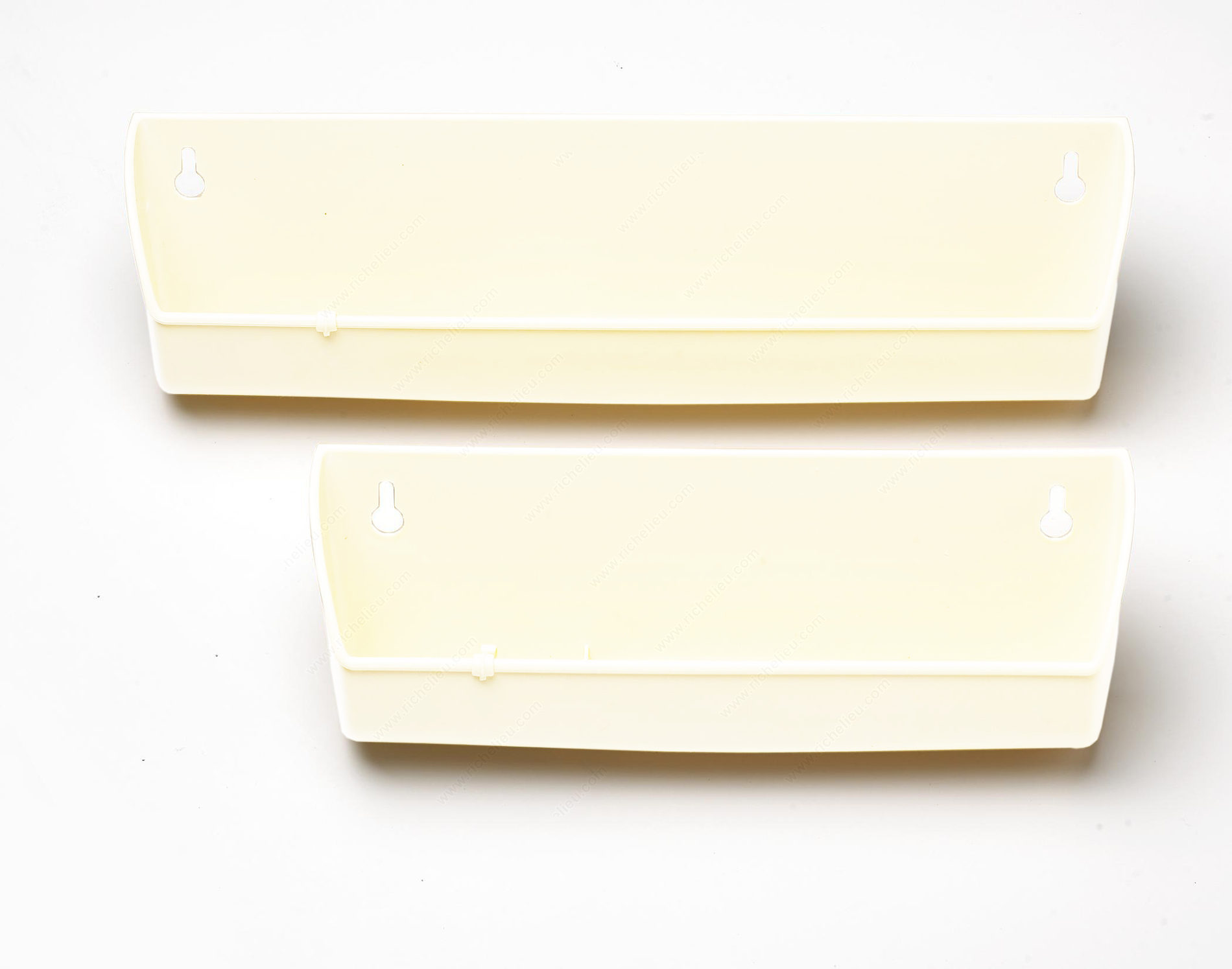 Richelieu 96572130 Moulded false-drawer trays offer an innovative solution for enhancing your storage and organization needs. Designed specifically for under-sink cabinets and drawer organization, these trays are crafted from durable polymer and come in a clean white finish that seamlessly blends with various decors. Each tray measures 11 inches in width, 2 3/16 inches in depth, and 3 13/16 inches in height, providing ample space for organizing cleaning supplies, utensils, or other essentials. The inclusion of ring hooks enhances functionality, allowing for easy attachment and retrieval of items. This product is shipped in a convenient box format and is eligible for UPS shipping, making it easy to receive and incorporate into your project. With the necessary hinges included, installation is straightforward, saving you time and effort. Whether you're a building professional looking to streamline storage solutions or a knowledgeable homeowner seeking better organization, the Richelieu 96572130 Moulded false-drawer trays are designed to meet your needs while elevating your space's functionality. Experience the difference in your storage solutions today with this essential organizational tool.