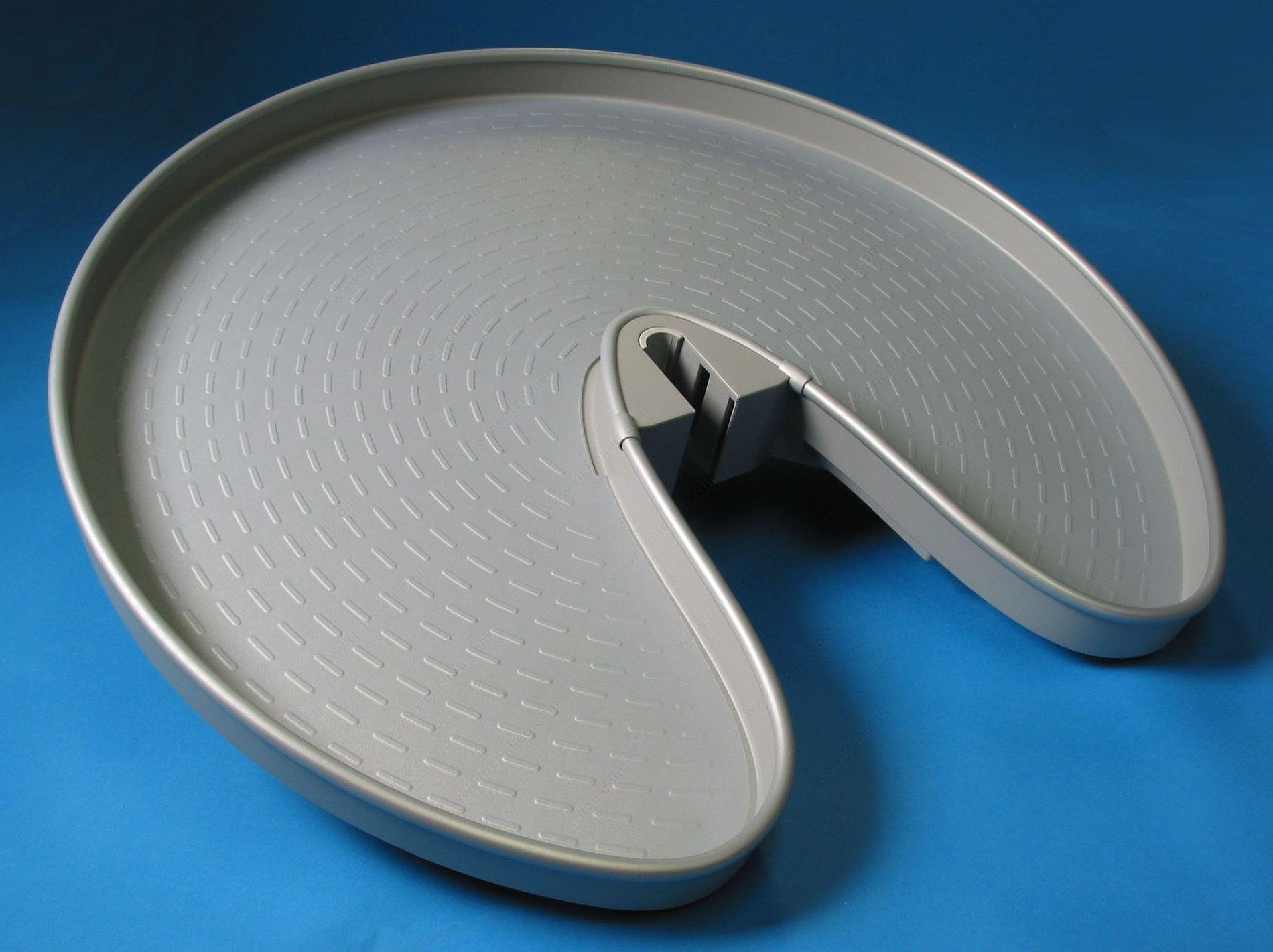 Richelieu 9776100 Set of 3/4 Pro-Arc Trays offers a smart solution for maximizing storage in corner cabinets. This innovative Lazy Susan series is designed to provide ample space for organizing food storage and preparation items, making it an essential addition to any kitchen. Each tray features an integrated rim that effectively prevents items from slipping off, ensuring that your stored goods stay secure. Installation is a breeze with this system, requiring minimal hardware to set up, which saves you time and effort. The trays boast a generous capacity of 44.1 lbs each, allowing you to store a variety of kitchen essentials with confidence. With a diameter of 31 7/8 inches, they fit comfortably within cabinets that have an interior height requirement of 28 to 30 5/8 inches. Finished in a sleek gray, the Pro-Arc Trays not only enhance functionality but also blend seamlessly with modern kitchen aesthetics. Ideal for corner cabinets, this product is perfect for homeowners seeking to optimize their kitchen space while maintaining an organized environment. Experience the convenience and efficiency of Richelieu’s Pro-Arc Trays and transform your kitchen storage today.