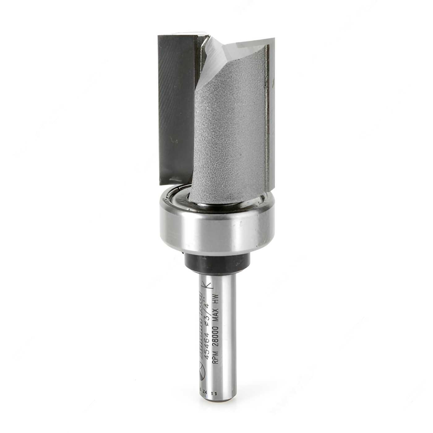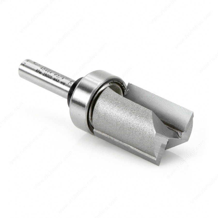 Richelieu AT45464 Flush Trim Plunge Bit is designed for precision and versatility in woodworking projects. This plunge-cutting straight bit features a shank-mounted ball-bearing pilot that ensures accuracy when routing. By attaching your template directly to the workpiece, the pilot bearing glides along its edge, allowing the cutting edges to create an exact duplicate of your template. Whether you are using a handheld router with the pattern positioned on top or a table-mounted router with the pattern underneath, this bit delivers consistent results every time. Constructed with carbide-tipped material, the AT45464 is built for durability and longevity, making it an ideal choice for professionals and dedicated DIYers alike. With a cut diameter of 3/4 inch and an overall length of 2 1/2 inches, this bit is well-suited for a variety of applications. The 1/4-inch shank ensures compatibility with most routers, allowing you to easily integrate it into your existing toolkit. Richelieu’s commitment to quality is evident in this reliable tool, which can be conveniently shipped via UPS. Elevate your woodworking capabilities with the precision and efficiency offered by the Richelieu AT45464 Flush Trim Plunge Bit.