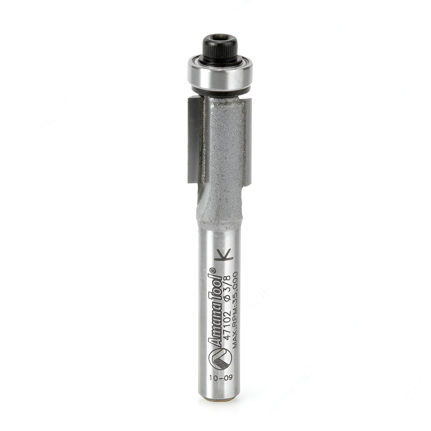 Richelieu AT47102 Flush Trim Bit is designed to enhance your laminate and pattern work with precision and ease. This high-performance bit features a 3/8-inch cut diameter and a cutting height of 1/2 inch, making it ideal for achieving smooth, flush finishes. The 2-flute design optimizes cutting efficiency, ensuring clean edges on your workpiece. Constructed with carbide-tipped material, this flush trim bit offers durability and longevity, allowing you to tackle multiple projects without compromising performance. Whether you’re using a handheld router or a table-mounted router, the AT47102 provides versatility in application. When using a handheld router, the template is placed underneath, while for a table-mounted setup, the template sits atop the workpiece, enabling seamless trimming with precision. With an overall length of 2 1/8 inches and a 1/4-inch shank, this bit is compatible with a variety of routers, enhancing its utility for both professional contractors and dedicated DIYers. The Richelieu AT47102 Flush Trim Bit is a reliable choice for anyone looking to elevate their woodworking projects, providing the quality and performance expected from a leading name in functional hardware.