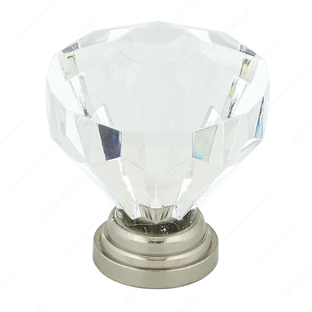 Richelieu BP1008019511 Eclectic Acrylic and Metal Knob brings a sophisticated touch to your cabinetry, perfectly blending classic elegance with modern design. Ideal for kitchens and bathrooms, this knob features a stunning combination of acrylic and metal that enhances any décor while providing a durable and stylish solution. With an overall diameter of 1 1/4 inches and a base diameter of 23/32 inches, this knob offers a comfortable grip and an eye-catching aesthetic. The clear finish, accented by brushed nickel, adds a luxurious feel, making it a standout piece in your space. Designed to support a load capacity of 2.2 pounds, it is both functional and stylish. The projection of 1 13/32 inches ensures easy accessibility, while the included 8/32 inch screw simplifies installation. This eclectic-style knob is not just a functional hardware piece; it’s a statement accessory that elevates the look of your cabinets. Whether you're renovating or simply refreshing your interiors, the Richelieu BP1008019511 is an excellent choice for those seeking quality and style. It ships conveniently via UPS, making it easy to incorporate this elegant knob into your next project.