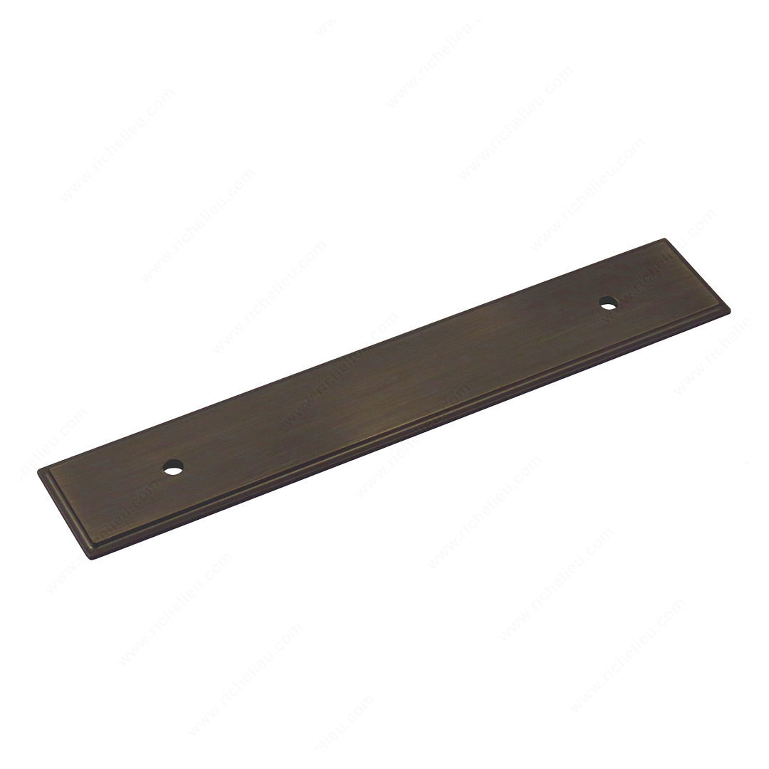 Richelieu BP1045128143 Transitional Metal Backplate for Pull is the ideal enhancement for kitchen and bathroom cabinetry, effortlessly combining style and functionality. Crafted from durable metal, this backplate features an elegant antique nickel finish, providing a sophisticated touch that complements various décor styles. Measuring 7 13/32 inches in length and 1 1/4 inches in width, this backplate is designed to fit a 5 1/32-inch center-to-center pull configuration. The transitional design bridges modern and traditional aesthetics, making it a versatile choice for any renovation project. With a projection of just 3/16 inch, it maintains a sleek profile while ensuring a secure fit. The BP1045128143 is available in a chic gray and chrome color combination, allowing it to seamlessly blend with different cabinet finishes. While screws are not included, the installation process remains straightforward, enabling quick upgrades to your cabinetry. Whether you're a building professional or a knowledgeable homeowner, this decorative backplate adds an instant upgrade to your space. Choose Richelieu's BP1045128143 Transitional Metal Backplate for Pull to enhance the look of your cabinets with a touch of elegance and durability.