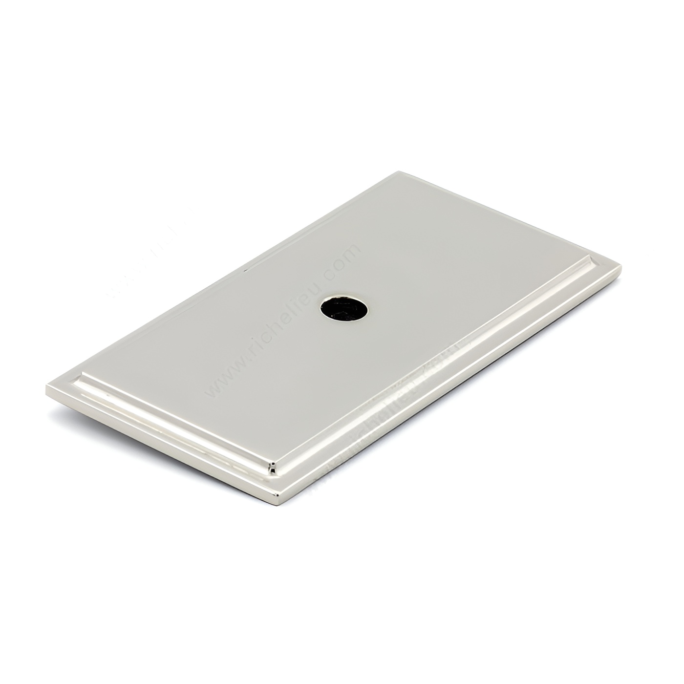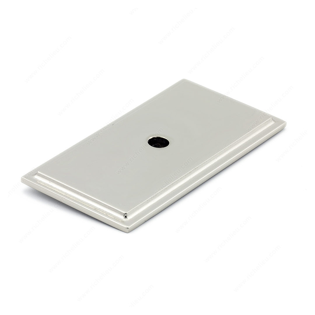Richelieu BP1045180 Transitional Metal Backplate for Knob - 1045 adds a stylish touch to any decor with its sleek and simple design. Crafted from durable metal, this decorative backplate perfectly complements transitional design aesthetics, making it an ideal choice for modern renovations and classic updates alike. Measuring 2 17/32 inches in length and 1 1/4 inches in width, the backplate offers a subtle yet effective enhancement to your knobs. Its polished nickel finish provides a sophisticated gray and chrome look, ensuring it blends seamlessly with a variety of color palettes and styles. With a projection of just 1/8 inch, it maintains a low profile while still making a statement. Designed for ease of use, the Richelieu BP1045180 is shipped via UPS for convenient delivery. Please note that screws or nails are not included, allowing you to customize your installation experience. This backplate not only protects the surface beneath your knob but also elevates the overall aesthetics of your cabinetry or furniture. Whether you are a building professional or a knowledgeable homeowner, the Richelieu BP1045180 Transitional Metal Backplate is a perfect addition to your project, combining functionality with timeless elegance.