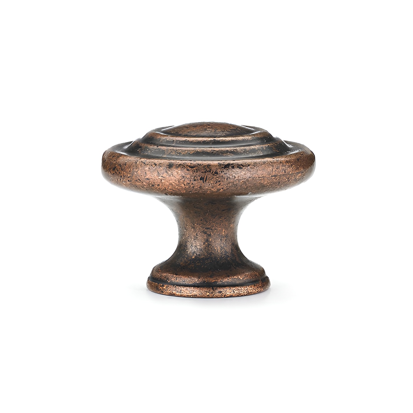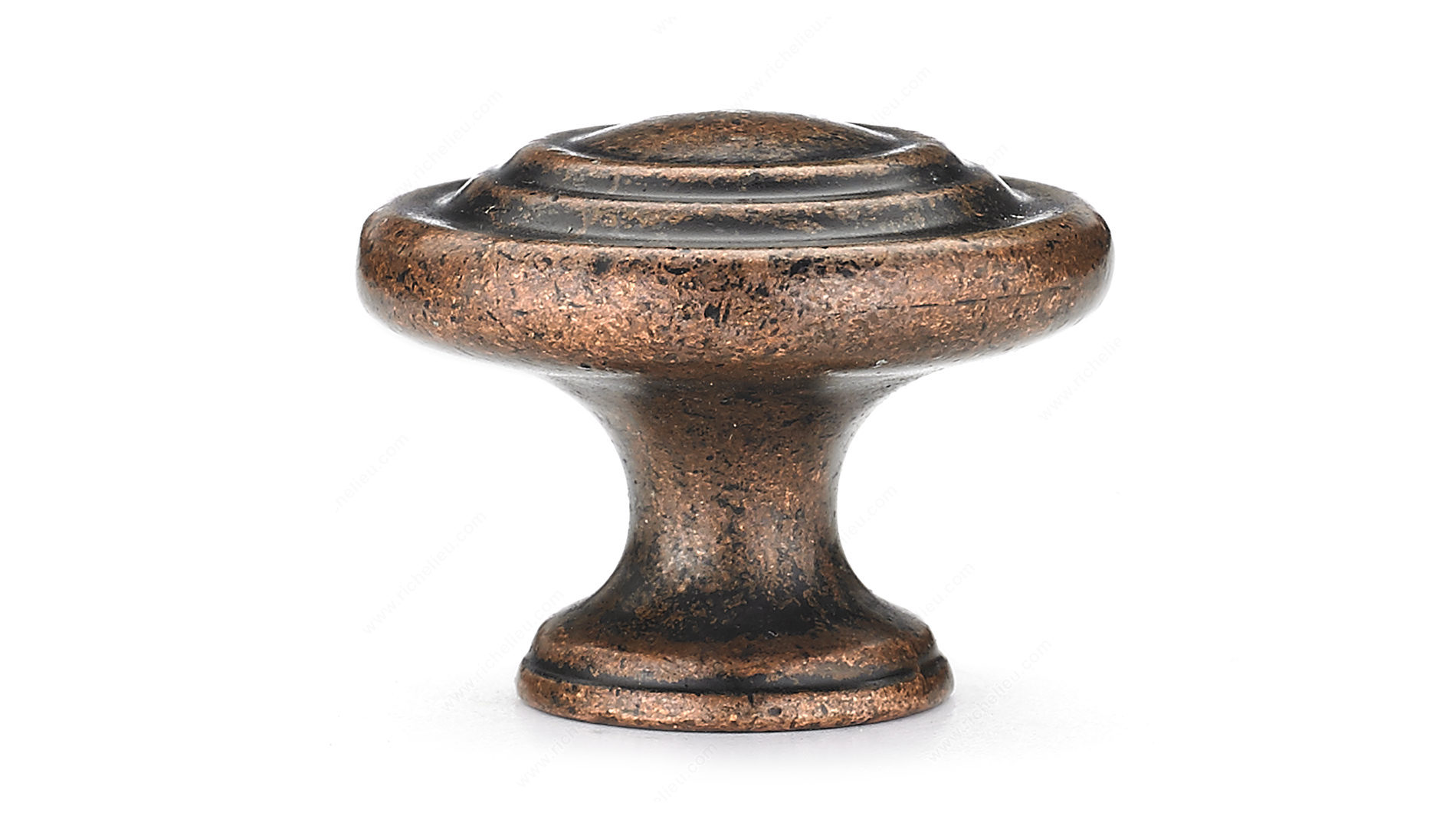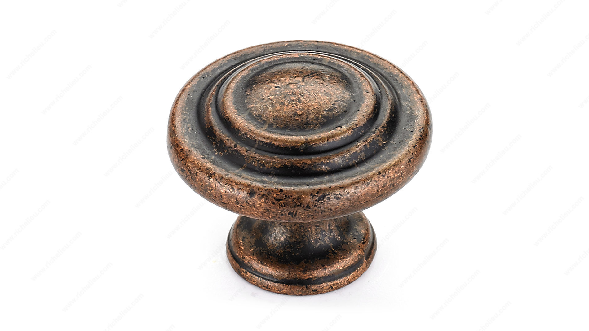 Richelieu BP10734193 Traditional Metal Knob - 107 showcases a timeless design ideal for enhancing furniture and cabinetry with a classic allure. This knob features a series of concentric rings that elegantly encircle a slightly raised center, offering a sophisticated touch to any décor. Crafted from durable zamak, the knob exhibits a rich antique copper finish, complemented by hues of red, rose, and rust, adding warmth and character to your interiors. With an overall diameter of 1 11/32 inches and a base diameter of 3/4 inch, it fits comfortably in the hand while providing a substantial grip. The knob projects 1 1/32 inches from the surface, making it both functional and aesthetically pleasing. Designed for easy installation, the Richelieu BP10734193 includes an 8/32 inch screw, ensuring a secure fit. Packaged conveniently in a bag, it’s ready to ship via UPS, making it a practical choice for both building professionals and discerning homeowners. Elevate your cabinetry and furniture with this exquisite traditional knob, a perfect blend of style and functionality that complements a variety of design themes. Experience the quality and craftsmanship that Richelieu is known for, and transform your spaces with this beautiful accent piece.