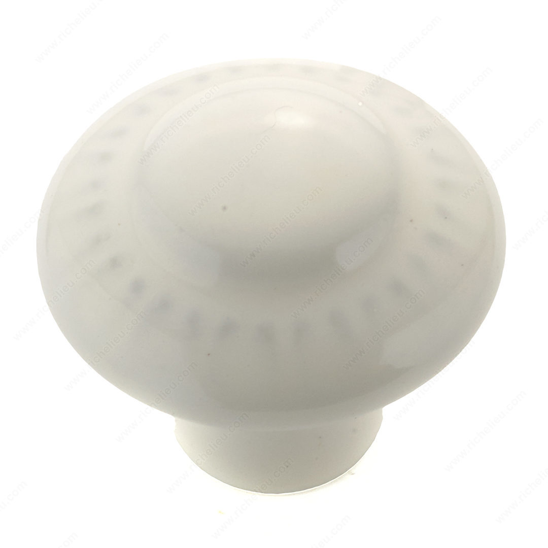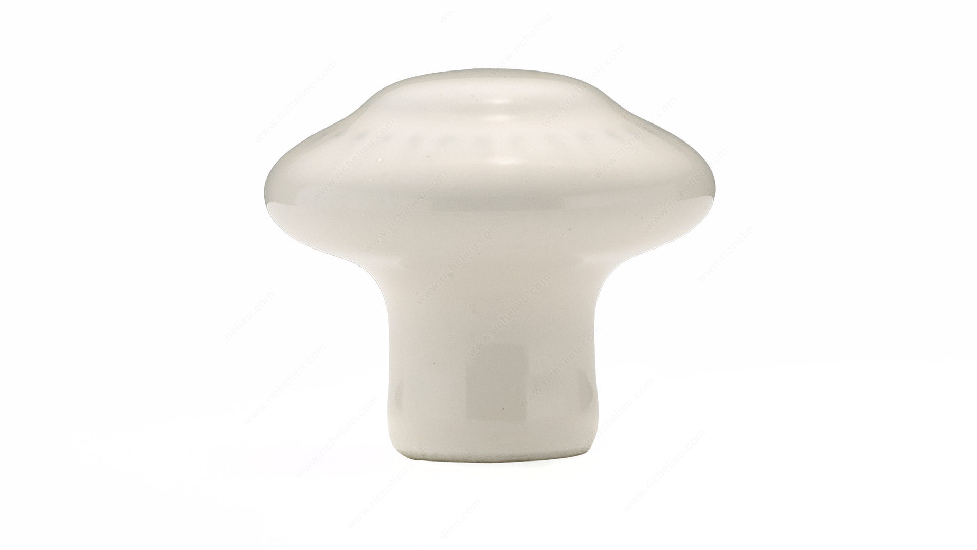 Richelieu BP132230 Traditional Ceramic Knob - 1322 enhances the character of your furniture and cabinetry with its classic mushroom shape and charming design. Crafted from durable ceramic, this knob features a raised center complemented by a textured border, making it an ideal choice for those seeking to infuse a touch of country charm into their traditional spaces. With an overall diameter of 1 3/8 inches and a projection of 1 3/16 inches, this knob is perfectly sized for comfortable grip and easy operation. Its elegant white finish adds a clean and timeless appeal, while the included 8/32 inch screw ensures effortless installation. Each knob is packaged in a convenient bag, making it simple to manage your project needs. The BP132230 is not just a functional addition; it embodies the style and sophistication that discerning homeowners and building professionals appreciate. Whether you’re updating a kitchen, bathroom, or any other cabinetry, this traditional ceramic knob will seamlessly blend with various interior designs. Trust Richelieu's commitment to quality and craftsmanship to elevate your space with this delightful hardware choice.
