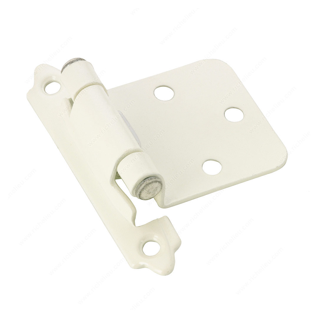 Richelieu BP13440 Semi-Concealed Self-Closing Hinge - 134 offers a perfect blend of functionality and aesthetic appeal, making it an ideal choice for a variety of applications, including kitchens, bathrooms, and furniture. This traditional surface hinge is designed with a semi-concealed style that enhances any décor while ensuring that your cabinets and doors close smoothly and securely. Crafted from durable steel, the hinge features an elegant almond finish, providing a subtle yet sophisticated touch. With overall dimensions of 2.76 inches in height, 1.86 inches in width, and a projection of 25/32 inches, it is compact yet robust enough to support the weight of your doors. The hinge is easy to install with a screw-on fixing type, and it comes packaged in sets of two, complete with included #5 screws for your convenience. Ideal for both residential and commercial projects, the Richelieu BP13440 hinge combines reliability with a sleek design, ensuring that your cabinetry functions seamlessly while maintaining a clean look. Whether you are updating your kitchen or enhancing furniture pieces, this self-closing hinge is a reliable solution that delivers quality and style.