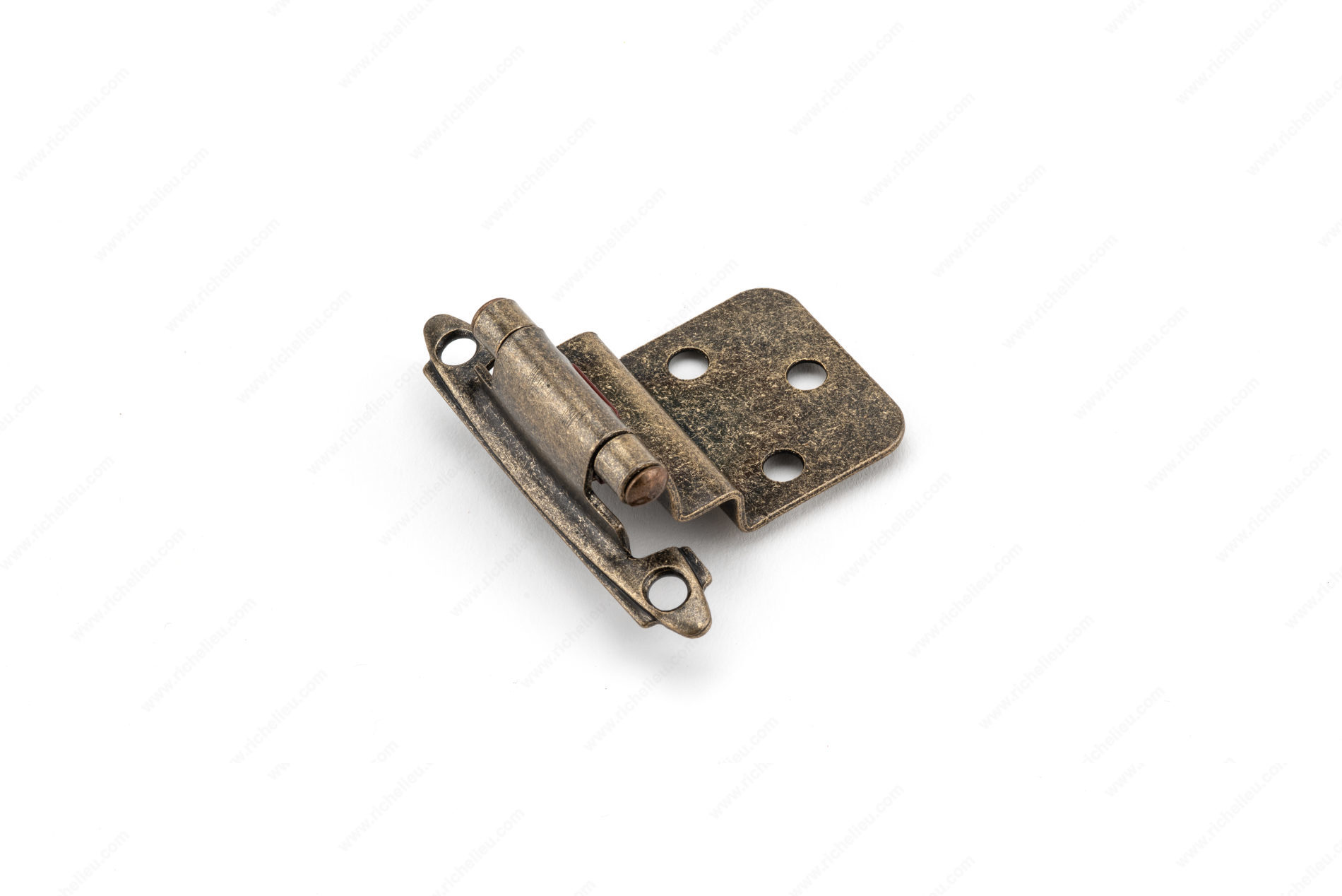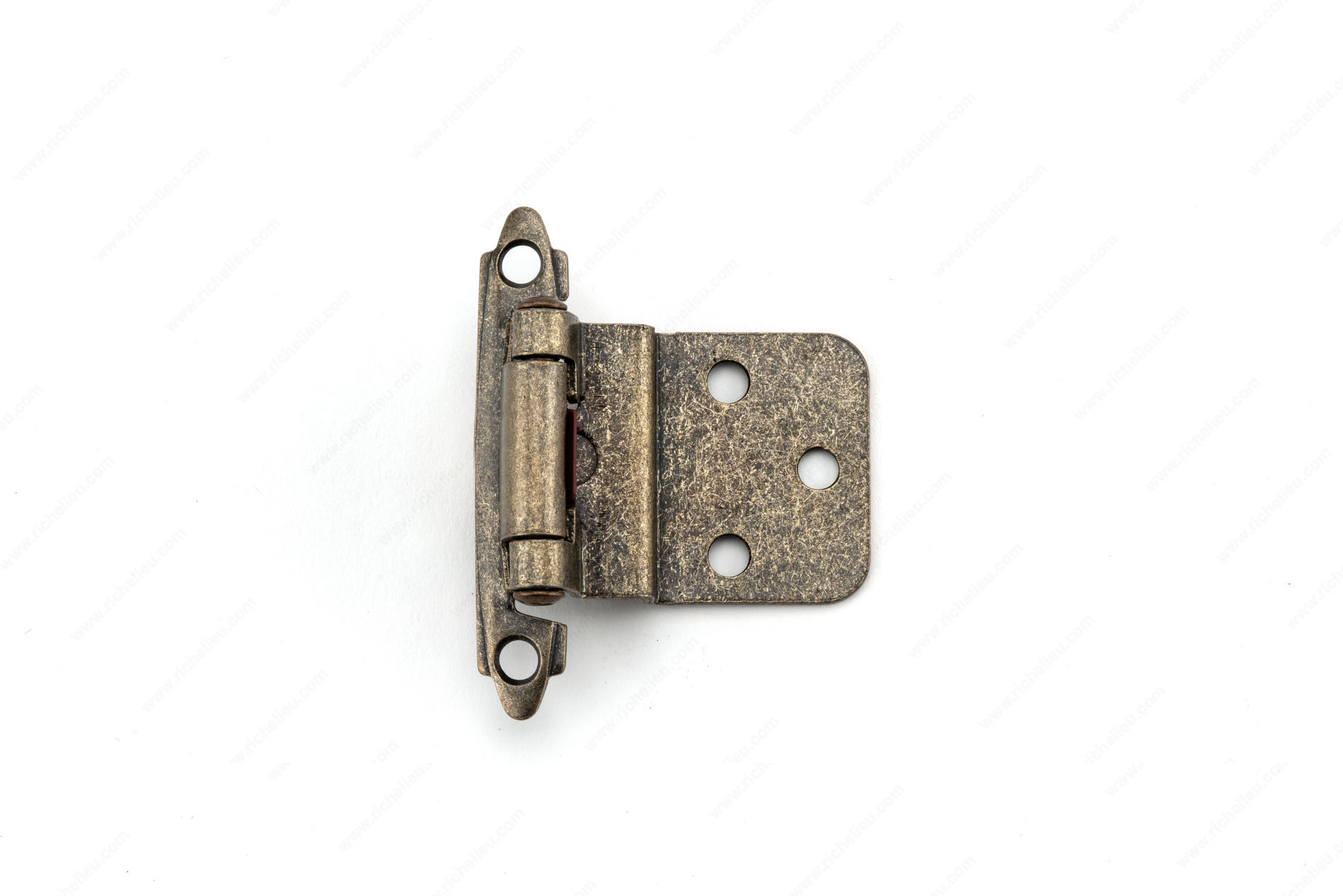 Richelieu BP138MAE Semi-Concealed Self-Closing Hinge - 138 is the perfect addition to elevate your project with its seamless integration and classic design. This semi-concealed face frame hinge is crafted from durable steel, ensuring longevity and reliability in various applications, including kitchens, bathrooms, and furniture pieces. With a height of 2 3/4 inches and a width of 2 5/32 inches, this hinge accommodates a 3/8 inch overlay, making it versatile for different installation needs. Its antique English finish (Finish Number: MAE) adds a touch of elegance, complementing a variety of decor styles, from traditional to contemporary. The hinge features a flat finial style, enhancing its aesthetic appeal while ensuring functionality. It is designed for screw-on fixing, and the necessary #5 screws are included for your convenience. With a projection of 1 1/32 inches, this hinge allows for smooth operation, self-closing gently to keep doors securely in place. Whether you’re a building professional or a knowledgeable homeowner, the Richelieu BP138MAE hinge combines style and functionality, making it an ideal choice for any project. Enjoy the ease of installation and the lasting quality that Richelieu products are known for.