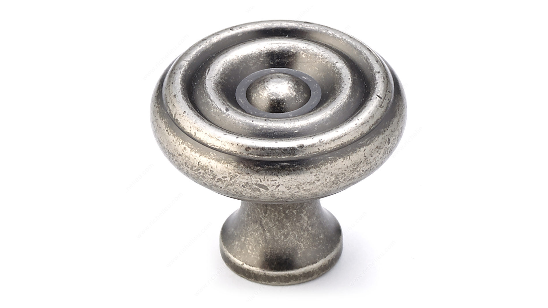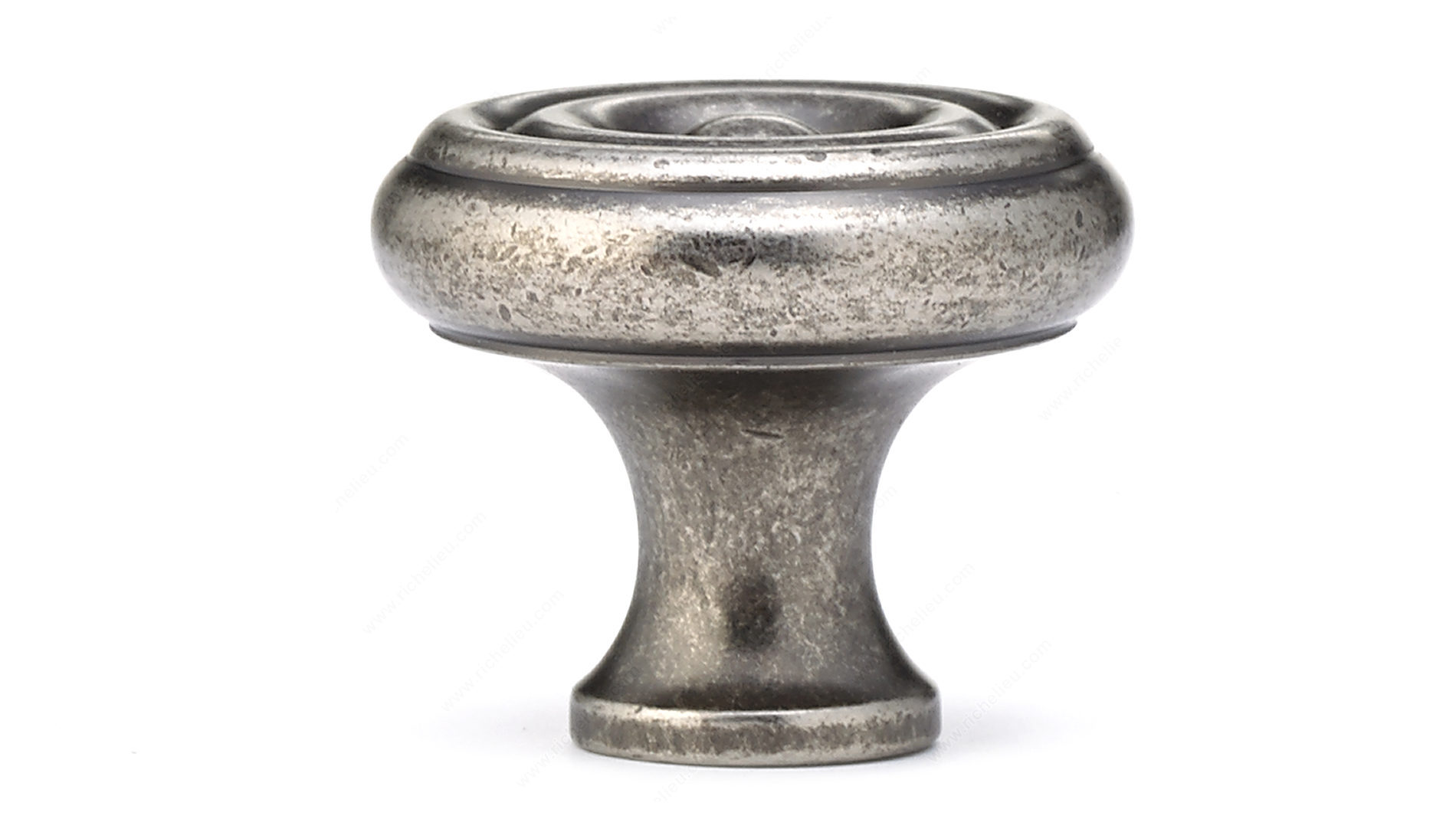 Richelieu BP1430142 Traditional Brass Knob - 1430 adds a touch of timeless elegance to your kitchen or bathroom décor. Crafted from high-quality brass, this round knob offers both durability and style, ensuring it can withstand daily use while enhancing the aesthetic of your space. With an overall diameter of 1 1/4 inches and a projection of 1 3/16 inches, it provides a comfortable grip that is easy to use. The knob features a classic pewter finish, which complements various color schemes and design styles, making it a versatile choice for any renovation or upgrade project. Its traditional design is perfect for those looking to infuse a sense of sophistication into their interiors. Included with the knob is an 8/32 inch screw, making installation a breeze. Whether you're replacing old hardware or starting a new project, the Richelieu BP1430142 knob is a practical and stylish solution. With its attractive gray and chrome color palette, this knob is sure to stand out while providing functionality. Elevate your cabinetry with this beautiful and enduring piece from Richelieu, designed for professionals and discerning homeowners alike.