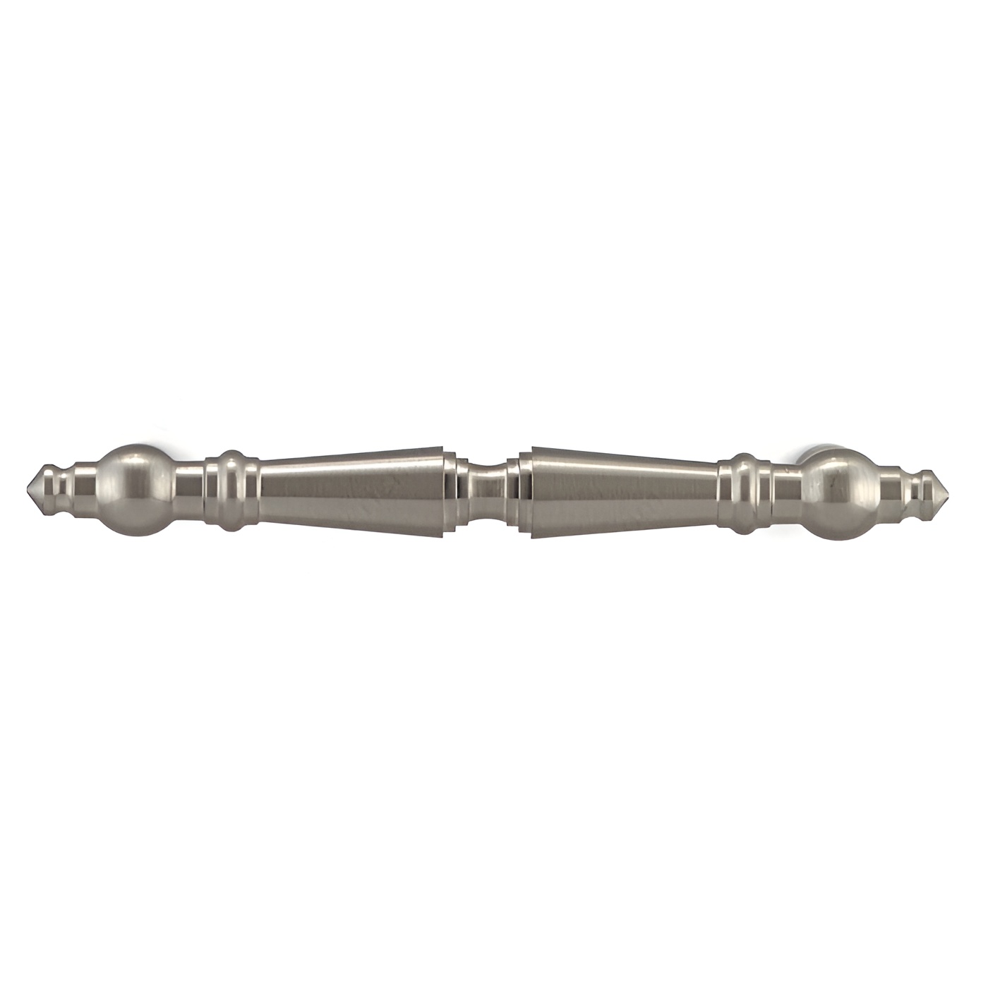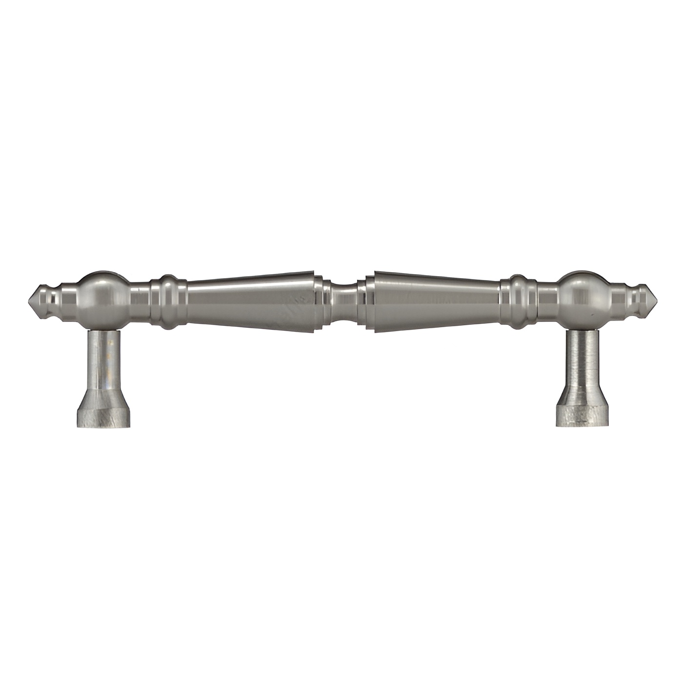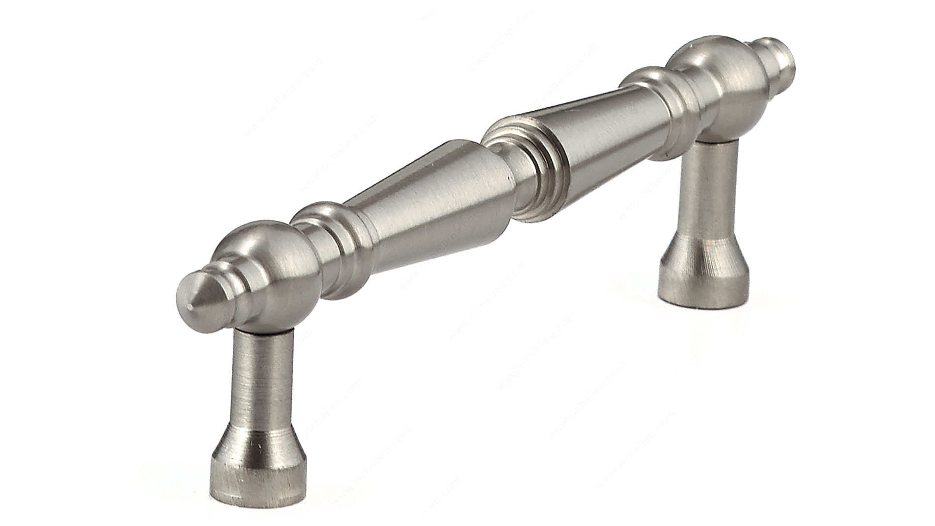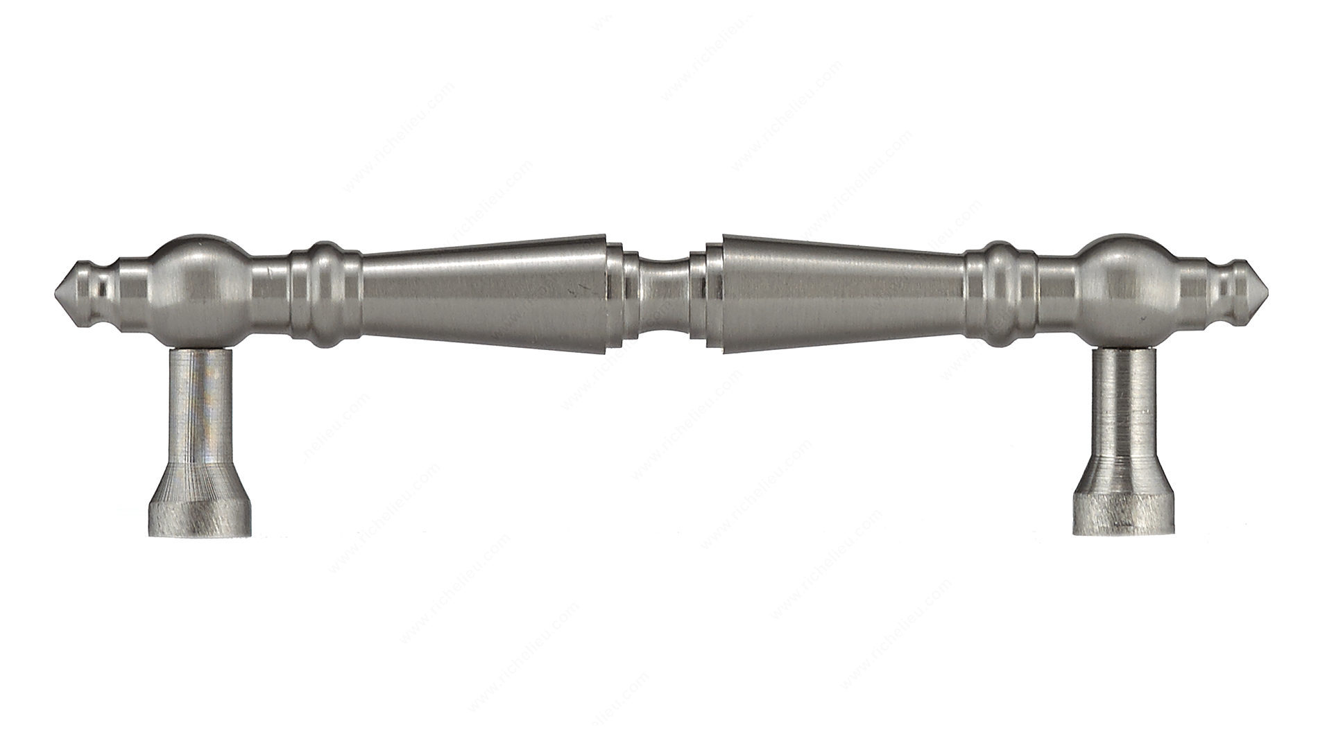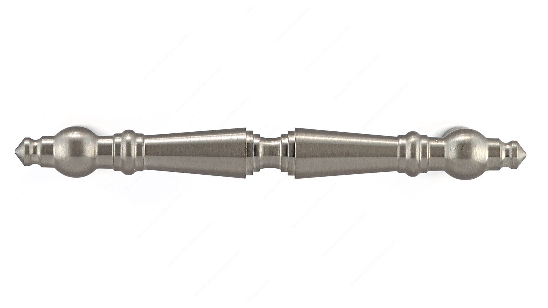 Richelieu BP1454195 Traditional Brass Pull - 145 is a stunning addition to any cabinetry or furniture piece, showcasing intricate decorative flourishes that embody a classic elegance. Crafted from high-quality brass, this pull not only exudes sophistication but also ensures durability for everyday use. Measuring 4 19/32 inches in overall length, with a center-to-center distance of 3 1/2 inches, this pull fits seamlessly into various design schemes. Its brushed nickel finish enhances its aesthetic appeal, blending beautifully with gray and chrome elements, making it a versatile choice for modern and traditional spaces alike. The pull's width measures 7/16 inches, and the projection stands at a comfortable 1 3/16 inches, providing a secure grip for users. Each pull comes with the necessary 8/32 inch screws for easy installation, allowing for a hassle-free upgrade to your cabinets or drawers. Designed in a traditional style, the Richelieu BP1454195 is perfect for homeowners and professionals looking to add a touch of refinement to their projects. Whether you're renovating a kitchen or updating furniture, this pull delivers both functionality and timeless elegance. Elevate your design with the classic charm of Richelieu.
