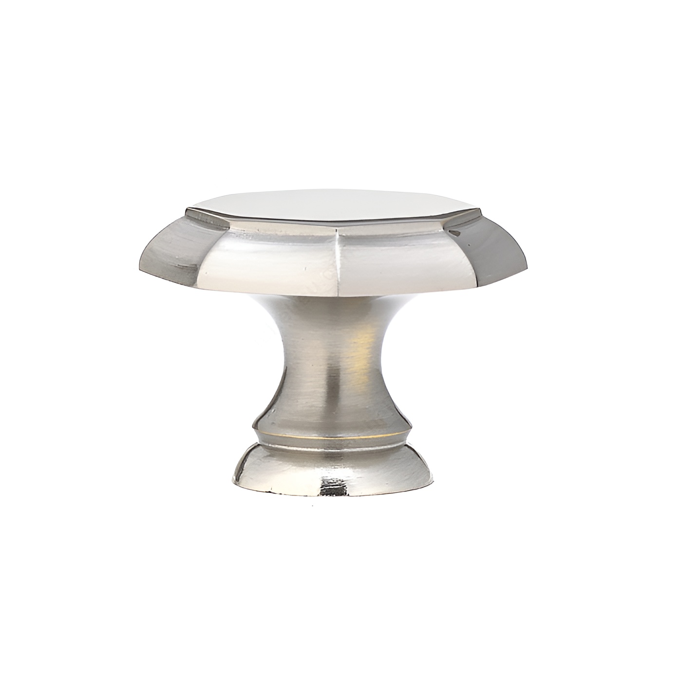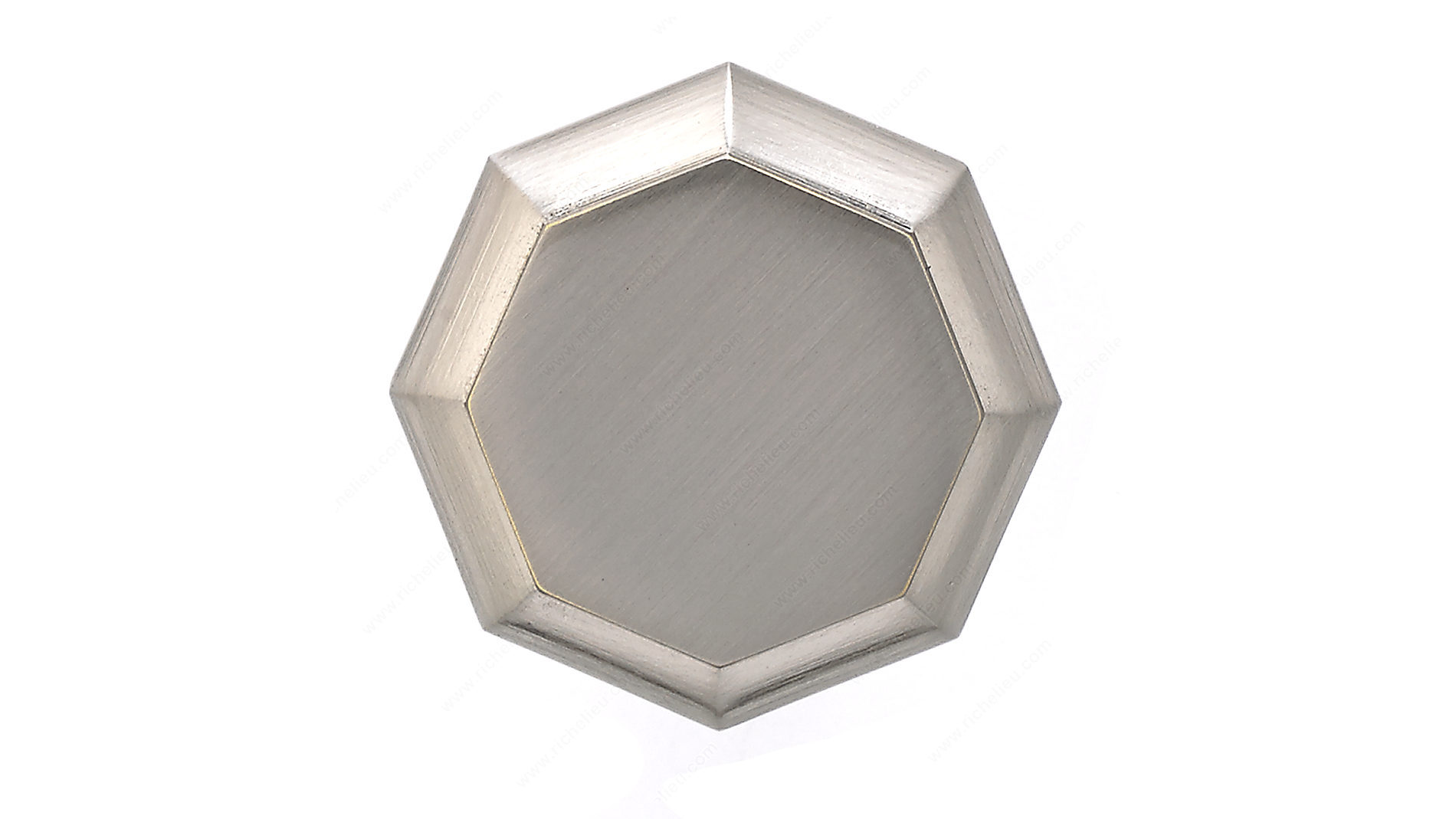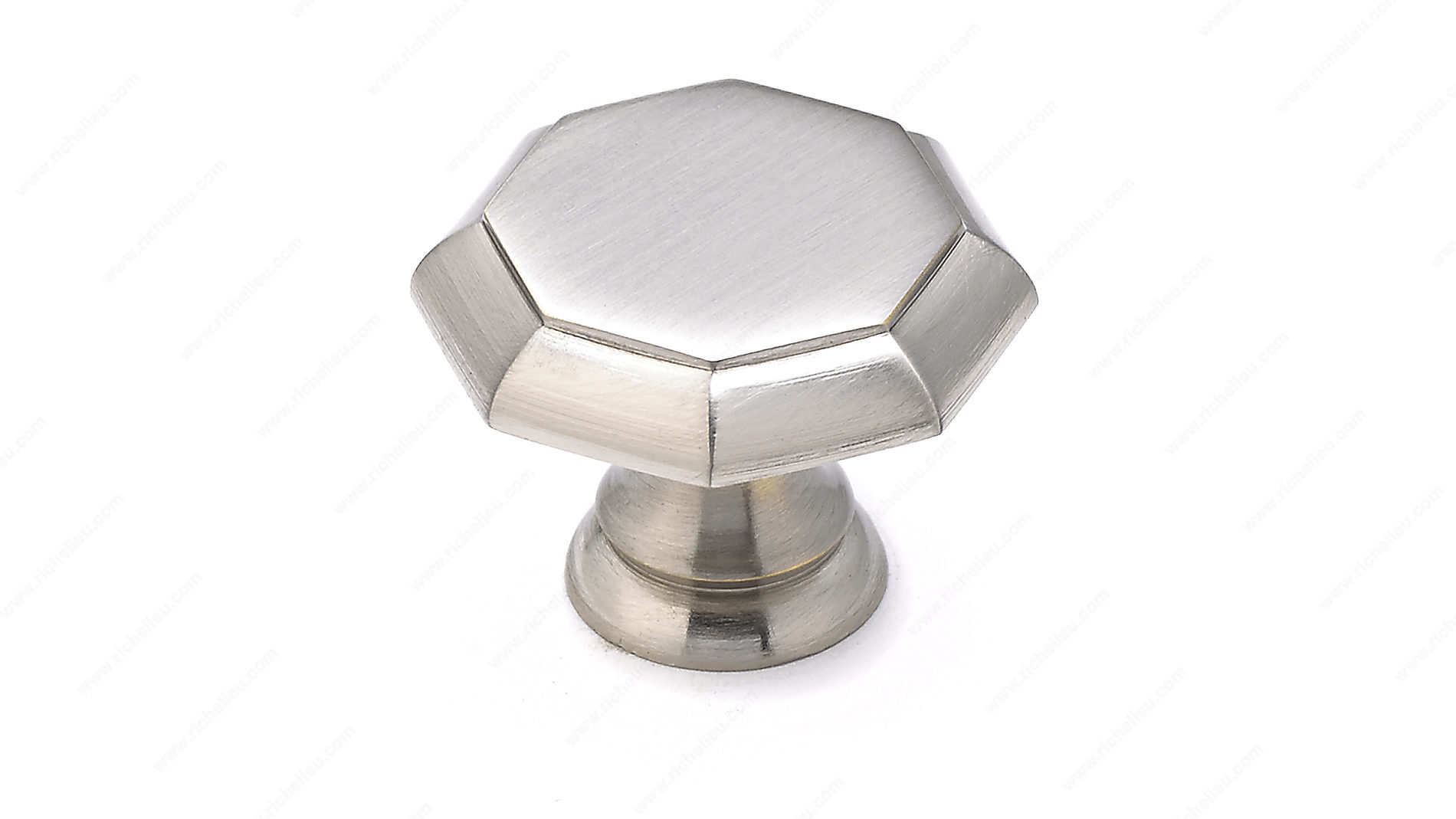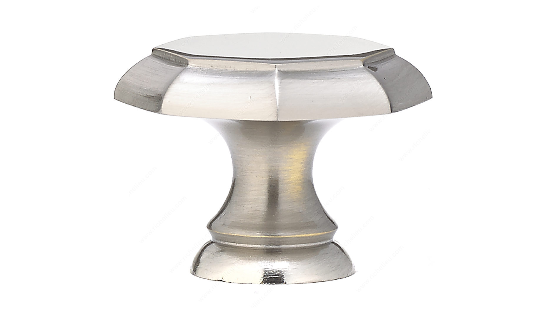 Richelieu BP14630195 Transitional Brass Knob - 146 offers a sophisticated solution for those seeking to enhance their kitchen or bathroom décor. This stylish octagon-shaped knob embodies a transitional design that seamlessly blends classic and contemporary styles, making it a versatile choice for various settings. Constructed from durable brass, this knob features a brushed nickel finish that adds a touch of elegance while ensuring long-lasting performance. With an overall diameter of 1 3/16 inches and a base diameter of 21/32 inch, it provides a comfortable grip. The projection of 7/8 inch allows for easy access, making it functional as well as attractive. Available in a chic gray and chrome color scheme, the Richelieu knob complements a variety of color palettes and design themes. Each knob comes with an 8/32 inch screw for easy installation, ensuring you can quickly update your space without hassle. Whether you are renovating your home or completing a new construction project, this transitional knob is an ideal choice that combines style and practicality. Enhance your cabinetry with the Richelieu BP14630195 Transitional Brass Knob, and enjoy the perfect blend of form and function.