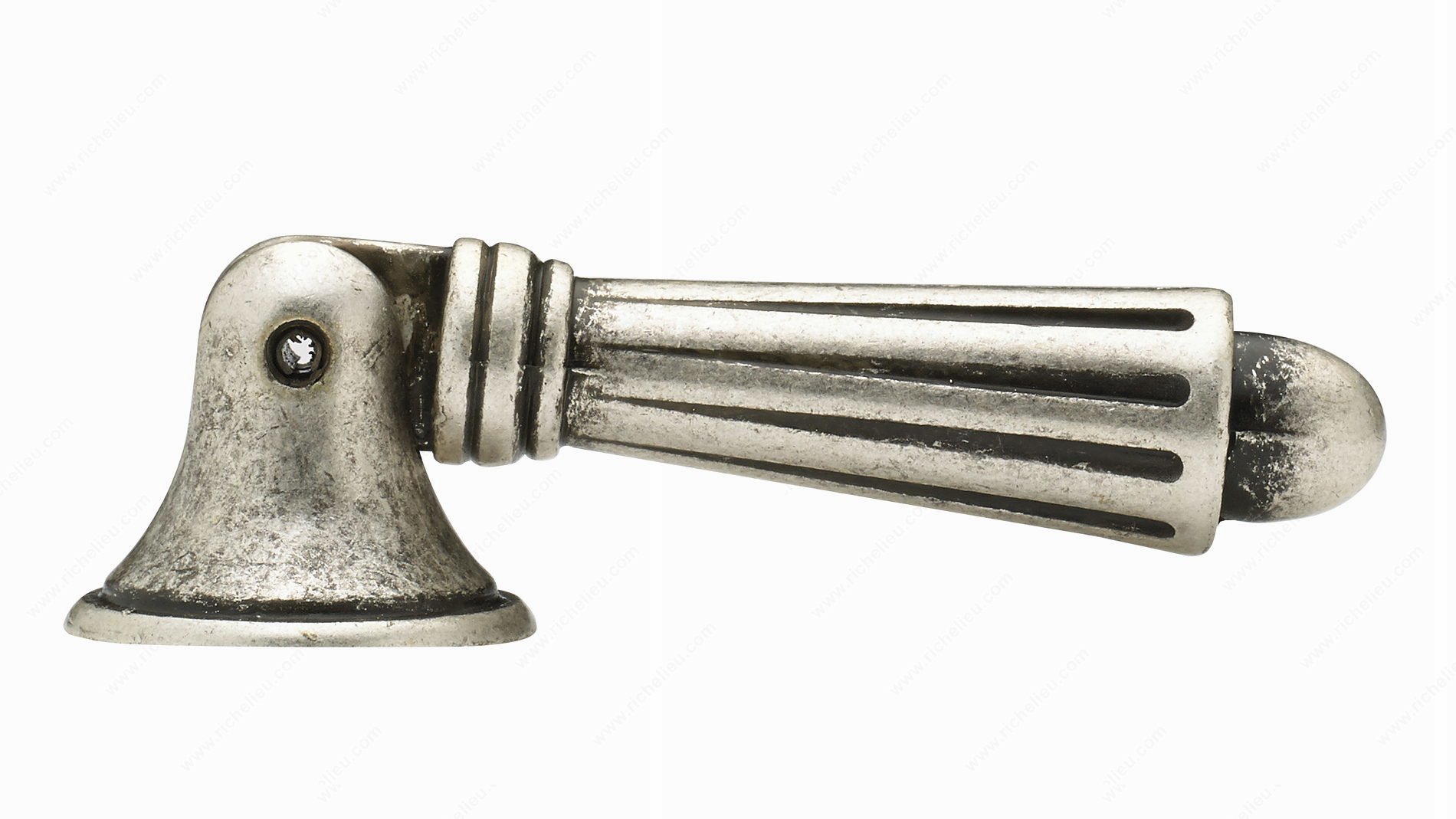 Richelieu BP15457139 Traditional Metal Pull - 1545 brings a timeless elegance to your cabinetry with its highly ornamented design. Crafted from durable metal, this pendant pull showcases a classic Art Deco style that enhances the aesthetic appeal of any furniture piece or cabinet. The old silver finish, paired with gray and chrome accents, adds a sophisticated touch, making it an excellent choice for both modern and traditional interiors. Measuring 2 1/4 inches in length, 25/32 inches in width, and projecting 23/32 inches, this pull is designed for comfortable handling while ensuring a secure grip. The model comes with M4 screws included, simplifying installation and providing a reliable fit. Its versatile design allows it to be seamlessly integrated into a variety of settings, from kitchens to living rooms. Ideal for building professionals and discerning homeowners, this pull from Richelieu is not just a functional hardware piece; it is a statement accessory that enhances the overall style of your space. Whether you're updating existing cabinetry or outfitting new installations, the Richelieu BP15457139 is a choice that embodies quality and craftsmanship.