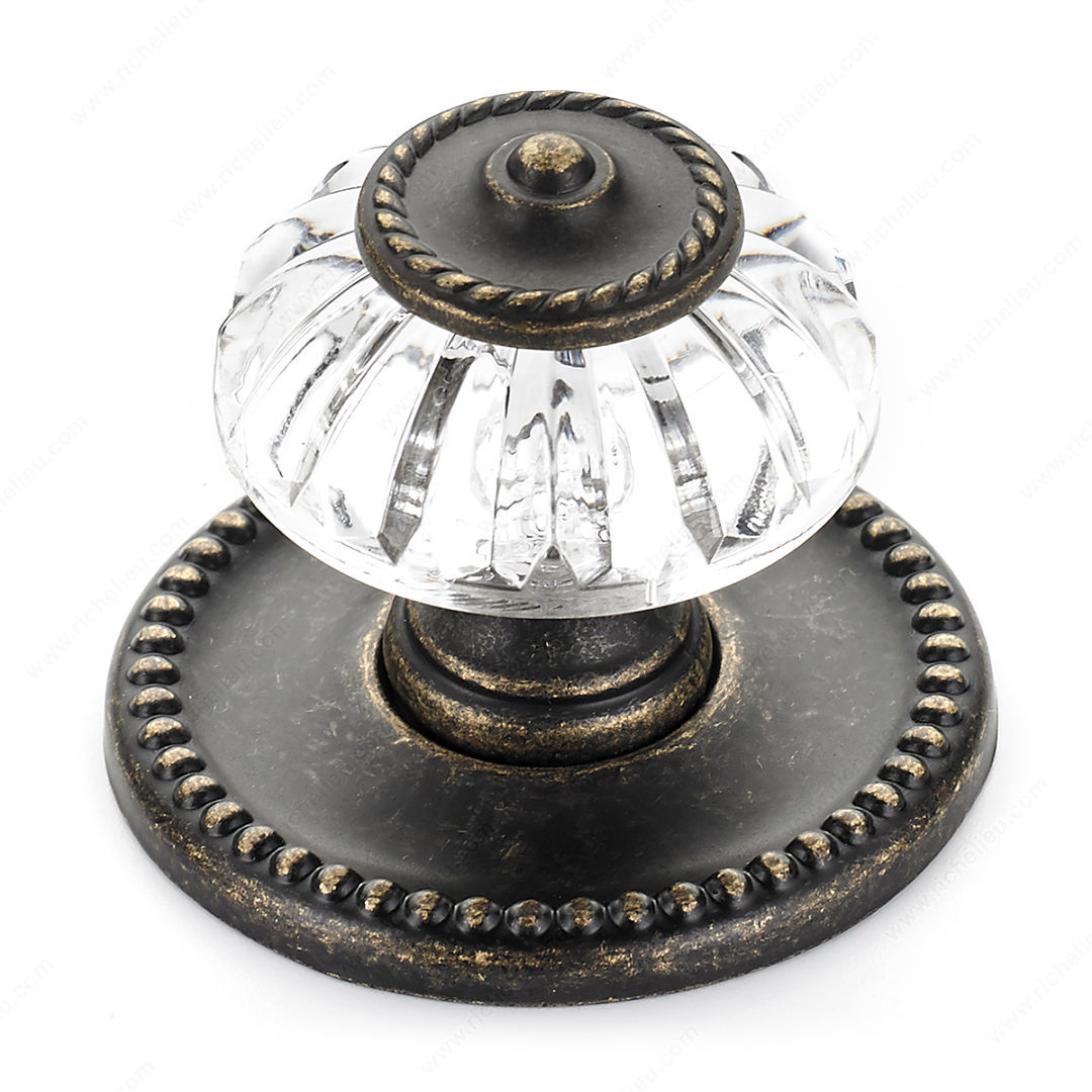 Richelieu BP16063244BB Eclectic Metal and Acrylic Knob - 1606 combines vintage charm with modern functionality, making it an ideal choice for your kitchen or bathroom cabinets. This elegant knob features a unique design that integrates a clear acrylic body with a detachable burnished brass metal back plate, providing both aesthetic appeal and practical use. With an overall diameter of 1 5/16 inches and a base diameter of 1 25/32 inches, this knob is perfectly sized for a variety of cabinet styles. The projection of 1 3/8 inches ensures a comfortable grip, while the eclectic style adds a touch of personality to your space. Crafted from durable metal and acrylic, the knob showcases a beautiful combination of yellow and brass hues with a clear finish, seamlessly fitting into both classic and contemporary interiors. Each knob comes with an included 8/32 inch screw for easy installation. Whether you are updating your cabinetry or embarking on a complete renovation, the Richelieu BP16063244BB knob is a stylish and functional choice that enhances the overall look of your home. Ideal for professionals and discerning homeowners alike, this knob is sure to impress.