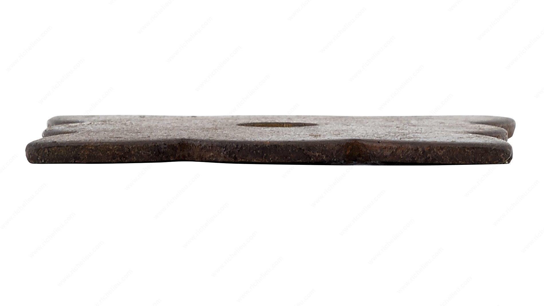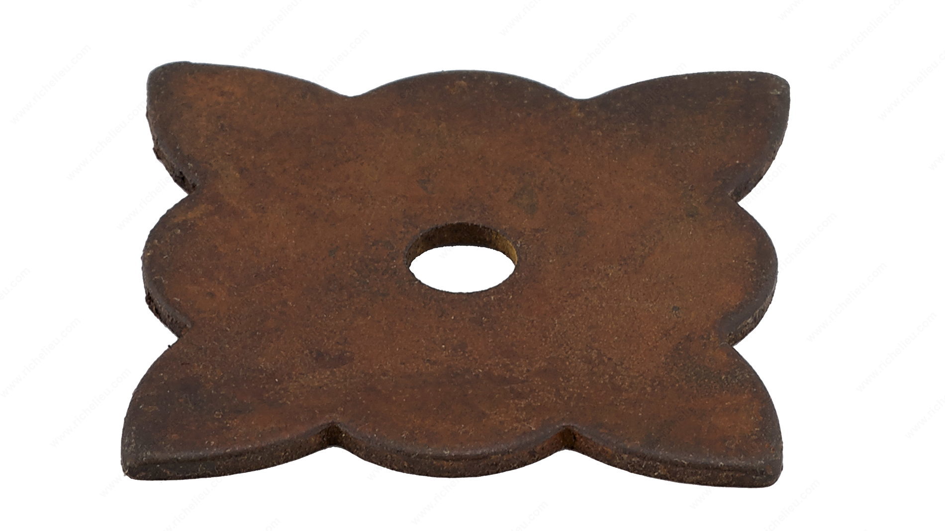 Richelieu BP213635800 Traditional Forged Iron Rosette for Knob - 213 offers a stunning blend of elegance and rustic charm, perfect for enhancing the aesthetic of your cabinetry and drawers. This traditional flower-shaped backplate is crafted from durable forged iron, ensuring longevity and resilience in any setting. With a rich rust finish, it adds warmth and character to your home while seamlessly complementing a variety of knobs. Measuring 1 3/8 inches in length and width, the backplate features a subtle projection of just 1/16 inch, making it an unobtrusive yet impactful addition to your décor. The scalloped shape not only accentuates the knob but also draws attention to the craftsmanship of your furniture. Designed for traditional pulls and knobs, this decorative backplate is an ideal choice for those looking to achieve a cohesive and timeless look in their spaces. Please note that screws or nails are not included, allowing for customization based on your specific installation needs. The Richelieu BP213635800 is shipped conveniently via UPS, making it easy to incorporate this beautiful element into your next project. Transform your interiors with this exquisite backplate that embodies both style and functionality.