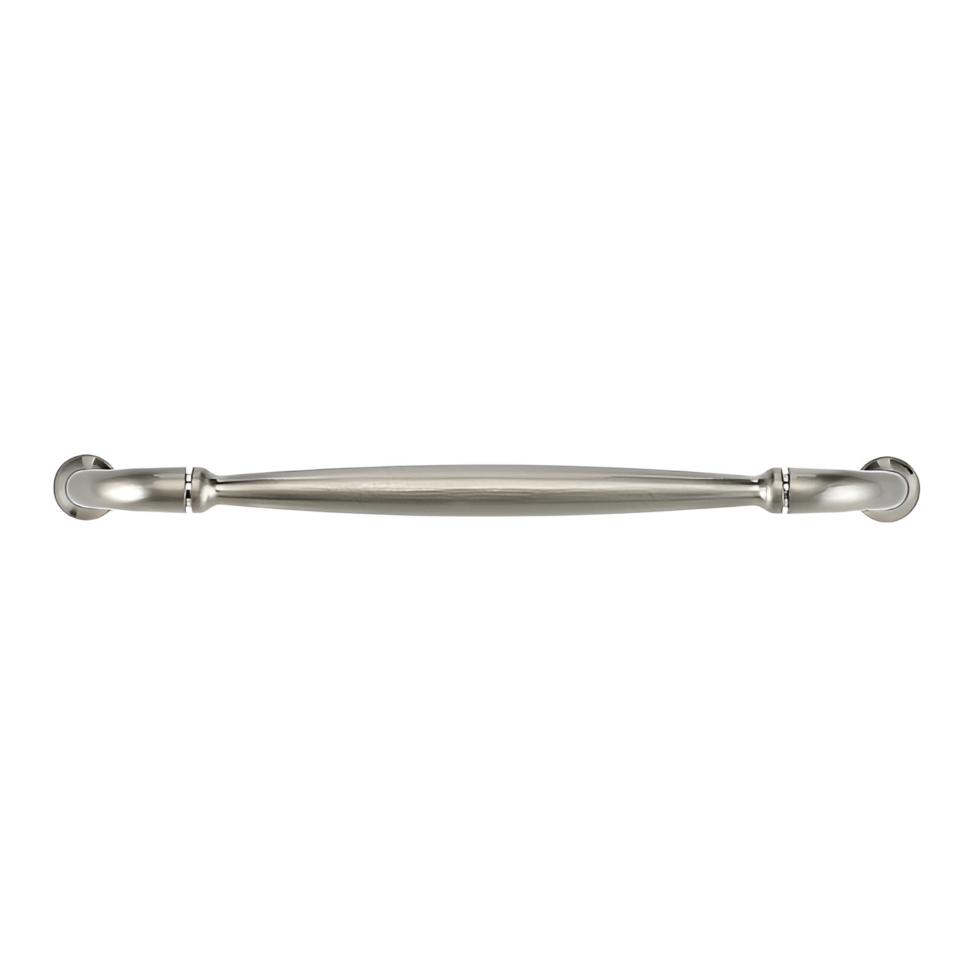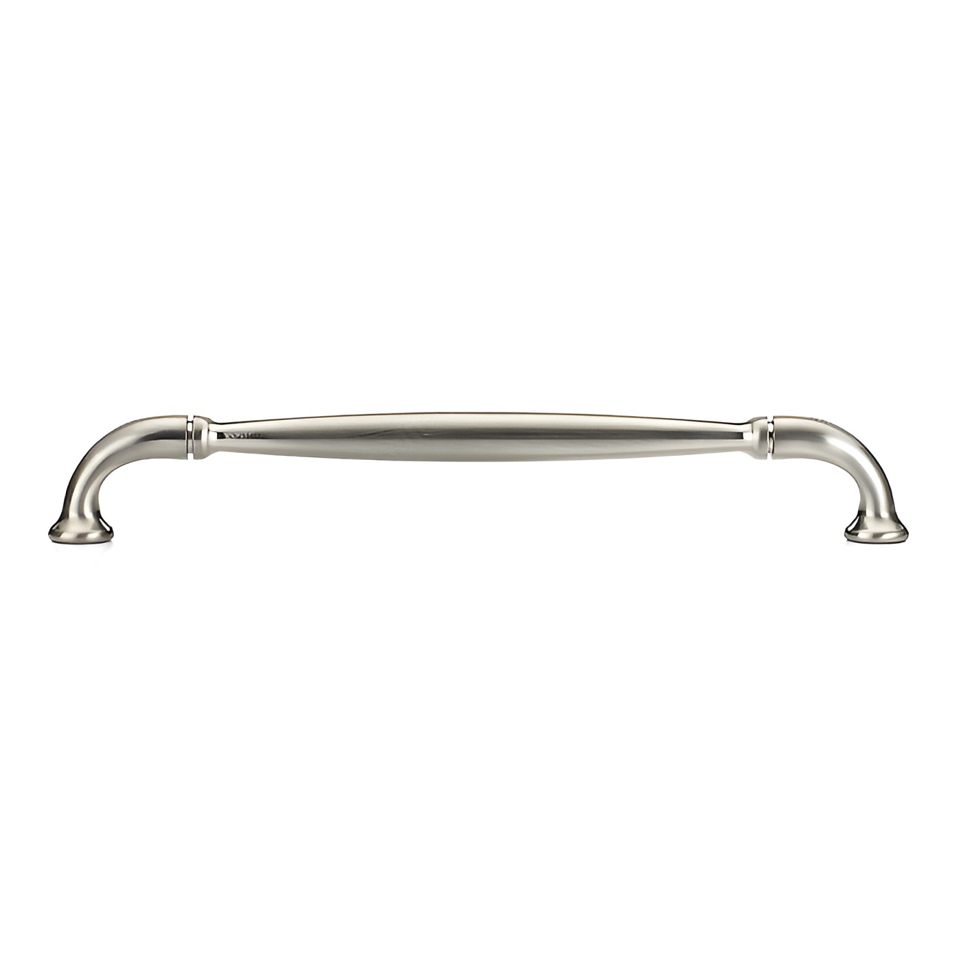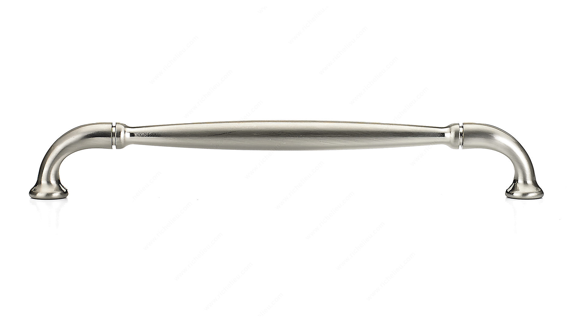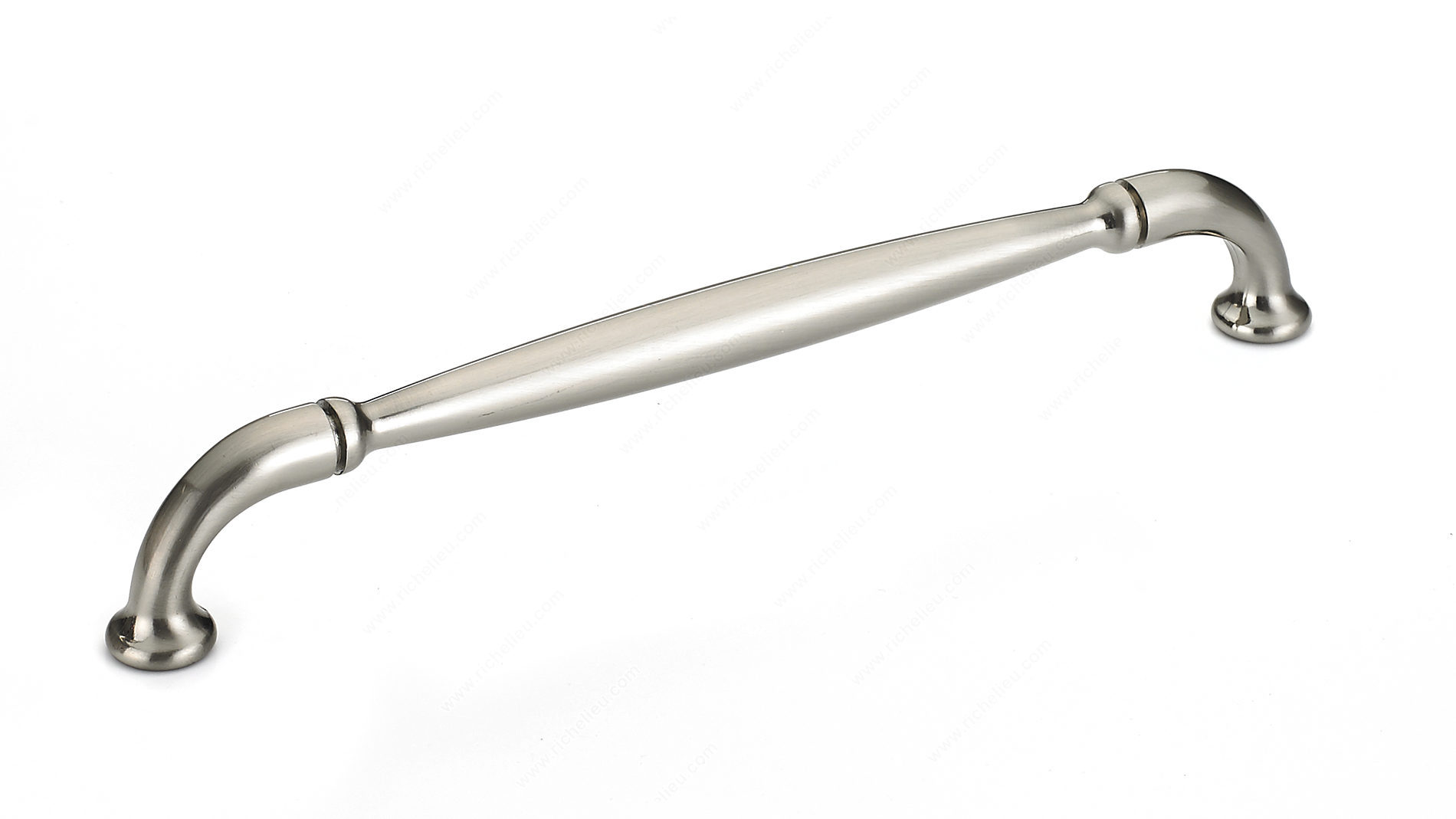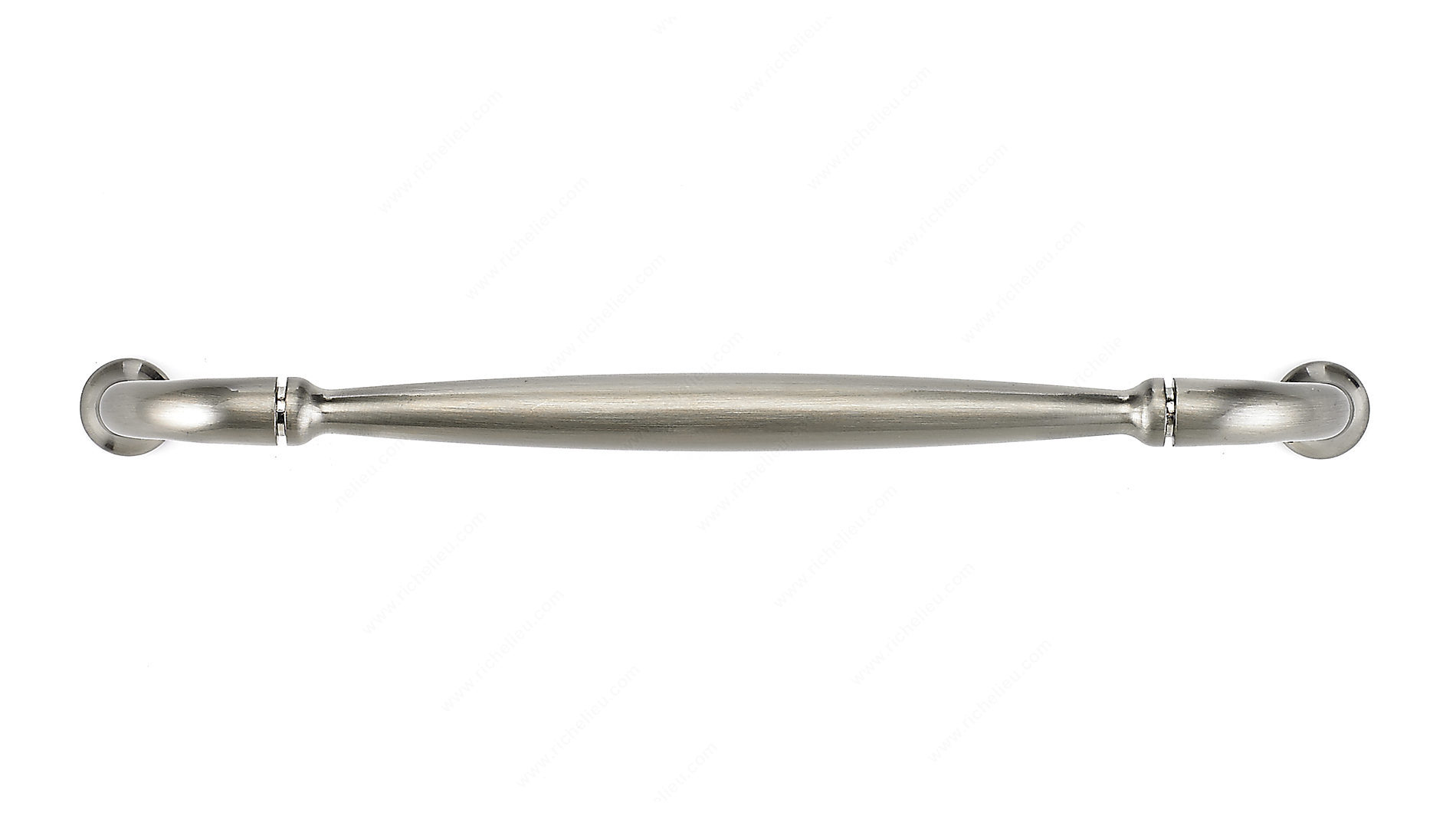 Richelieu BP23737192195 Traditional Metal Pull - 237 exudes timeless elegance, making it an ideal choice for enhancing any decor. Crafted from durable zamak, this classic metal pull features a delicately arched design that culminates in sturdy flared ends, seamlessly blending style with functionality. Its brushed nickel finish, identified by finish number 195, offers a sophisticated gray and chrome palette that complements various color schemes. With an overall length of 8 9/32 inches and a center-to-center measurement of 7 9/16 inches, this pull provides both comfort and convenience in operation. The width measures 9/16 inches, while the projection of 1 3/8 inches ensures a comfortable grip. Designed with a traditional aesthetic in mind, this pull is perfect for cabinets, drawers, and furniture, adding a refined touch to your space. Each pull comes with an 8/32 inch screw included, facilitating easy installation. Whether you are upgrading your kitchen hardware or refreshing furniture pieces, the Richelieu Traditional Metal Pull is a versatile and stylish solution that stands the test of time. Designed for professionals and discerning homeowners alike, it promises to elevate your projects with its classic charm and robust construction.