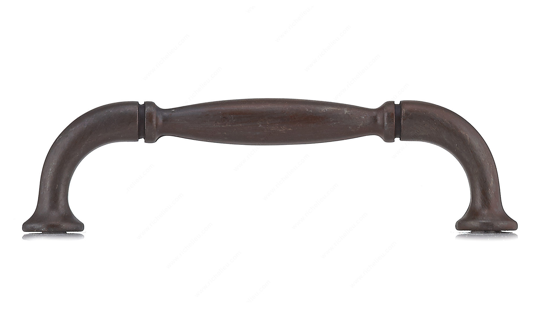 Richelieu BP2373796801 Traditional Metal Pull - 237 offers a classic touch to your cabinetry with its elegantly arched handle and sturdy flared ends. This pull is an ideal choice for those seeking to enhance their décor with tasteful embellishments, perfectly blending form and function. Crafted from durable zamak, this metal pull features a rustic finish that adds warmth and character to any space. With a center-to-center measurement of 3 25/32 inches, it is designed for easy installation and fits seamlessly into traditional or country-style settings. The overall dimensions are 4 11/32 inches in length, 9/16 inches in width, and a projection of 1 3/16 inches, making it a practical choice for various applications. The pull is available in a rich color palette of red, rose, and rust, ensuring it complements a wide range of cabinetry finishes. Included with the pull are 8/32 inch screws, simplifying the installation process. Whether you're upgrading your kitchen, bathroom, or furniture, the Richelieu BP2373796801 brings a sophisticated yet timeless appeal that enhances your home’s aesthetic while offering reliable functionality. Transform your space with this exquisite traditional pull that speaks to quality and craftsmanship.