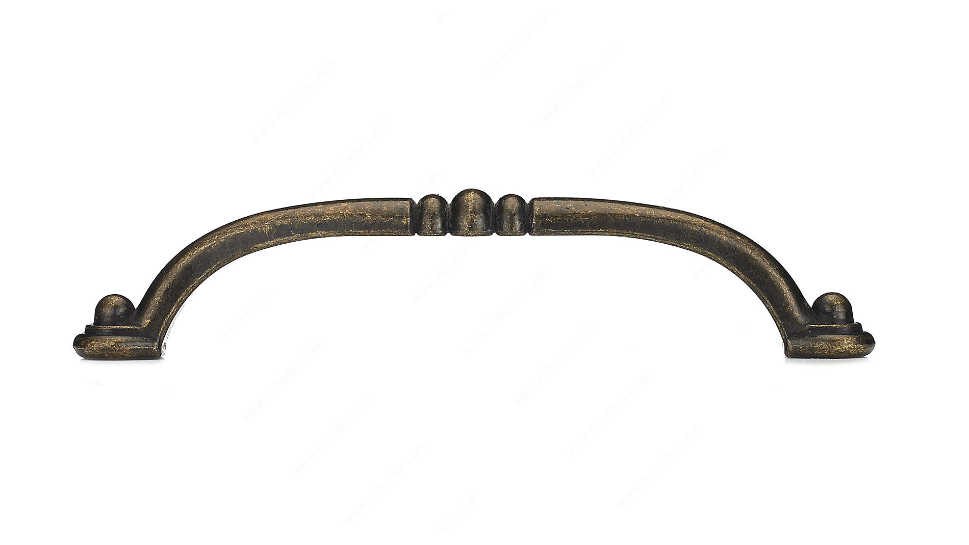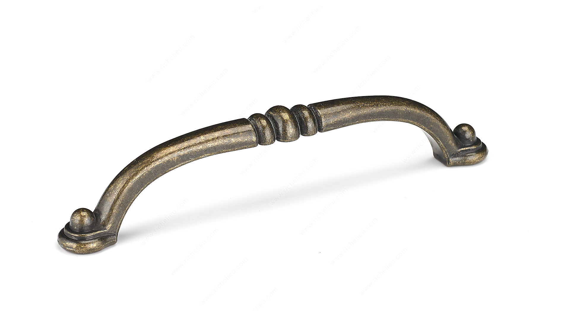 Richelieu BP23738128BB Traditional Metal Pull - 2373 offers a timeless touch to any kitchen or bathroom. Crafted from durable metal, this classic pull features a delicate design that highlights a rustic, yet subtle center detail and elegant ends. The burnished brass finish adds warmth and sophistication, seamlessly blending with a variety of décor styles. With an overall length of 5 21/32 inches and a center-to-center measurement of 5 1/32 inches, this pull is perfectly sized for cabinets and drawers. The projection measures 1 3/16 inches, ensuring a comfortable grip while maintaining a sleek profile. Its width of 9/16 inches provides a balanced appearance that complements traditional designs. Each pull comes with 8/32 inch screws included for easy installation, making it a convenient choice for both building professionals and homeowners looking to refresh their spaces. The yellow and brass color scheme adds a charming contrast that enhances any cabinetry. Whether you are updating your kitchen or bathroom, the Richelieu BP23738128BB Traditional Metal Pull - 2373 is an ideal choice for those seeking elegance and functionality in their hardware selections. Elevate your interior with this exquisite piece that combines classic appeal with modern quality.