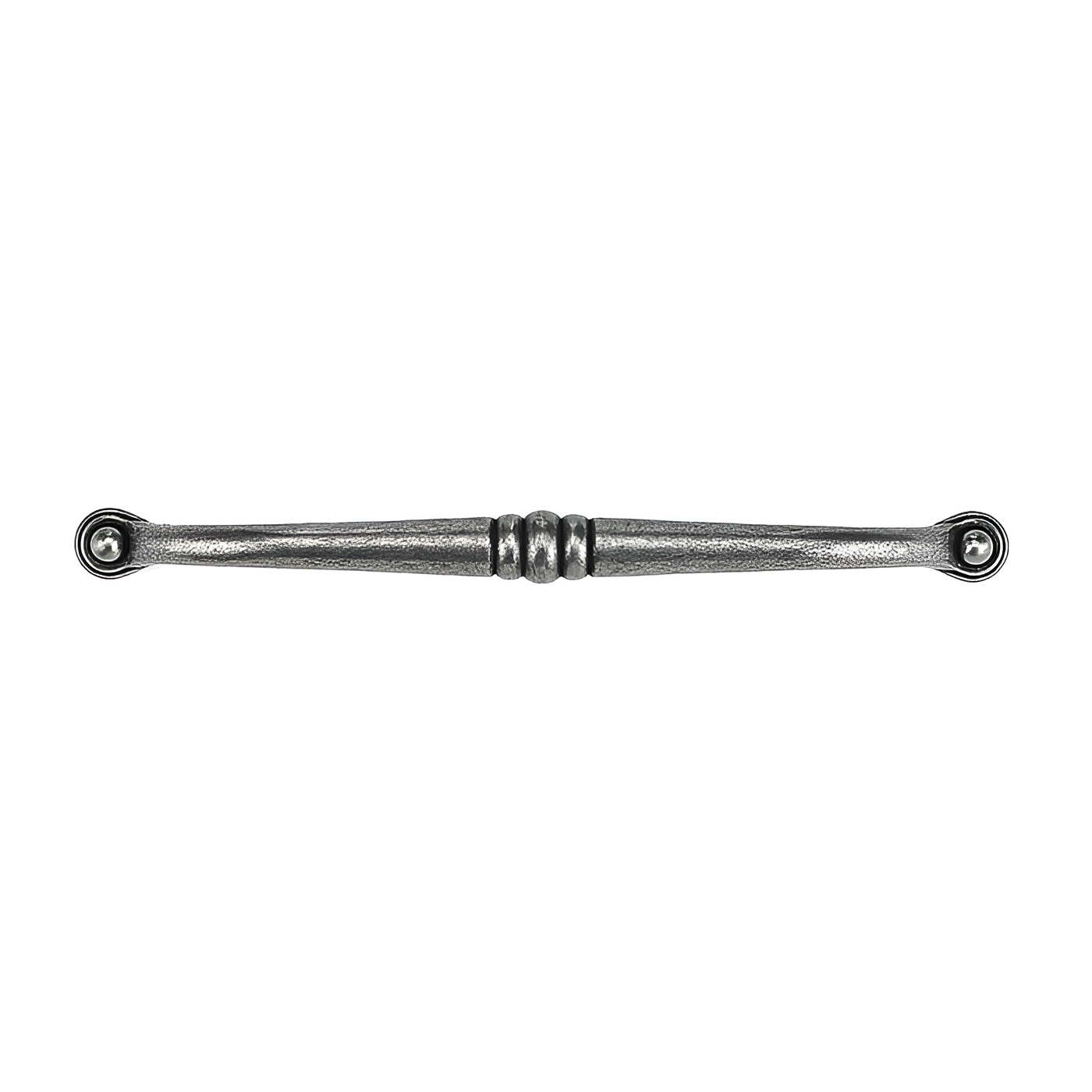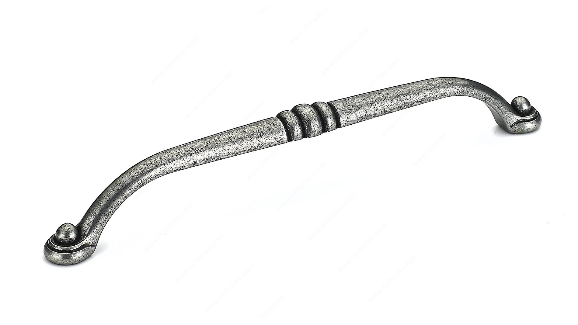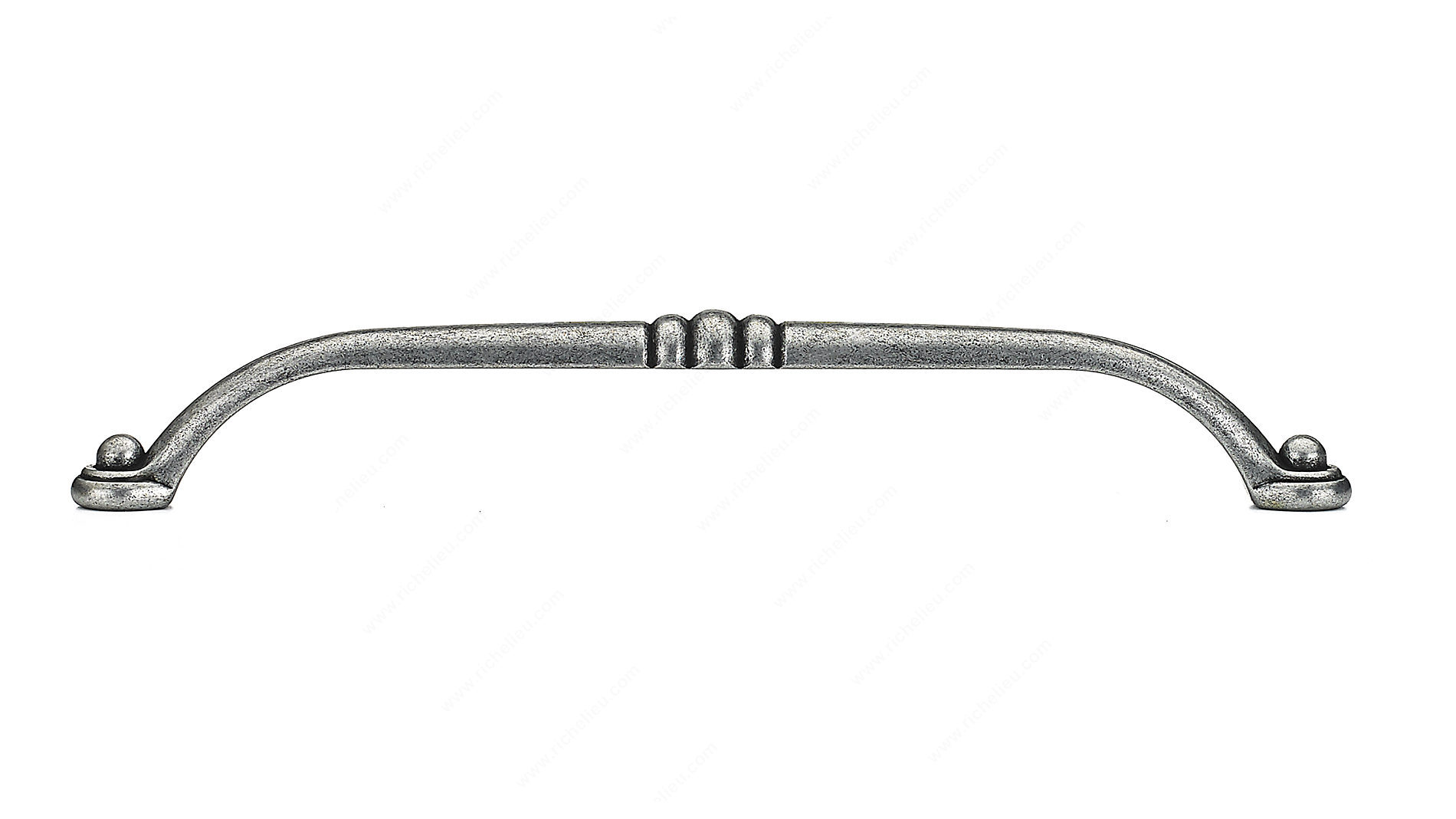 Richelieu BP23738192907 Traditional Metal Pull - 2373 showcases a classic design that elegantly enhances the aesthetic of both kitchens and bathrooms. This metal pull features a delicate design with a rustic yet unobtrusive center detail, making it a versatile choice for various décor styles. Crafted from high-quality metal, it combines durability with a refined look, highlighted by its wrought iron finish in a sophisticated gray and chrome color scheme. With an overall length of 8 3/16 inches and a center-to-center measurement of 7 9/16 inches, this pull is perfectly sized to provide a comfortable grip. The projection of 1 5/16 inches ensures ease of use, while the width of 9/16 inches offers a sleek profile. Each pull comes with 8/32 inch screws included for easy installation. Ideal for traditional interiors, the Richelieu BP23738192907 adds a touch of elegance and functionality to cabinetry and furniture. Whether you’re upgrading your kitchen or refreshing your bathroom, this traditional metal pull is an excellent choice that blends style and practicality seamlessly. Choose Richelieu for exceptional quality and timeless design that stands the test of time.
