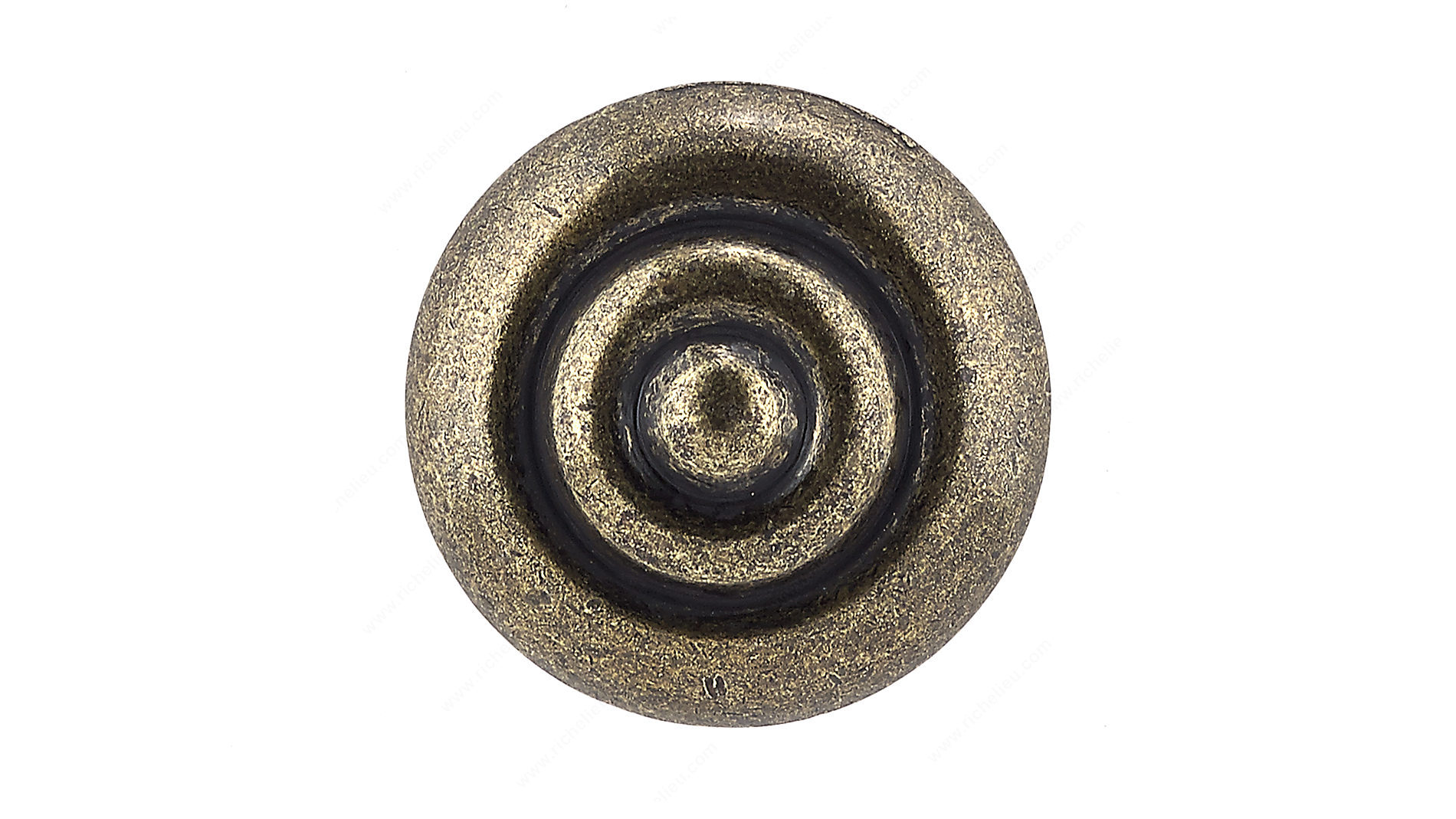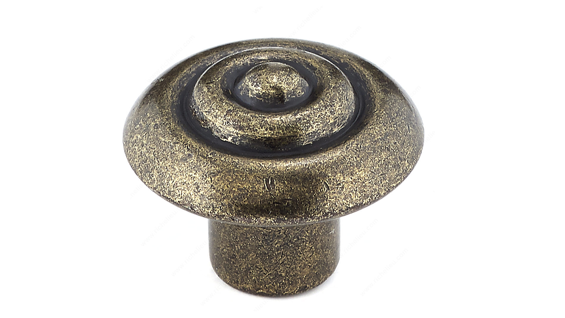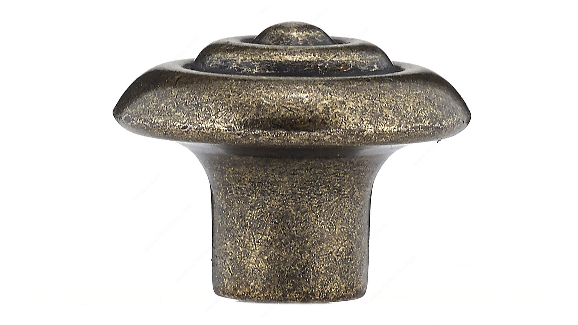 Richelieu BP2391132BB Traditional Metal Knob - 2391 seamlessly blends style and functionality, making it an ideal addition to classic kitchen or bathroom décor. This utility knob features a distinctive design characterized by three molded concentric rings, perfect for those who appreciate timeless elegance in their spaces. Crafted from durable metal, the knob showcases a burnished brass finish that not only enhances its aesthetic appeal but also ensures longevity and resilience in high-traffic areas. With an overall diameter of 1 1/4 inches and a projection of 15/16 inch, this knob is designed for ease of use, providing a comfortable grip for everyday functionality. The knob comes in a striking yellow and brass color combination, adding a touch of warmth and sophistication to cabinets and drawers. Installation is straightforward, as an M4 screw is included for your convenience. Whether you're updating your home or focused on a new build, the Richelieu BP2391132BB knob is a versatile choice that elevates the look of any space. Ship via UPS for quick and reliable delivery, ensuring you can enjoy your new hardware in no time. Choose this knob to enhance your design vision with quality craftsmanship and timeless style.