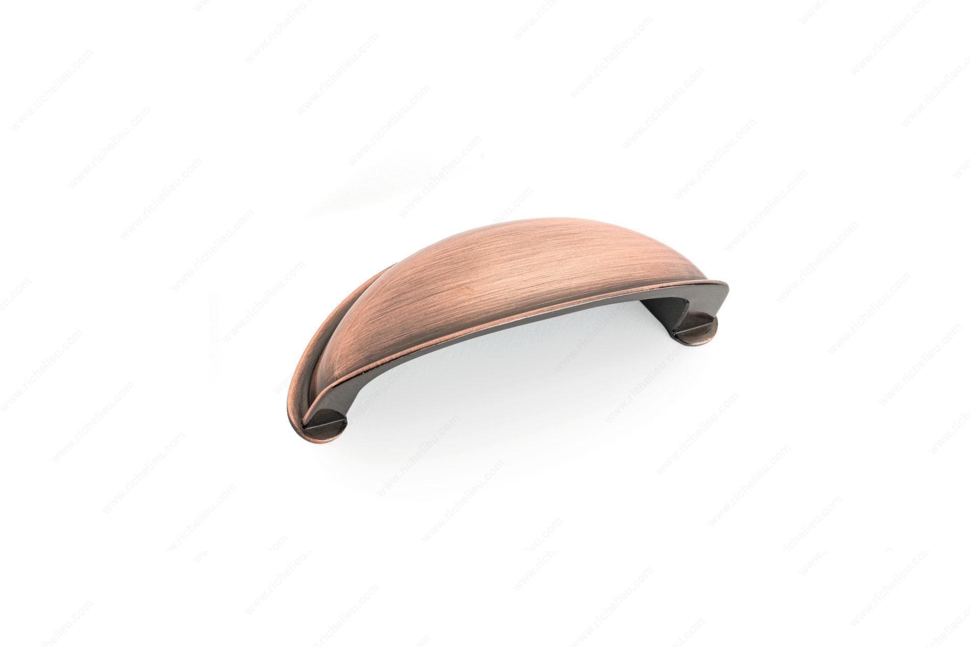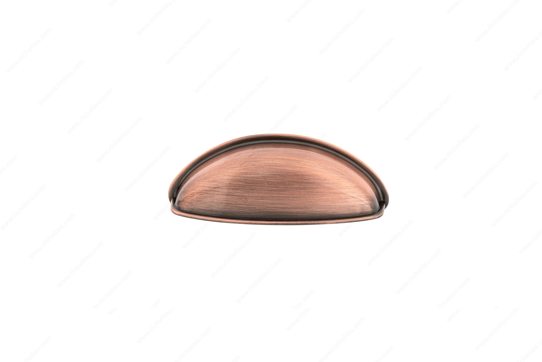Richelieu BP239164194 Traditional Metal Pull - 2391 offers a classic and elegant solution for enhancing your cabinetry. This traditional metal cup pull seamlessly integrates with a variety of home décors, making it an ideal choice for both modern and vintage-inspired designs. Crafted from durable zamak, this pull features an antique copper finish that adds a touch of sophistication and warmth to any setting. Measuring 3 3/32 inches in length, with a width of 7/8 inch and a projection of 29/32 inch, this pull is designed for comfortable grip and ease of use. The center-to-center measurement of 2 17/32 inches ensures compatibility with a range of cabinet styles. Available in a rich palette of red, rose, and rust colors, it allows for personalization to fit your unique aesthetic. Each pull comes with the necessary 8/32 inch screws for installation, making it a hassle-free addition to your project. With its discreet yet striking design, the Richelieu BP239164194 Traditional Metal Pull is perfect for kitchen cabinets, furniture, and any space needing a refined finishing touch. Elevate your interiors with this timeless piece that embodies quality and craftsmanship.