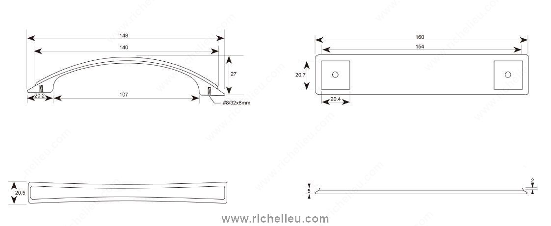 Richelieu BP26987195 Transitional Metal Pull - 2699 is an exquisite addition to your kitchen or bathroom furniture, designed to elevate the aesthetic of cabinets with its elegant beveled backplate. This transitional bow pull features a sleek brushed nickel finish that complements a variety of design styles while providing a modern touch. With a center-to-center measurement of 5 1/32 inches, the pull is perfectly sized for most cabinet doors and drawers, ensuring ease of use and comfort. The overall dimensions measure 6 5/16 inches in length, 13/16 inches in width, and it projects 1 7/32 inches from the surface, making it a substantial yet refined choice for your interiors. Constructed from durable zamak, this pull promises longevity and reliability in high-use areas. The rich gray and chrome color combination adds a sophisticated look, making it an ideal choice for those looking to enhance their spaces. Each pull comes with an included 8/32 inch screw for easy installation. Richelieu BP26987195 is not only a functional hardware piece but also a statement of style, perfect for any renovation or upgrade project. Its transitional design ensures that it will blend seamlessly with existing decor while making a noticeable impact.
