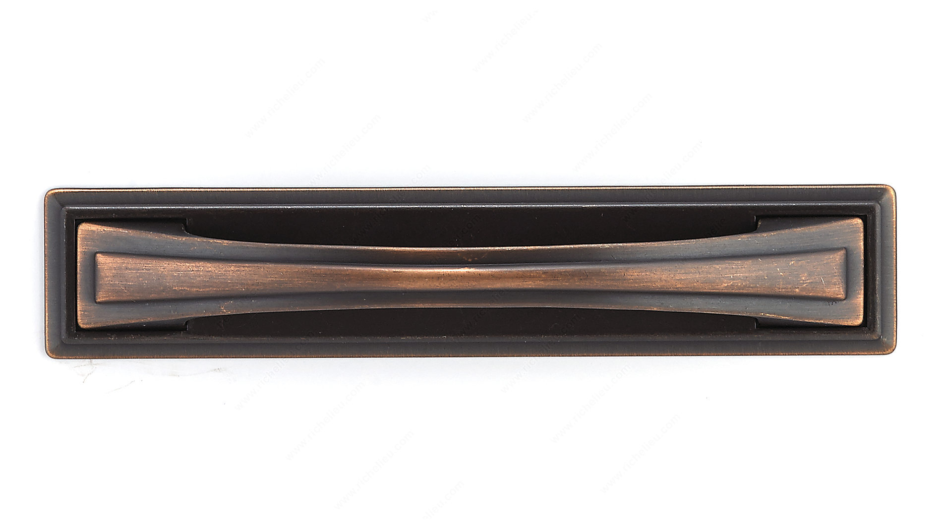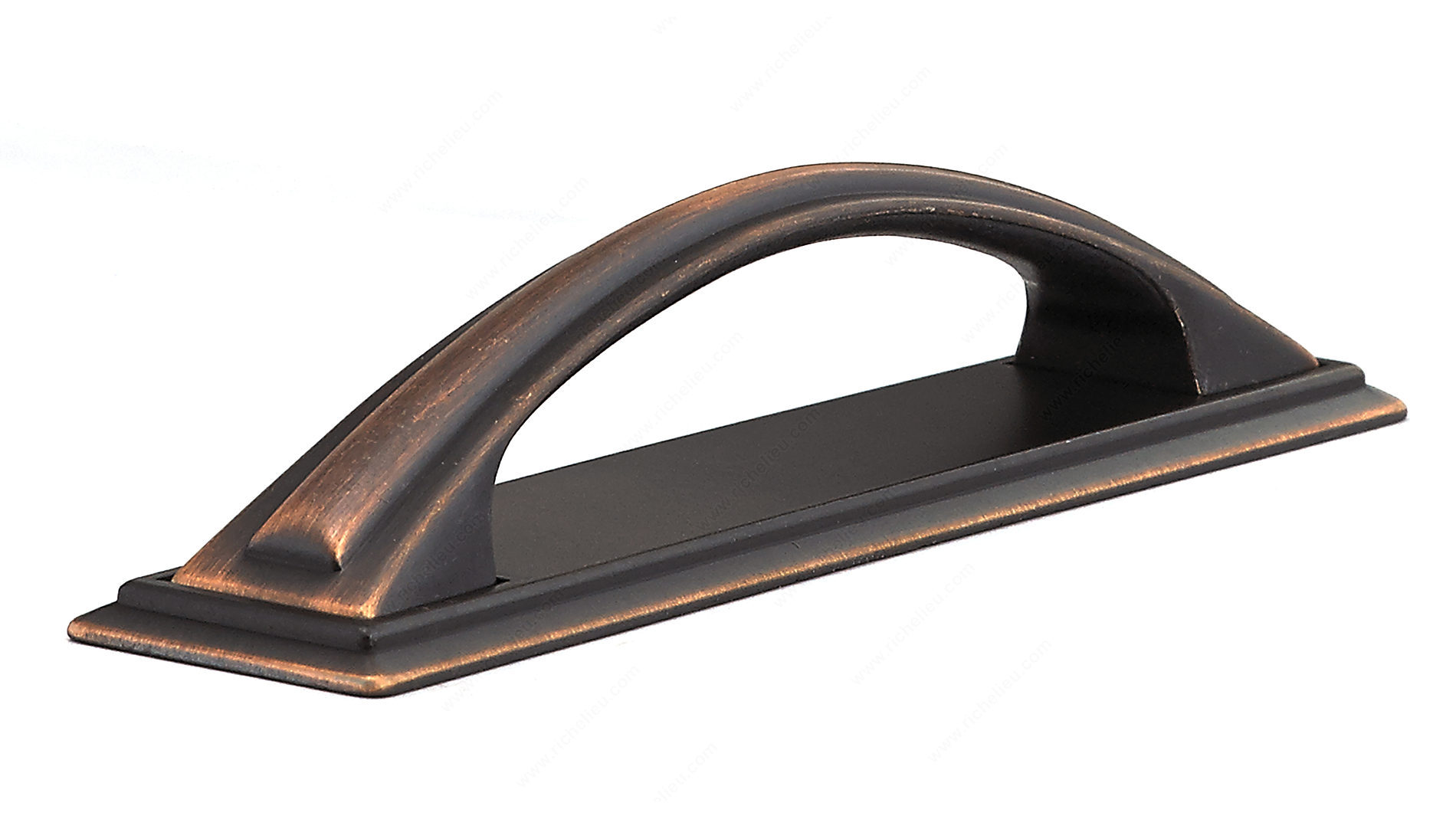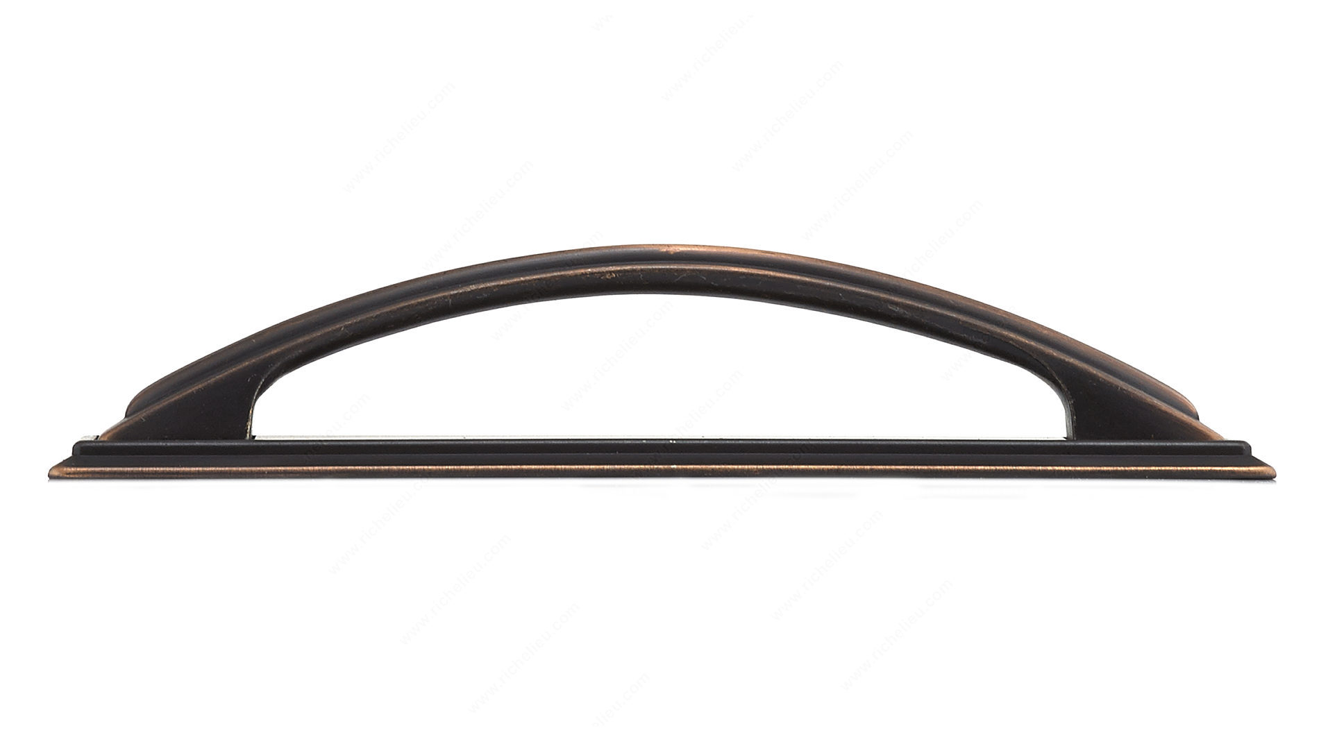 Richelieu BP26987BORB Transitional Metal Pull - 2699 offers a sophisticated blend of style and functionality, perfect for enhancing your kitchen or bathroom furniture. This transitional bow pull features an elegant beveled backplate that adds a touch of refinement to any cabinetry. Crafted from durable zamak material, it ensures longevity while maintaining its aesthetic appeal. With a center-to-center measurement of 5 1/32 inches, this pull is versatile enough to fit various cabinet styles. The brushed oil-rubbed bronze finish provides a warm, inviting look that complements a wide range of decor themes, making it a fantastic choice for both modern and traditional settings. The overall length of 6 5/16 inches and a projection of 1 7/32 inches ensure a comfortable grip, enhancing usability. Included with the pull are 8/32 inch screws for easy installation, allowing you to upgrade your furniture with minimal effort. Its overall dimensions are thoughtfully designed at a width of 13/16 inches, ensuring a sleek appearance without overwhelming your space. Elevate your cabinetry with the Richelieu BP26987BORB, where elegance meets practicality in every detail.