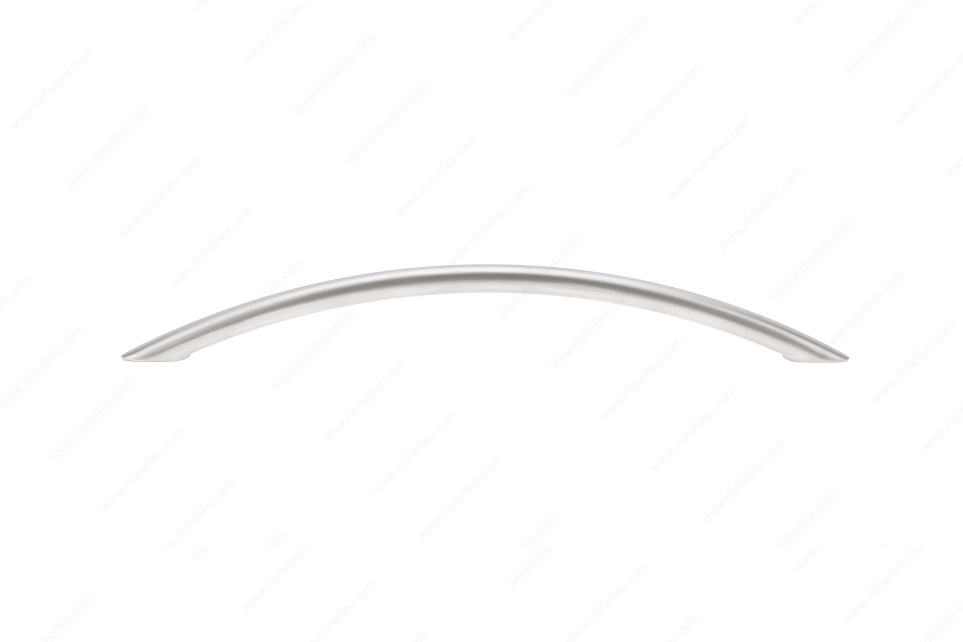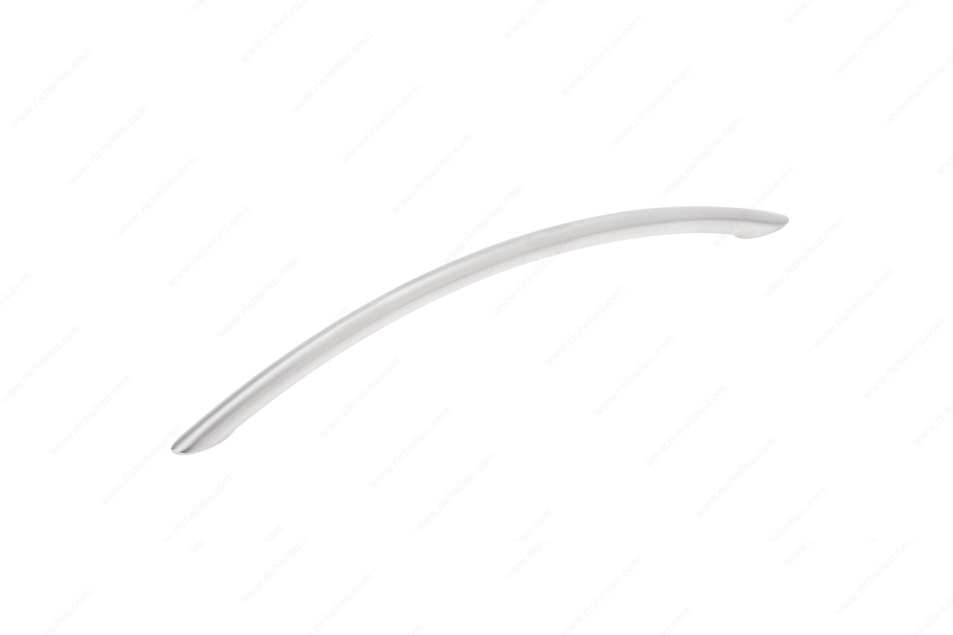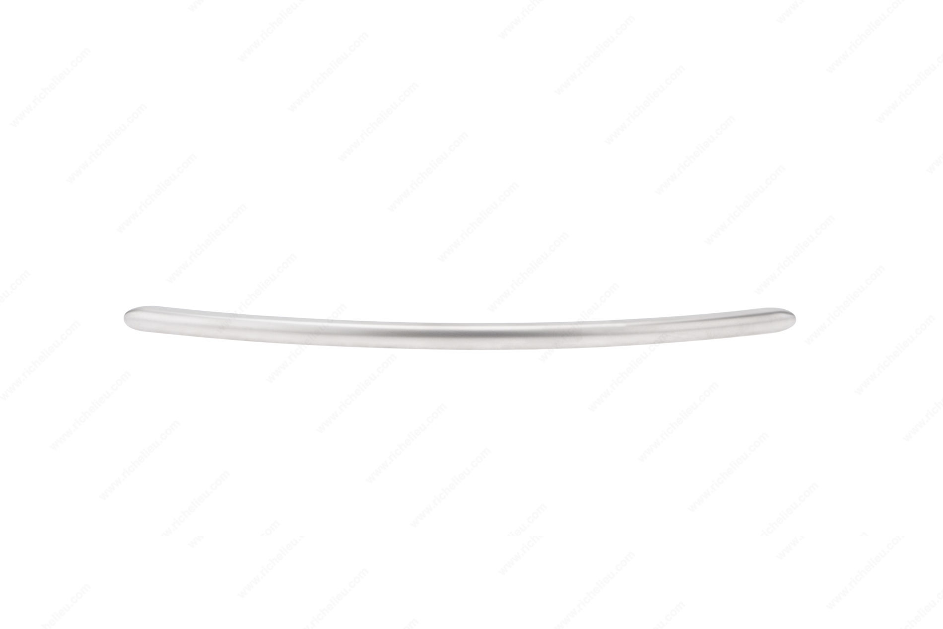 Richelieu BP272160174 Modern Metal Pull - 2721 features a sleek, contemporary design that brings an instant touch of elegance to furniture and cabinetry. This modern bow pull showcases an arc that beautifully terminates in flared bases at each end, enhancing both aesthetics and functionality. Crafted from durable zamak, this pull not only offers a stylish appearance but also guarantees long-lasting performance. With an overall length of 7 15/32 inches and a center-to-center measurement of 6 5/16 inches, it is perfectly sized for a variety of applications. The matte chrome finish in a sophisticated gray and chrome color scheme makes it a versatile choice for any modern interior. Installation is a breeze with the included 8/32 inch screws, allowing for a quick upgrade to your existing fixtures. The projection of 1 5/16 inches ensures comfortable grip and ease of use, while the compact width of 13/32 inches maintains a sleek profile. Packaged conveniently in a bag, the Richelieu BP272160174 pull is ready to ship via UPS, making it an accessible option for both building professionals and discerning homeowners looking to enhance their spaces with quality hardware. Elevate your design with this striking modern pull.