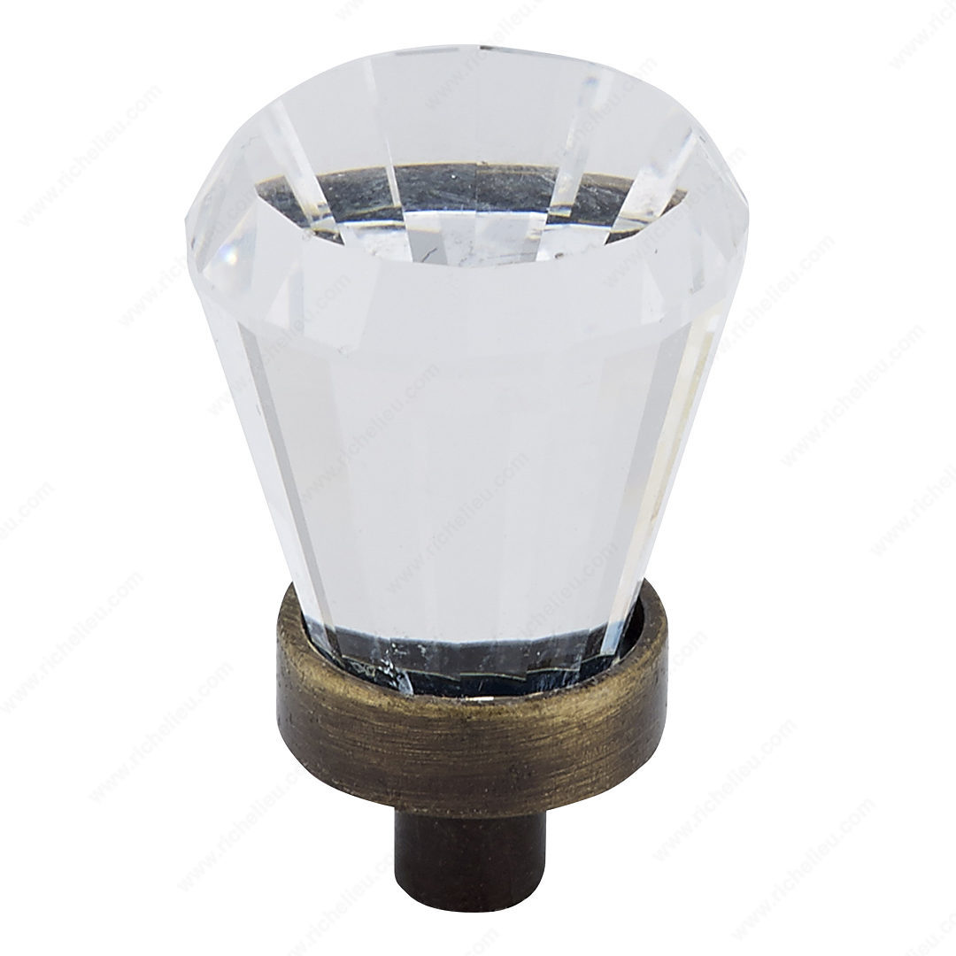 Richelieu BP276AE11 Traditional Swarovski Crystal and Metal Knob - 276B offers a luxurious touch that enhances the aesthetic of any space. This exquisite knob features a stunning combination of clear Swarovski crystal and antique English-finished metal, resulting in a piece that is both elegant and timeless. With an overall diameter of 3/4 inch and a projection of 7/8 inch, it is perfectly sized to provide a comfortable grip while adding a captivating sparkle to your cabinetry or furniture. Designed for traditional styles, this knob is ideal for homeowners and professionals looking to elevate the look of kitchens, bathrooms, or any area that requires a decorative accent. The rich yellow and brass hues complement the clear crystal beautifully, creating a striking contrast that draws the eye. Installation is a breeze, as an M4 screw is included for your convenience. The sturdy construction, combining metal and crystal, ensures durability while maintaining a refined appearance. Whether you're renovating or simply updating your space, the Richelieu BP276AE11 knob is a standout choice that harmonizes function with artistic flair. Transform your interiors with this exquisite hardware piece and enjoy the warmth and elegance it brings to your home.