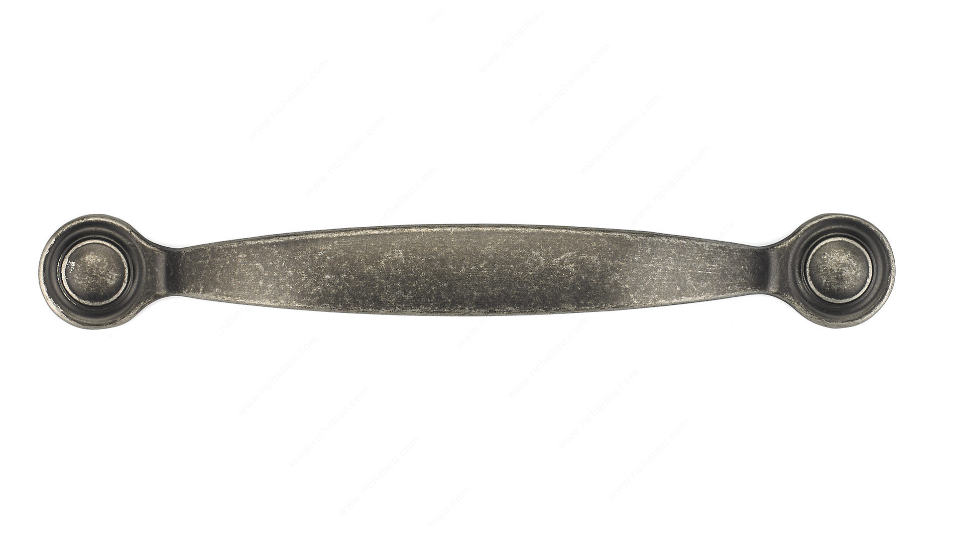 Richelieu BP288996142 Traditional Metal Pull - 2889 adds a refined touch to your kitchen and bathroom cabinetry. This elegant handle pull features rounded ends and a classic design that enhances any décor. Crafted from durable zamak, it ensures longevity while maintaining its attractive appearance. With an overall length of 6 1/2 inches and a projection of 15/16 inches, this pull is not only stylish but also practical for everyday use. The center-to-center measurement of 3 25/32 inches makes it a versatile choice for various cabinet sizes. Finished in a sophisticated pewter with gray and chrome accents, it complements a wide range of color schemes and styles. The pull’s traditional style is perfect for those looking to add a timeless appeal to their spaces. Each package includes the necessary 8/32 inch screws for easy installation, making updates to your cabinets hassle-free. Whether you're renovating or simply refreshing your space, the Richelieu BP288996142 Traditional Metal Pull is an excellent choice for builders and discerning homeowners alike. Its blend of function and design promises to enhance the aesthetic of any room while offering reliable performance for years to come.