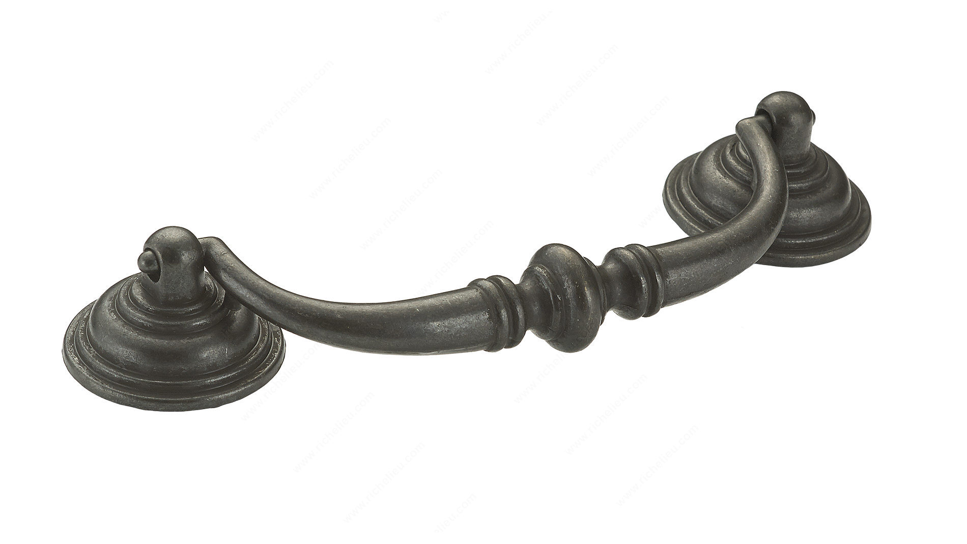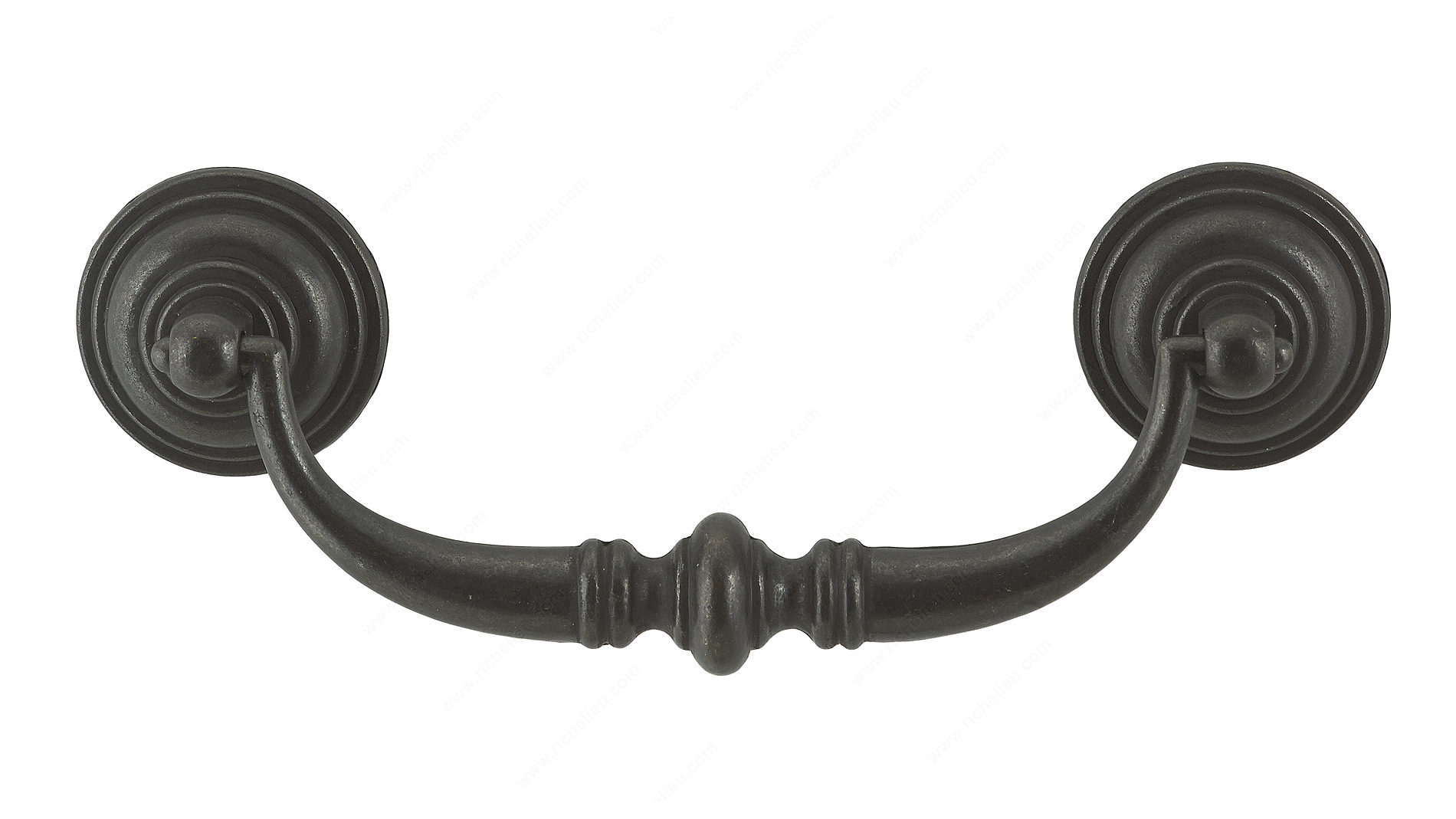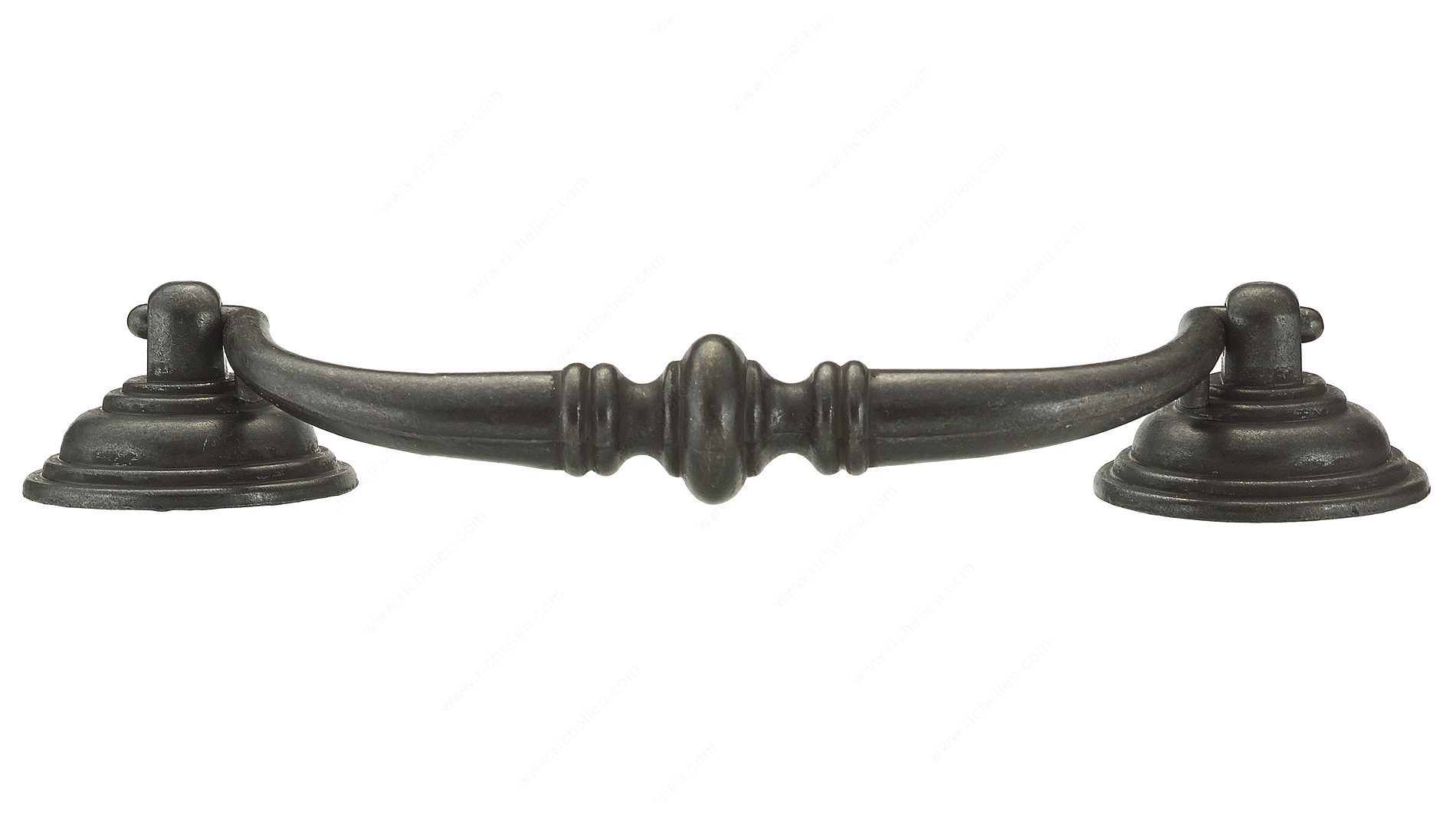 Richelieu BP30214909 Traditional Metal Pull - 3021 showcases a classic design that enhances the aesthetic of any space. Crafted from durable metal, this drop pull features an elegant central bead detail, adding a touch of sophistication to your cabinetry or furniture. The pull is securely connected to round posts at each end, ensuring both style and stability. With a center-to-center measurement of 4 1/4 inches, this pull is versatile enough to fit various applications. The matte black iron finish (Finish Number: 909) exudes a timeless charm, making it an ideal choice for country-style interiors or modern spaces seeking a rustic touch. Measuring 5 19/32 inches in overall length, 2 3/32 inches in width, and projecting 25/32 inches, it offers a comfortable grip while maintaining a sleek profile. This traditional pull is not only functional but also comes with included 8/32 inch screws for easy installation. Whether you are upgrading your kitchen cabinets or adding a finishing touch to a custom piece, Richelieu’s BP30214909 is designed to elevate your project with quality and style. Ship via UPS for convenient delivery to your location, making it easier to enhance your living spaces.