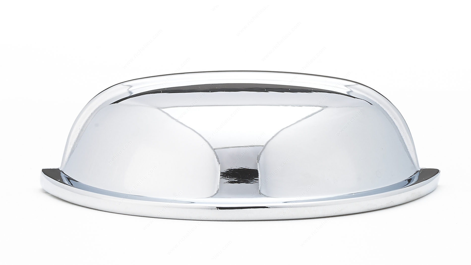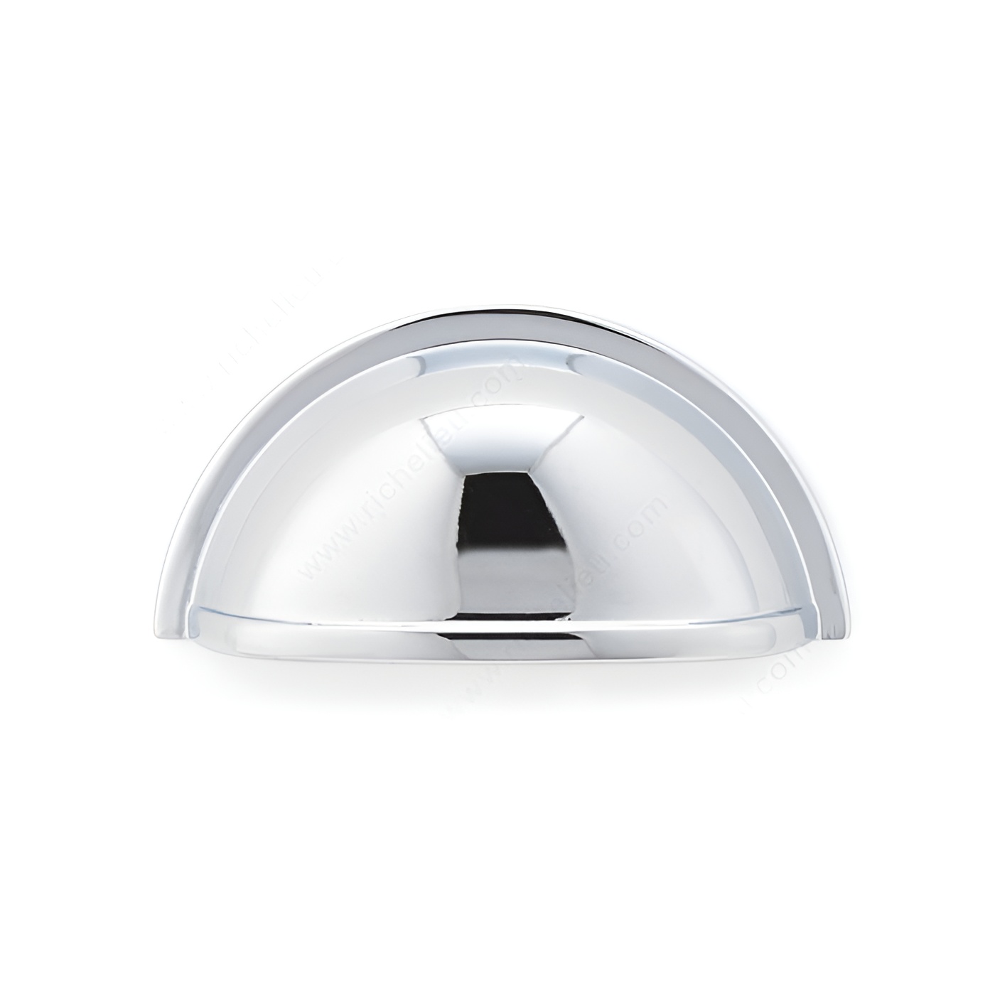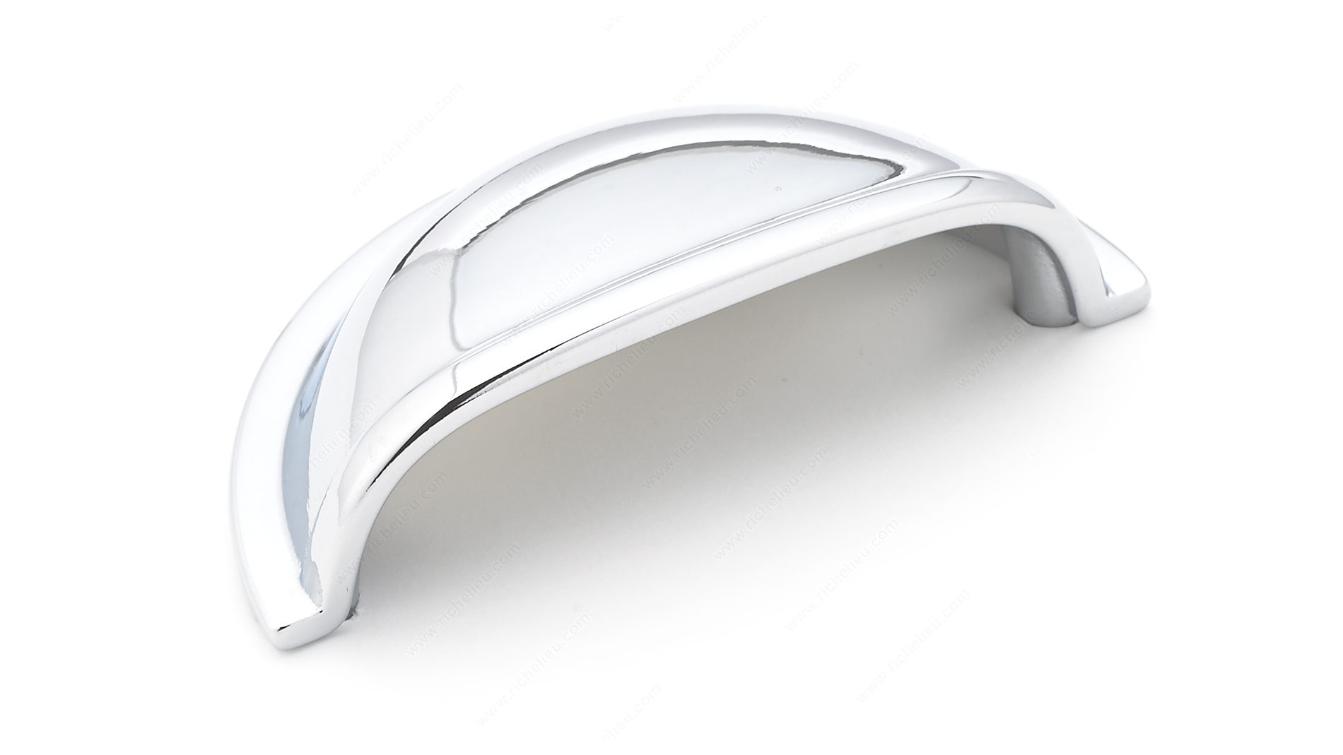 Richelieu BP30388140 Traditional Brass Cup Pull - 3038 embodies timeless elegance, making it an ideal choice for enhancing your home décor. Crafted from durable brass, this cup pull features a classic design that seamlessly integrates with a variety of styles, from traditional to contemporary. The chrome finish, with a sleek gray accent, adds a sophisticated touch while ensuring longevity and resistance to wear. Measuring 3 15/32 inches in length and 1 11/16 inches in width, this pull is designed for easy handling and a comfortable grip. It boasts a center-to-center measurement of 3 inches, making it compatible with most cabinet applications. With a projection of 1 1/32 inches and a milling depth of 9/32 inches, it provides just the right depth for effortless operation. Installation is straightforward, thanks to the included 8/32 inch screws. The discreet detailing on the pull complements any cabinetry or furniture, enhancing the overall aesthetic of your space. Whether you're updating your kitchen, bathroom, or furniture, the Richelieu Traditional Brass Cup Pull is a stylish and functional hardware solution that brings a classic feel to your interiors.